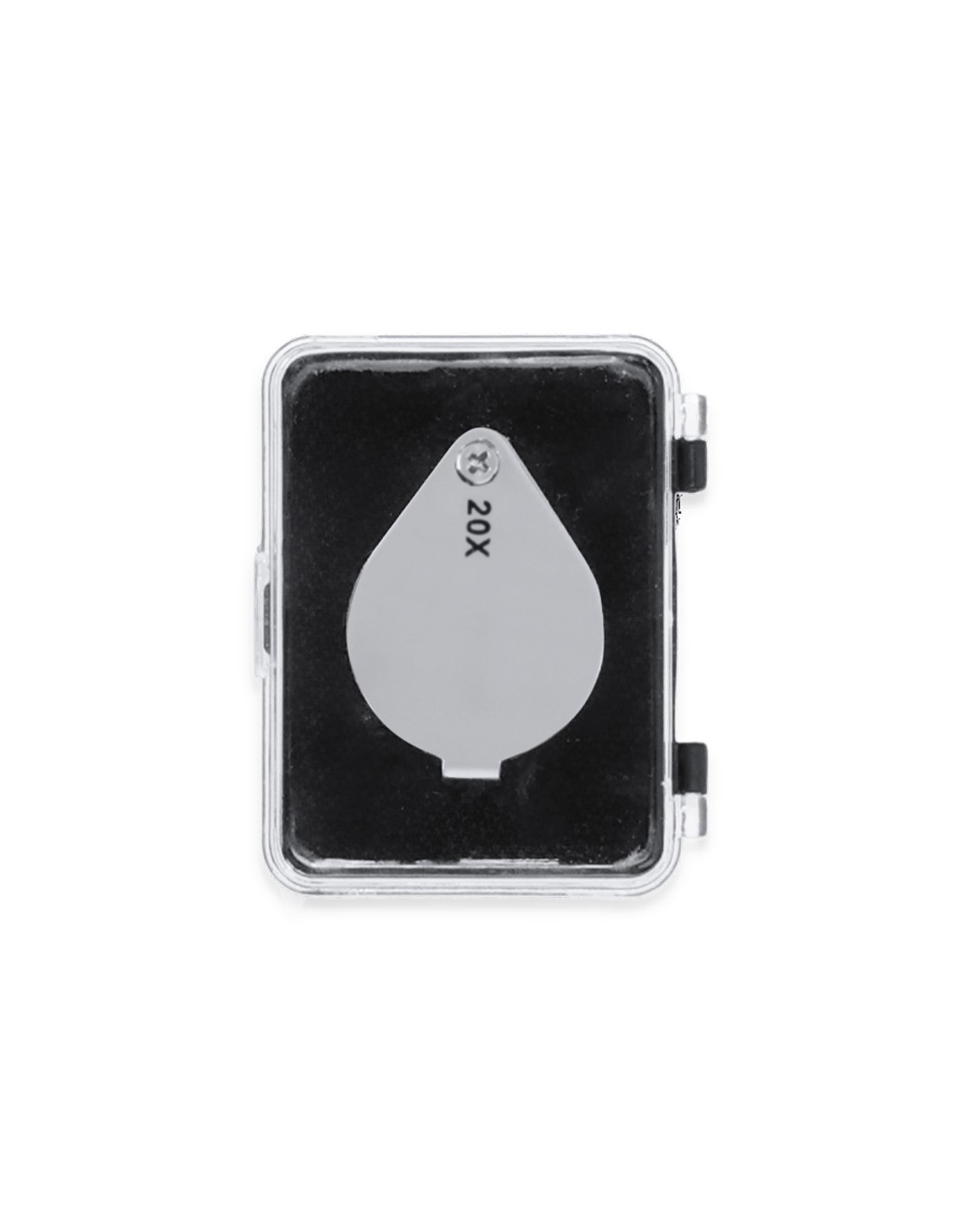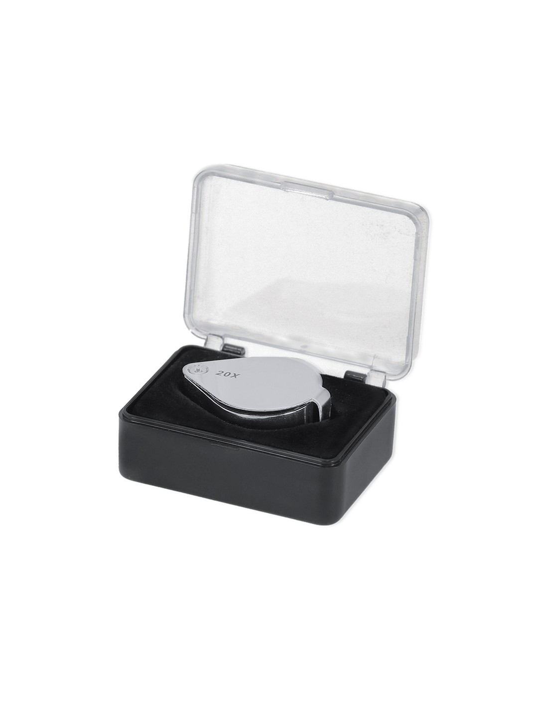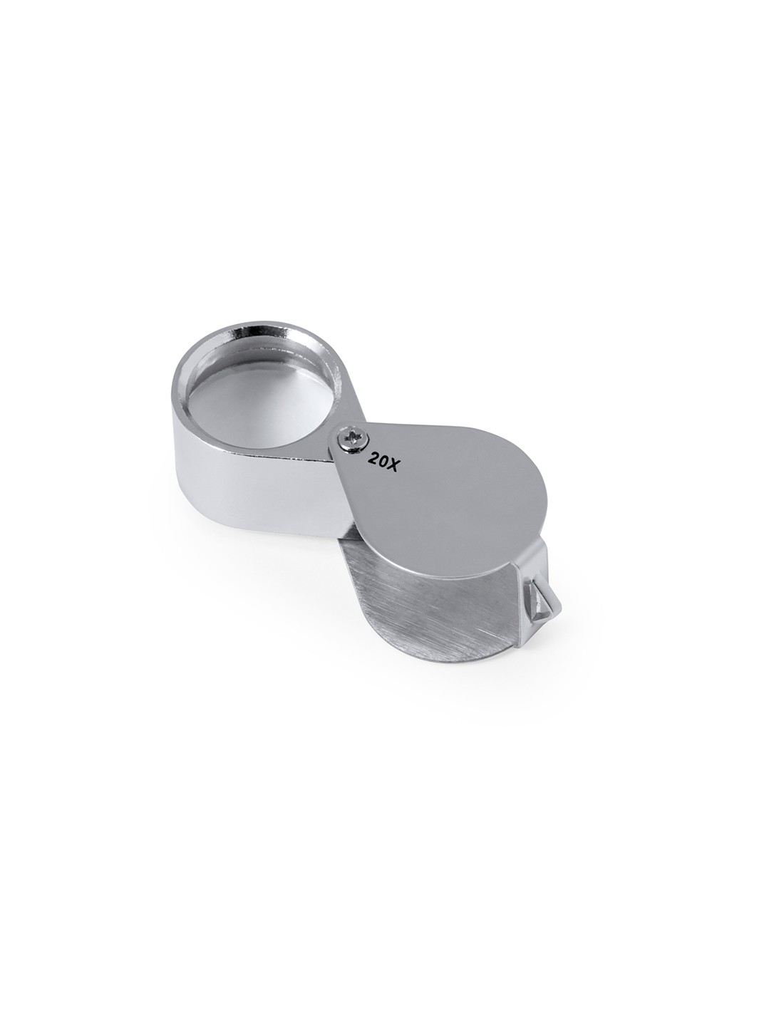 Lupa plegable con aumento 20x fabricada en resistente metal. Gran potencia de aumento para obtener una visión muy cercana de los detalles más pequeños, con ampliación sin distorsión. Ideal para inspeccionar objetos de tamaño reducido, textos, etc. Además, tiene un accesorio para colgar y viene dentro de un estuche con interior acolchado para una mayor protección. Presentada en caja de cartón negra.