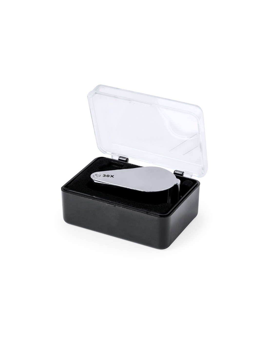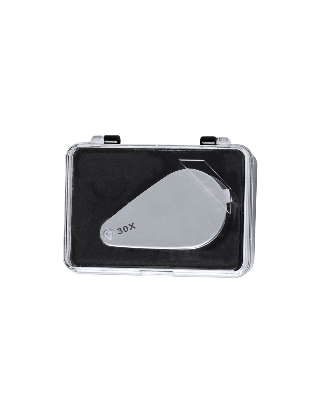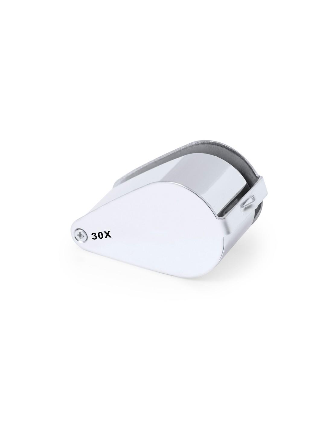 Lupa plegable con aumento 30x fabricada en resistente metal. Con luces LED integradas y gran potencia de aumento para obtener una visión muy cercana de los detalles más pequeños, con ampliación sin distorsión. Ideal para inspeccionar objetos de tamaño reducido, textos, etc. Además, tiene un accesorio para colgar, y viene dentro de un estuche con interior acolchado para una mayor protección. Alimentación a pilas (de botón incluidas), con llave especial para reemplazarlas cuando se agoten. Presentada en caja de cartón negra.