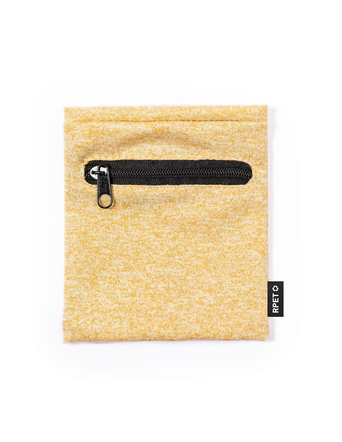 Práctica muñequera en suave poliéster RPET. Complemento perfecto para guardar pequeños objetos gracias a su bolsillo con cierre de cremallera negra. Disponible en variada gama de colores, con etiqueta distintiva RPET.El material RPET se elabora a partir de plástico reciclado, para así fomentar la reutilización de residuos plásticos y ayudar a la sostenibilidad del planeta.