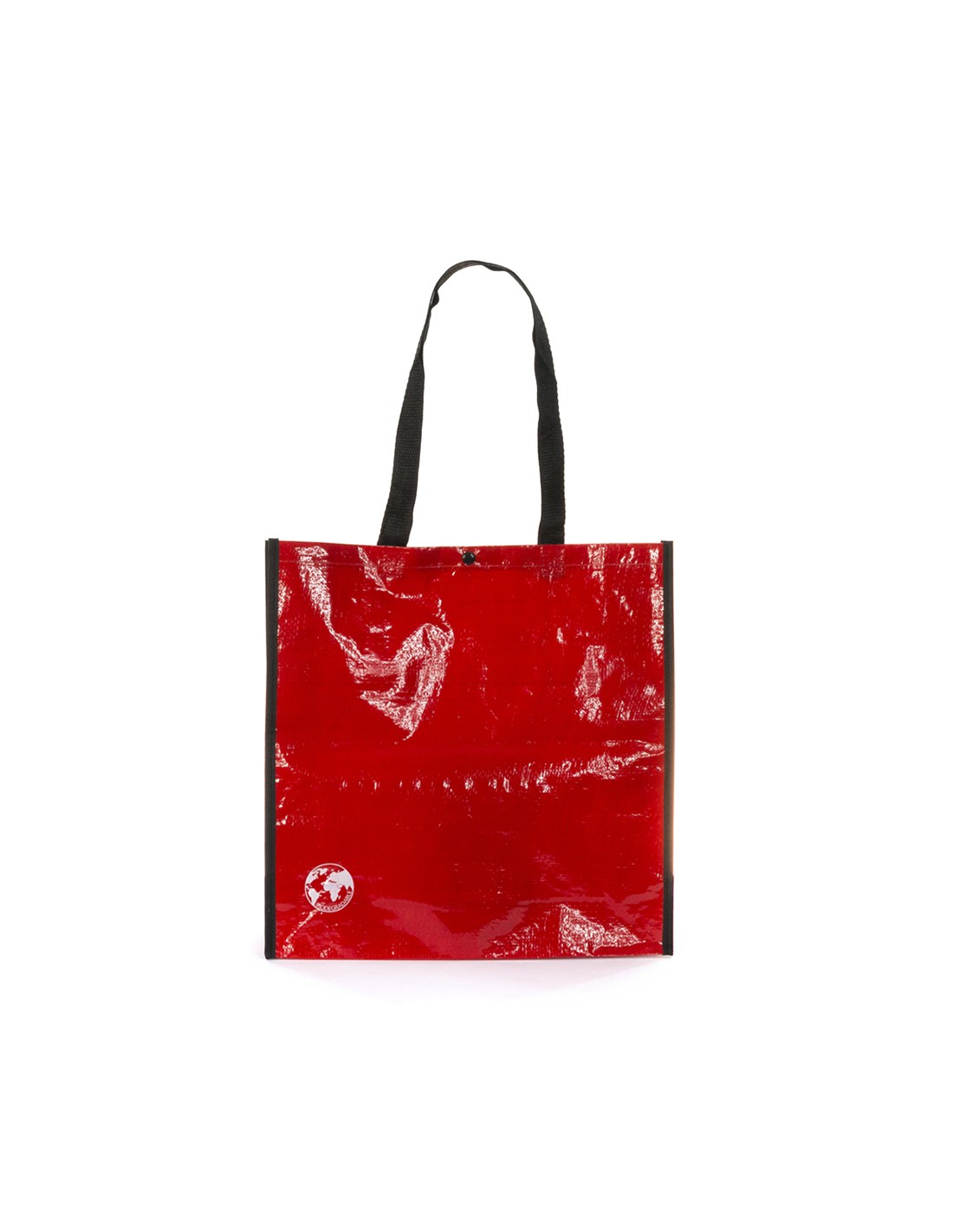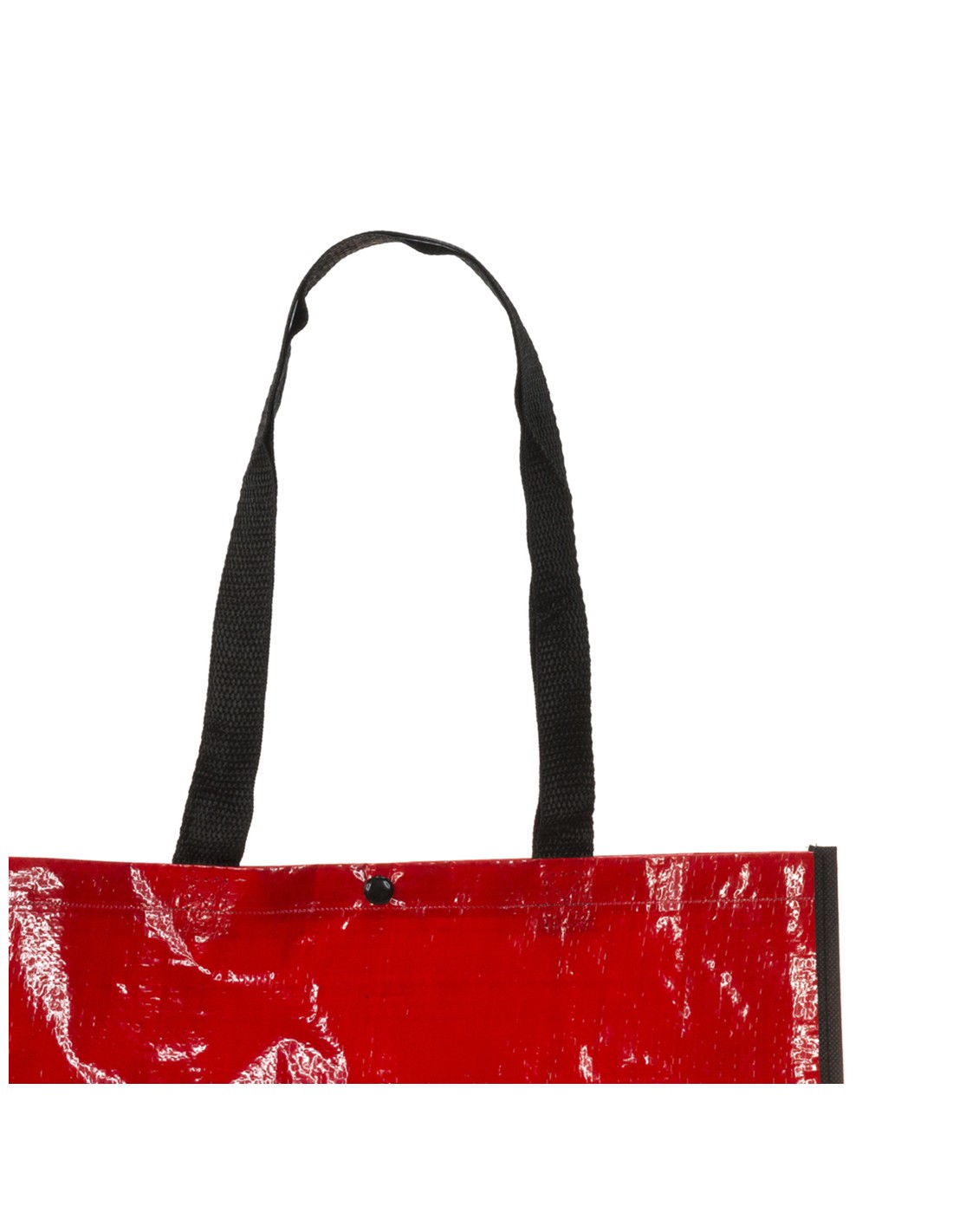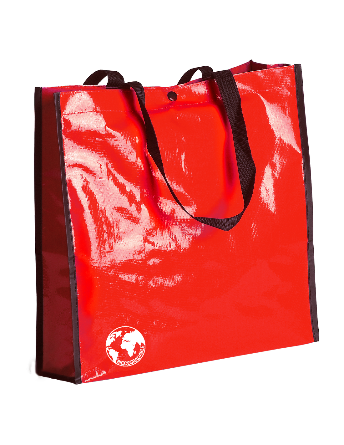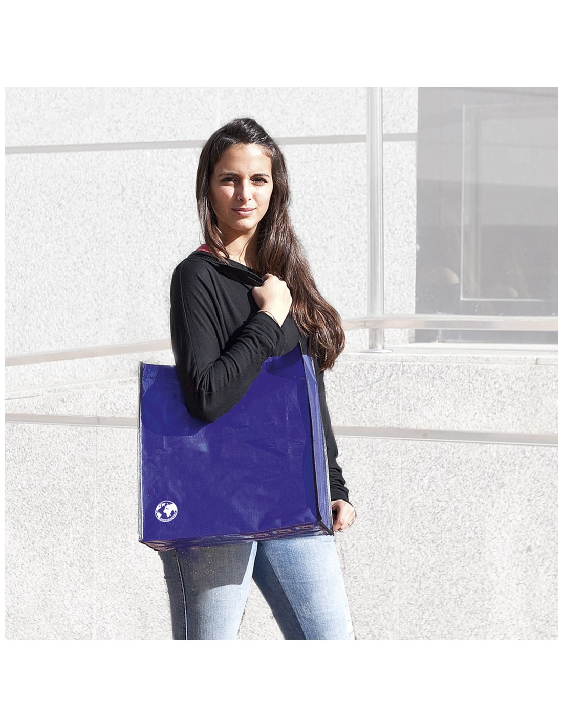Bolsa reutilizable en resistente material laminado. Con asas largas reforzadas en nylon de 70cm, fuelle reforzado con ribetes y cierre de corchete. De acabado cosido y resistencia hasta 12kg de peso. Disponible en gama de colores brillantes.