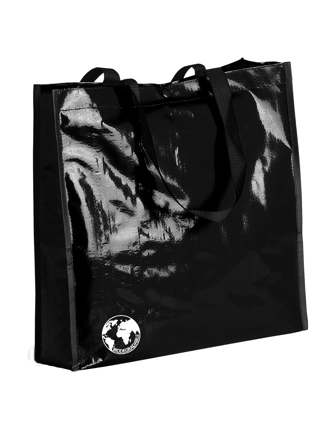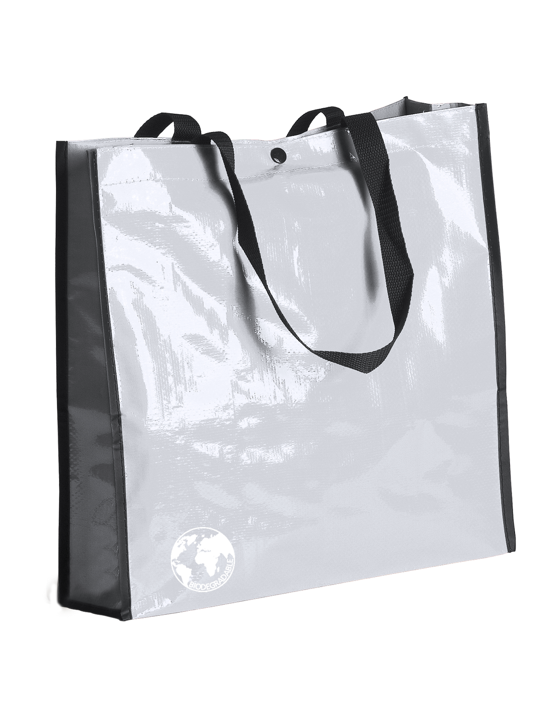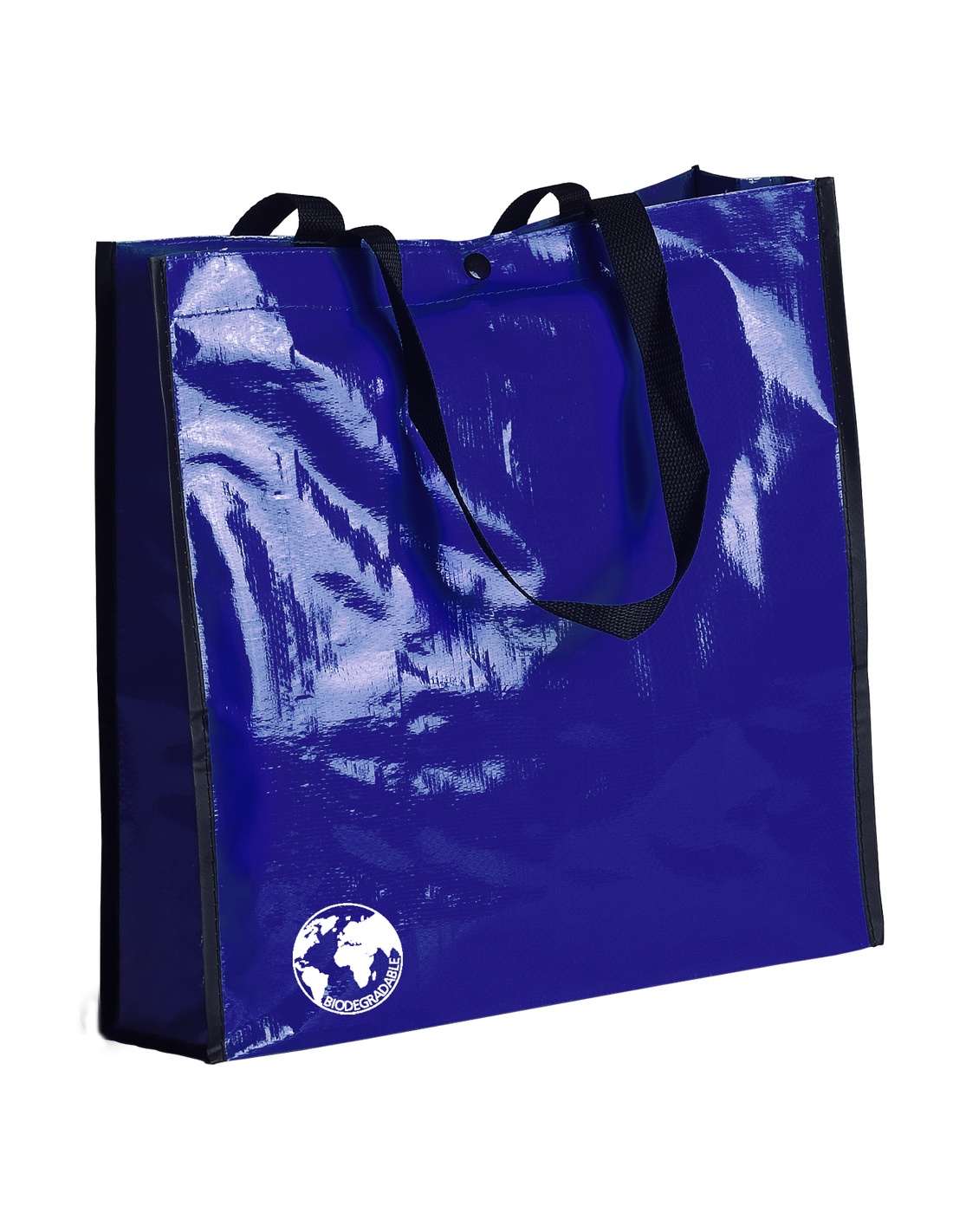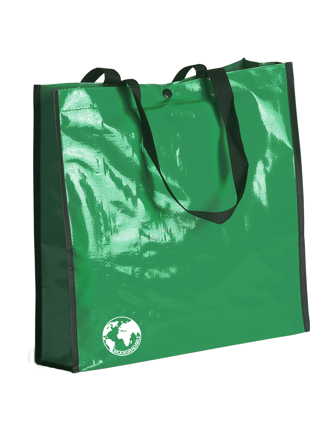 Bolsa reutilizable en resistente material laminado. Con asas largas reforzadas en nylon de 70cm, fuelle reforzado con ribetes y cierre de corchete. De acabado cosido y resistencia hasta 12kg de peso. Disponible en gama de colores brillantes.
