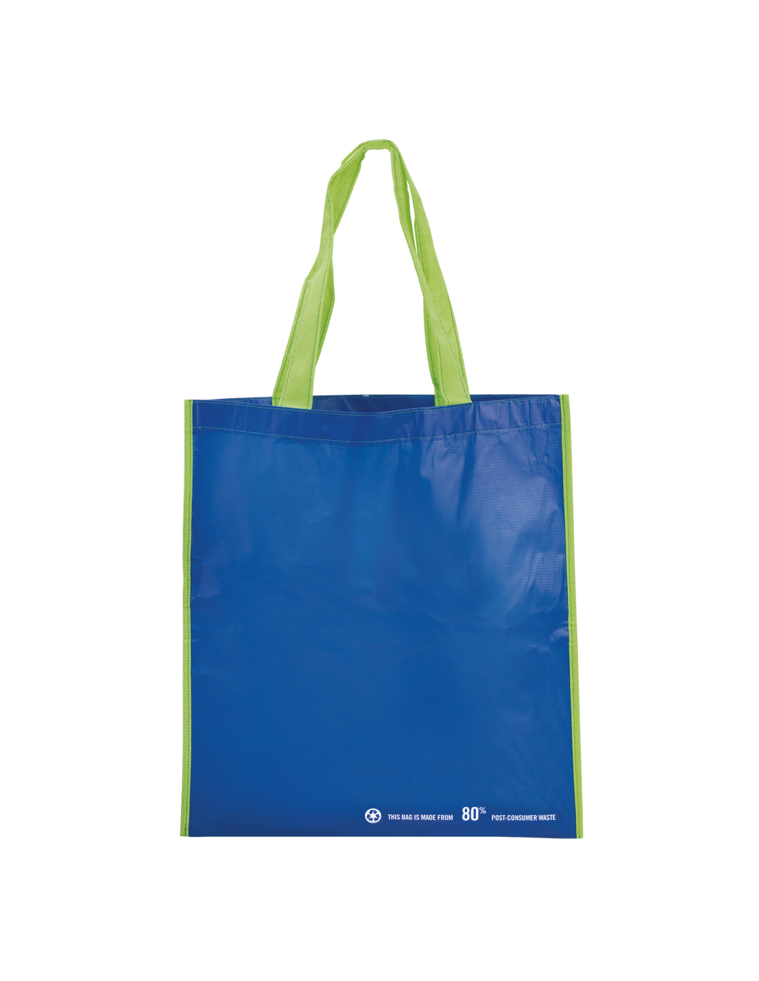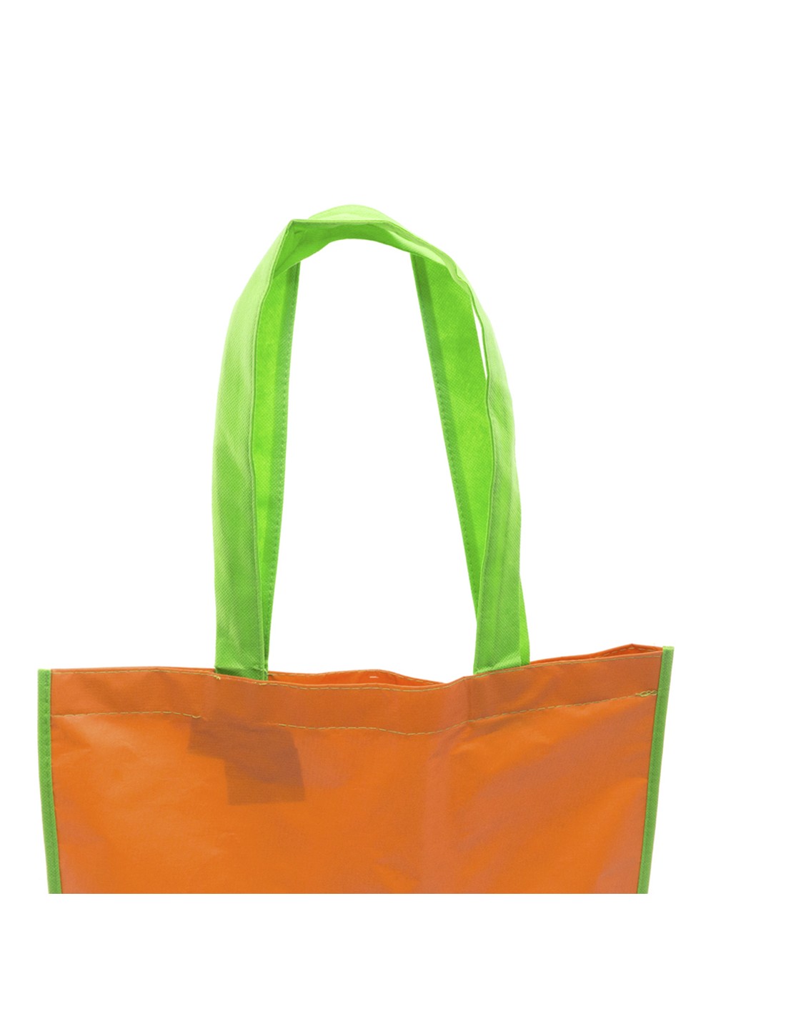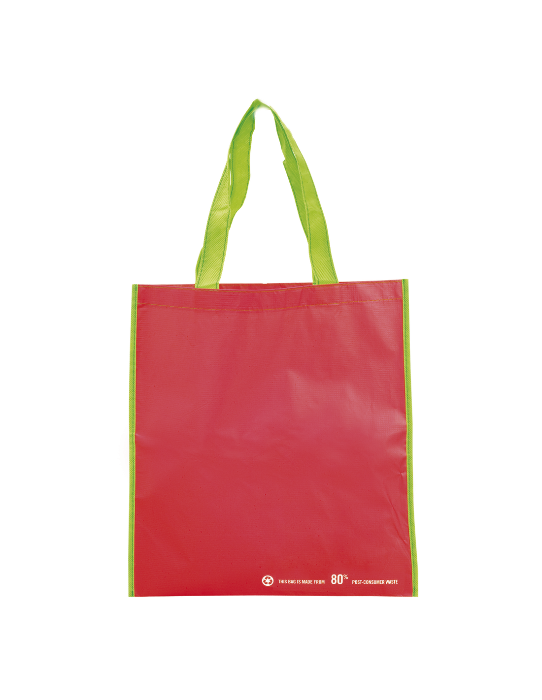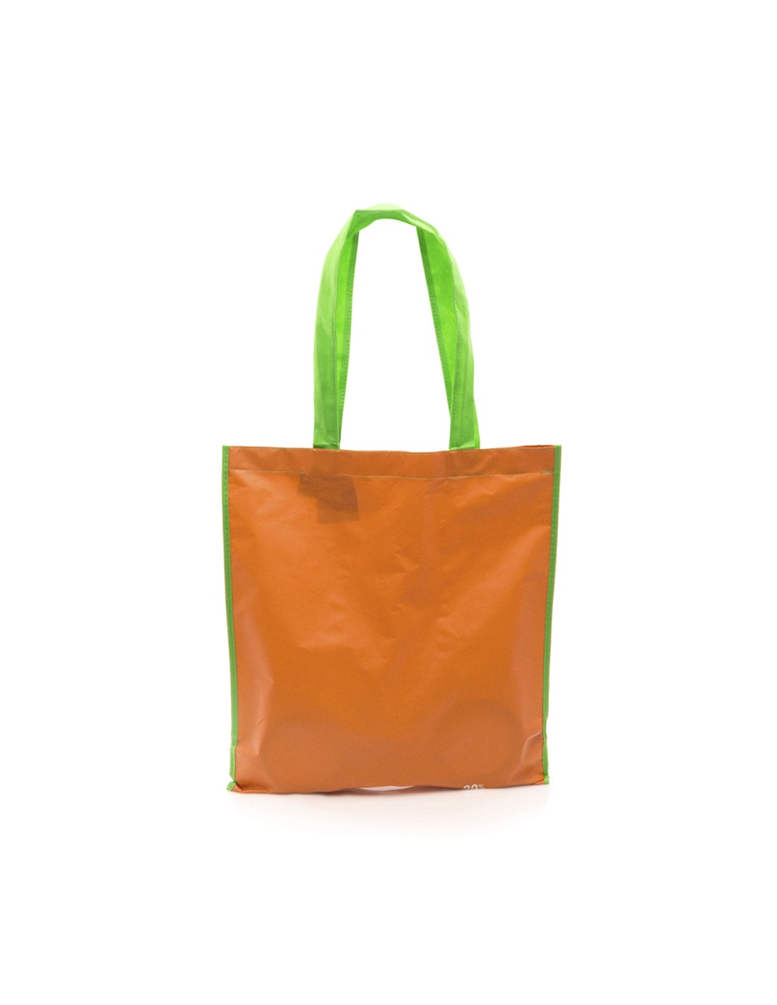 Bolsa en resistente material PET reciclado en variada gama de vivos colores brillantes. Con asas largas de 60cm en verde y reforzadas en nylon. De acabado cosido y resistencia hasta 12kg de peso.