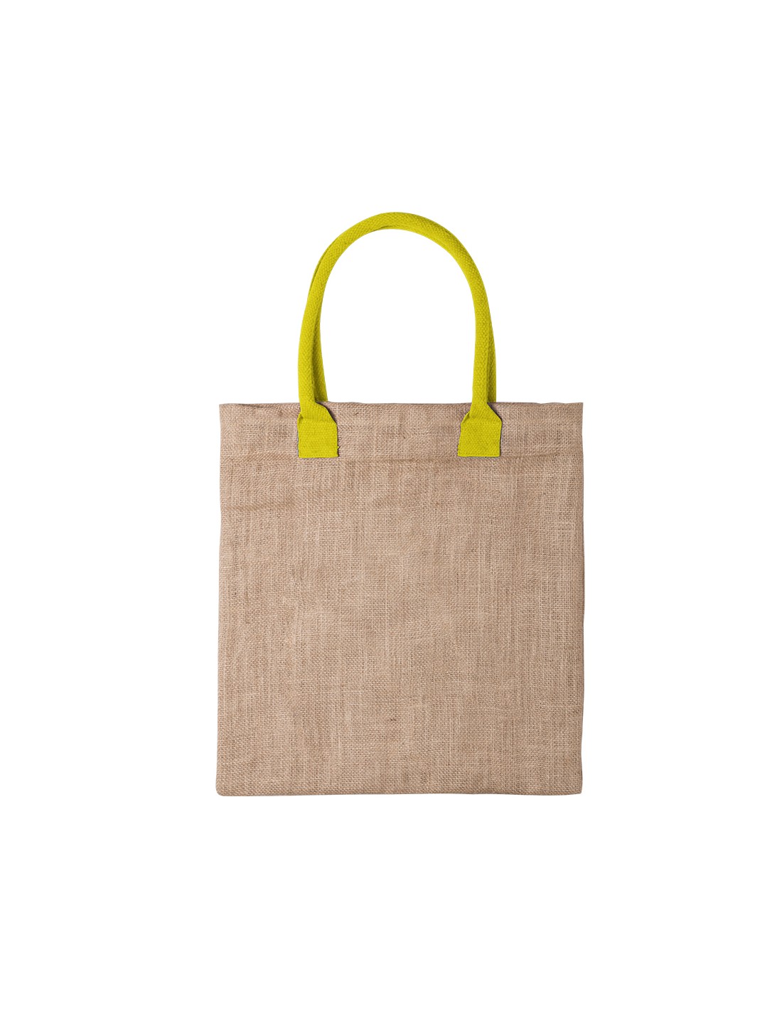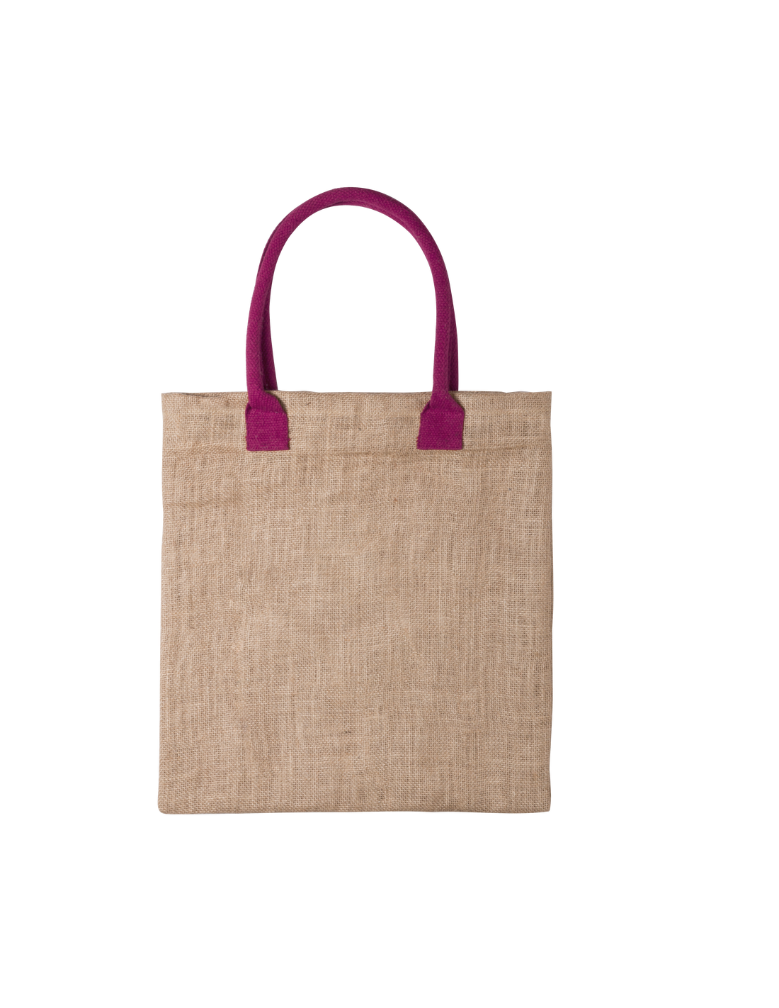 Bolsa de yute con asas de algodón medianas y reforzadas en variada gama de vivos colores. Resistencia hasta 9kg de peso.