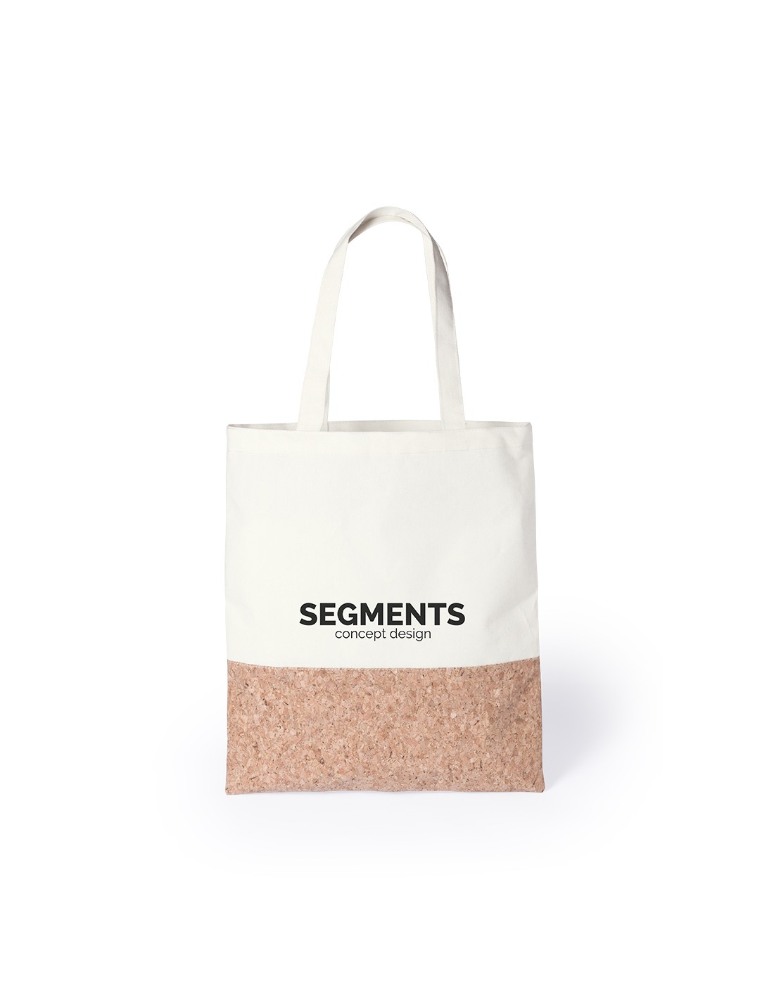 Bolsa de materiales naturales en combinación de algodón y corcho. Con asas largas, acabado cosido y resistencia hasta 8kg de peso.