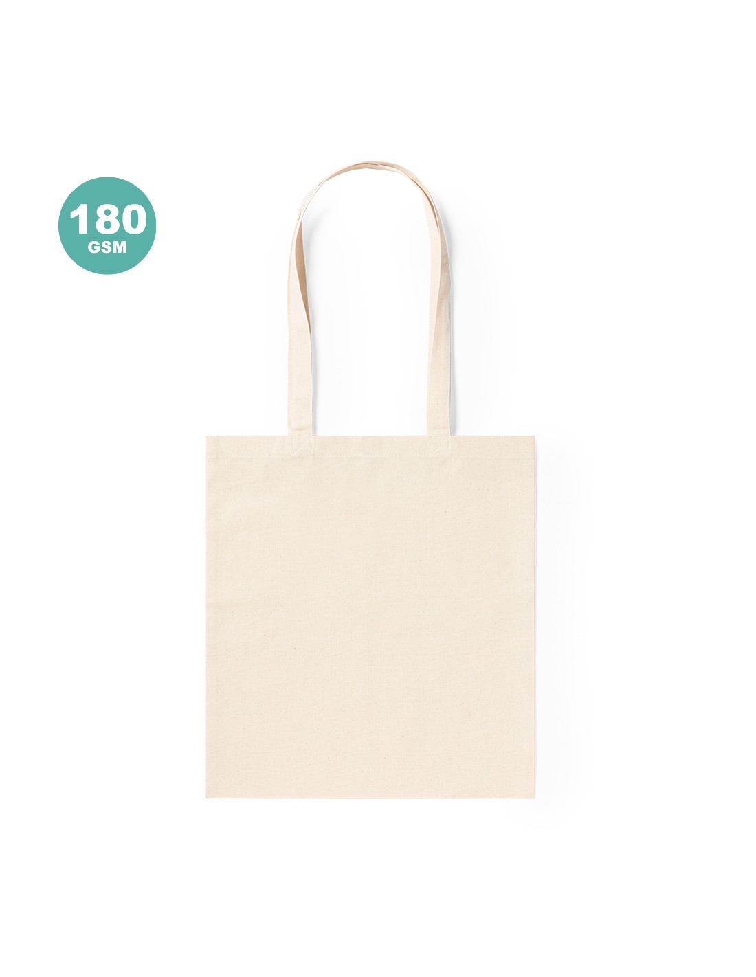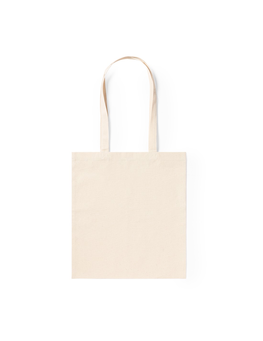 Bolsa en resistente material 100% algodón de 180g/m2 con acabado en color natural. Con asas largas de 70cm y acabado cosido. Resistencia hasta 8kg de peso.