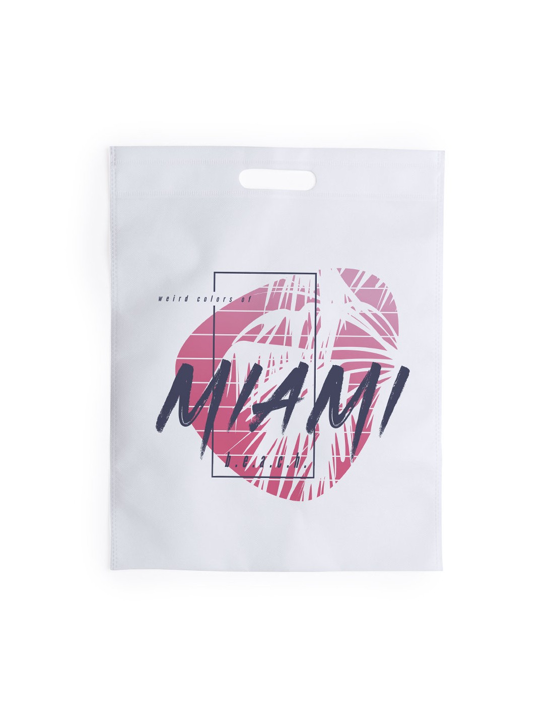 Bolsa en non-woven de 80g/m2. Especialmente diseñada para sublimación, con asas troqueladas y acabado termosellado. Resistencia hasta 6kg de peso.