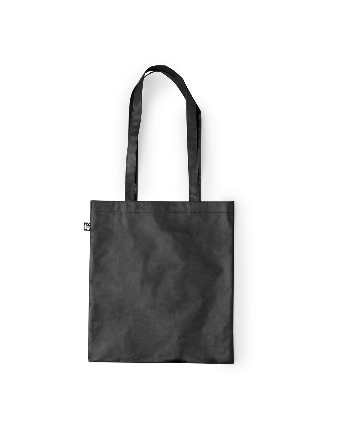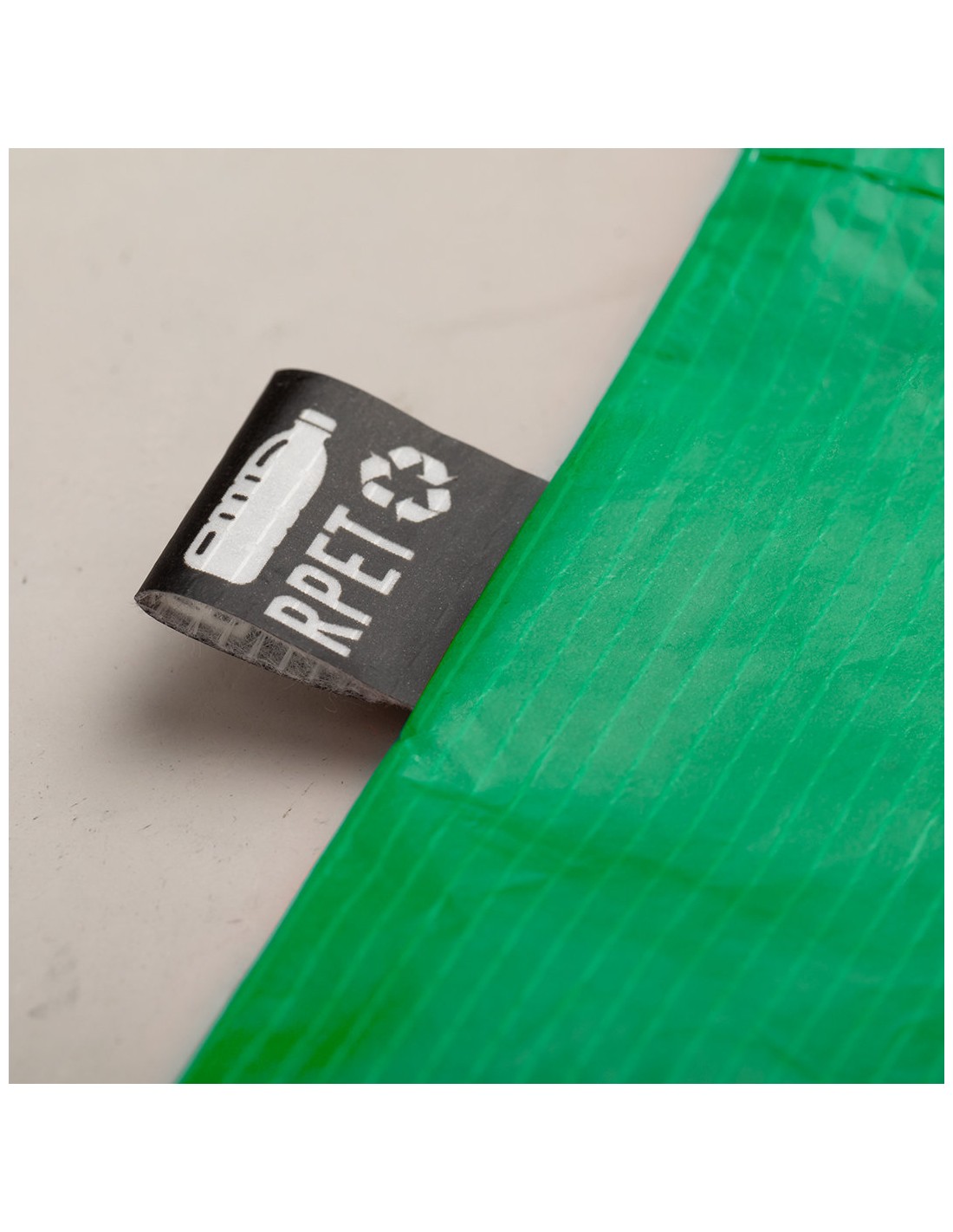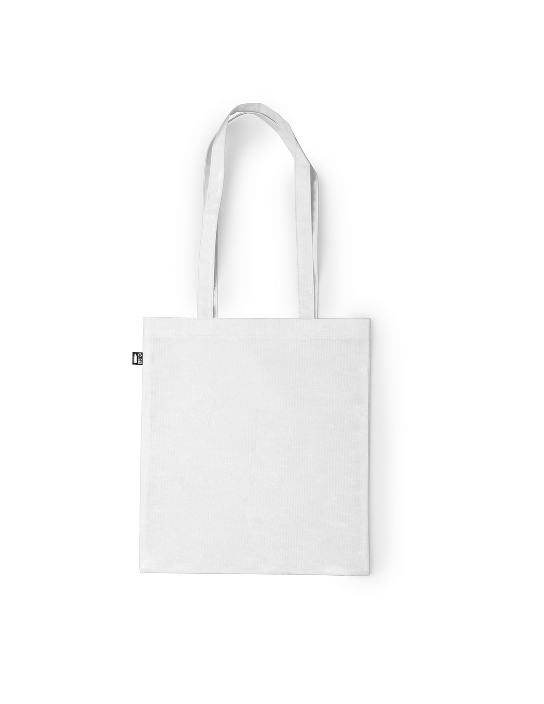 Bolsa de línea nature en material RPET, elaborado a partir de plástico reciclado, para así fomentar la reutilización de residuos plásticos y ayudar a la sostenibilidad del planeta. En material laminado de 100 g/m2 de acabado mate, con asas largas y costuras reforzadas. Resistencia de hasta 5 kg de peso. Disponible en extensa gama de colores con etiqueta distintivo RPET.