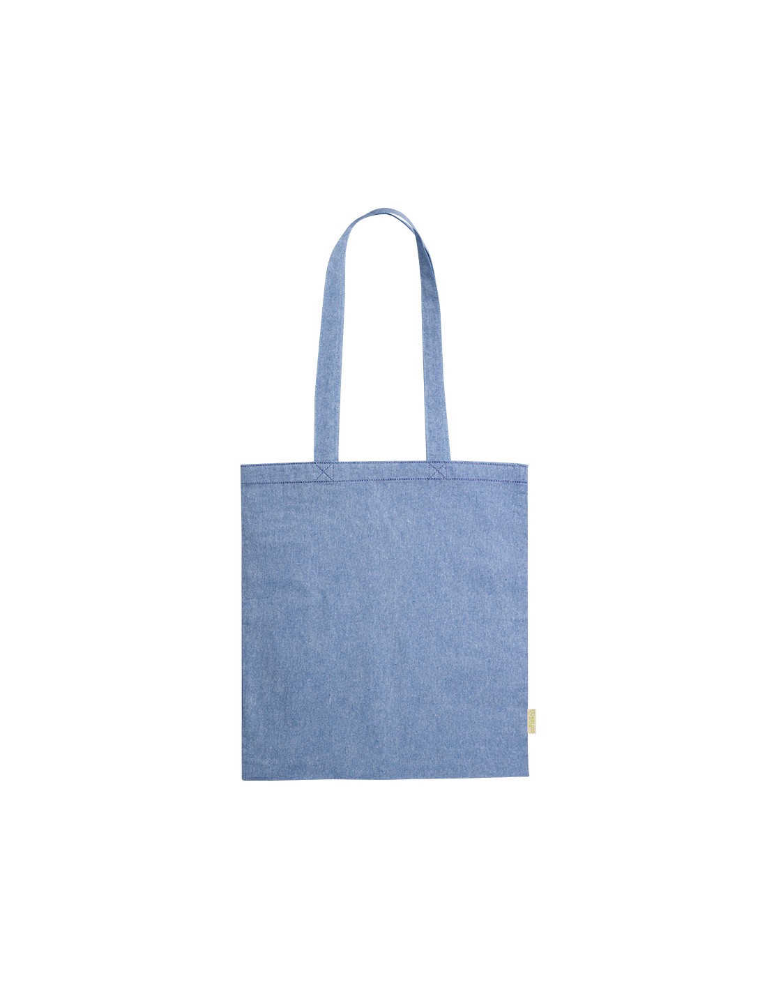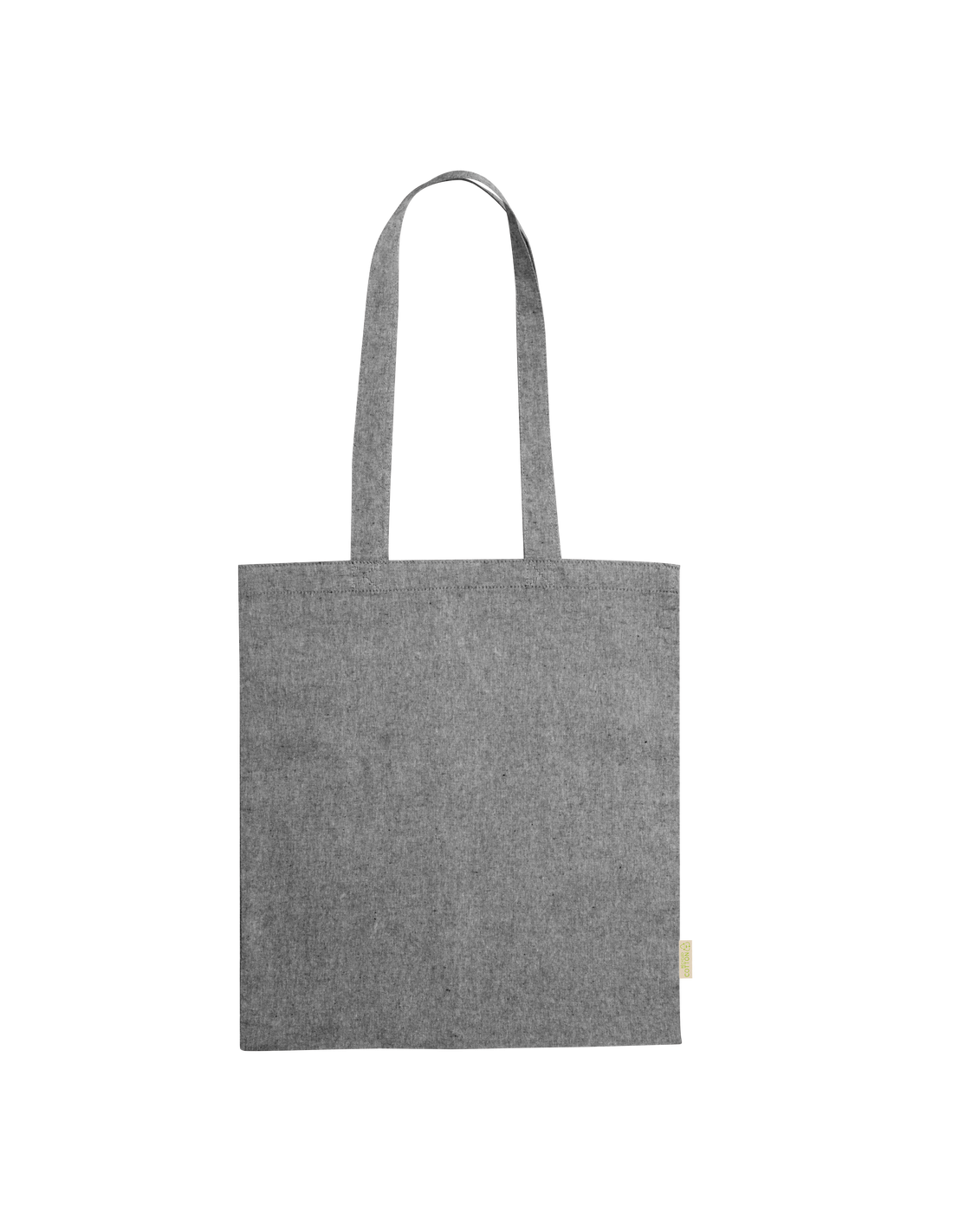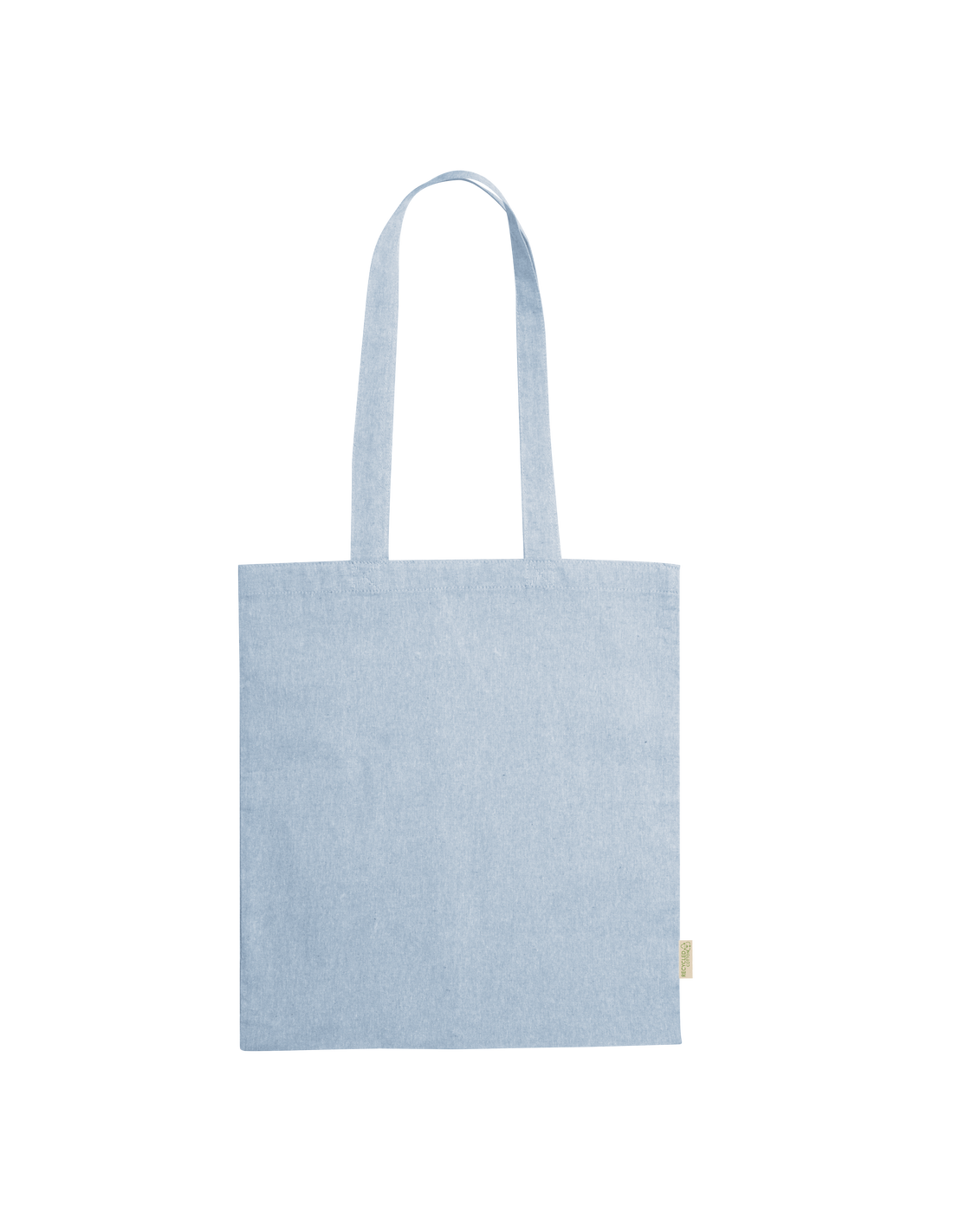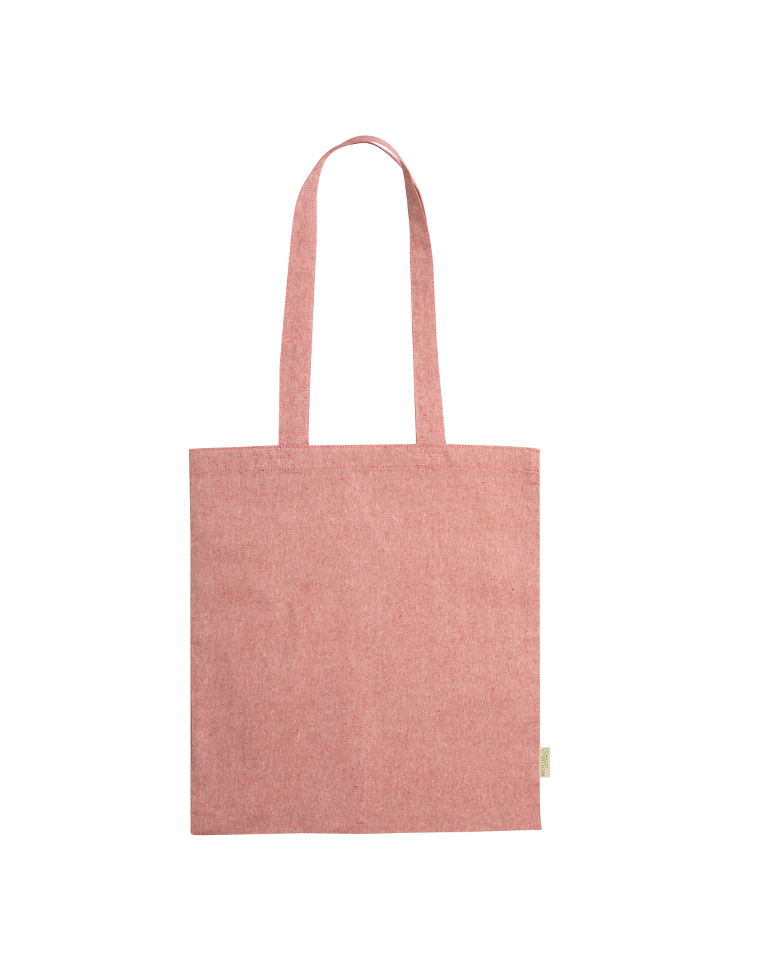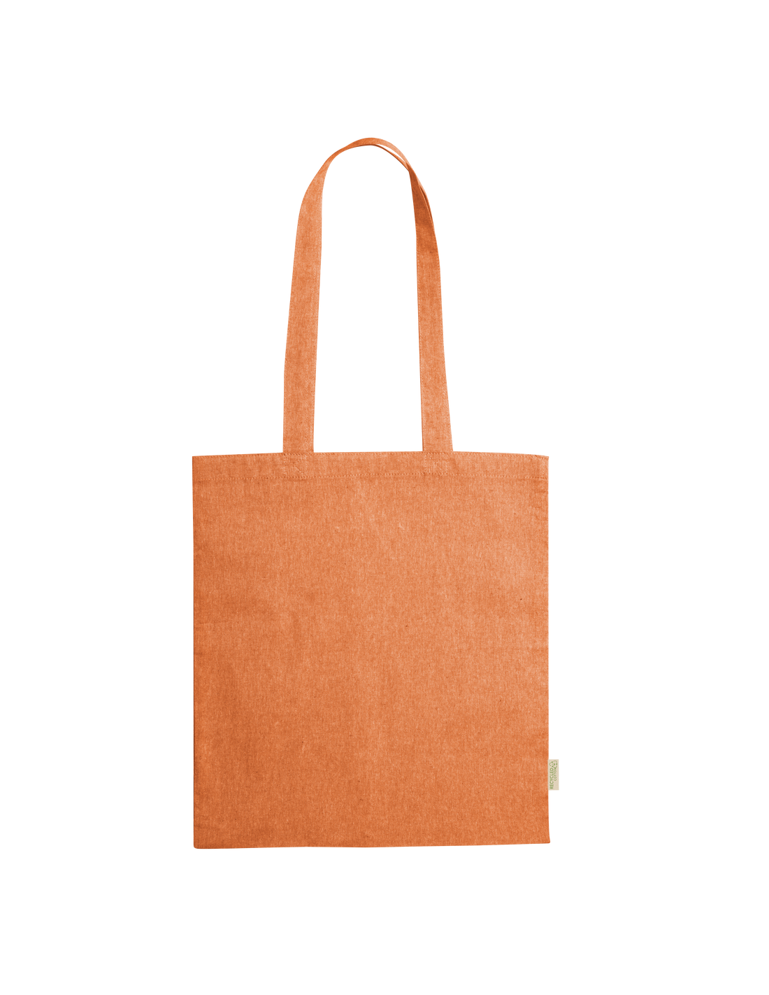 Bolsa de línea nature en material 100% algodón reciclado de 120 g/m2. Asas largas de 70cm con refuerzo y de acabado cosido. Distintivo en etiqueta lateral y resistencia hasta 8 kg de peso. Disponible en variada gama de colores nature.