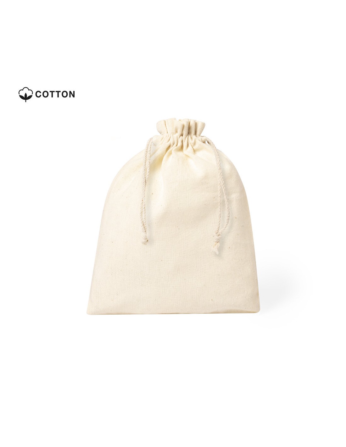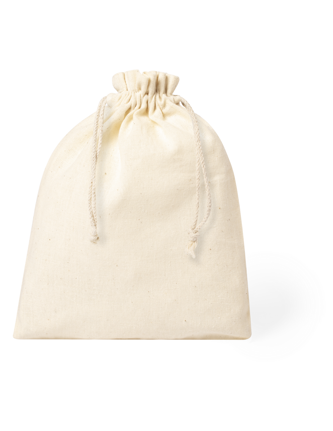 Bolsita de línea nature en material 100% algodón de 105g/m2. Tamaño 15x21 cm, de acabado cosido y con cordones autocierre de algodón.