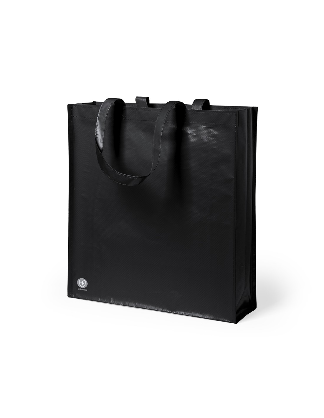 Bolsa antibacteriana en PP-woven de alta resistencia y acabado mate. Disponible en variada gama de colores, con asas medianas reforzadas de 50 cm de largo. Acabado cosido, con fuelles y ribetes reforzados. Los productos con tratamientos antibacterianos son capaces de reducir drásticamente las cargas bacterianas presentes en las superficies de los materiales, gracias a la incorporación de agentes microbianos permanentes estáticos, con alta efectividad para inhibir y prevenir la contaminación bacteriana. Artículo de acuerdo al estándar ISO 22196, que determina la actividad antibacteriana en materiales plásticos y superficies no porosas, lo que permite conocer la efectividad de inhibición microbiana que tienen los aditivos sobre los objetos tratados mediante una evaluación cuantitativa.