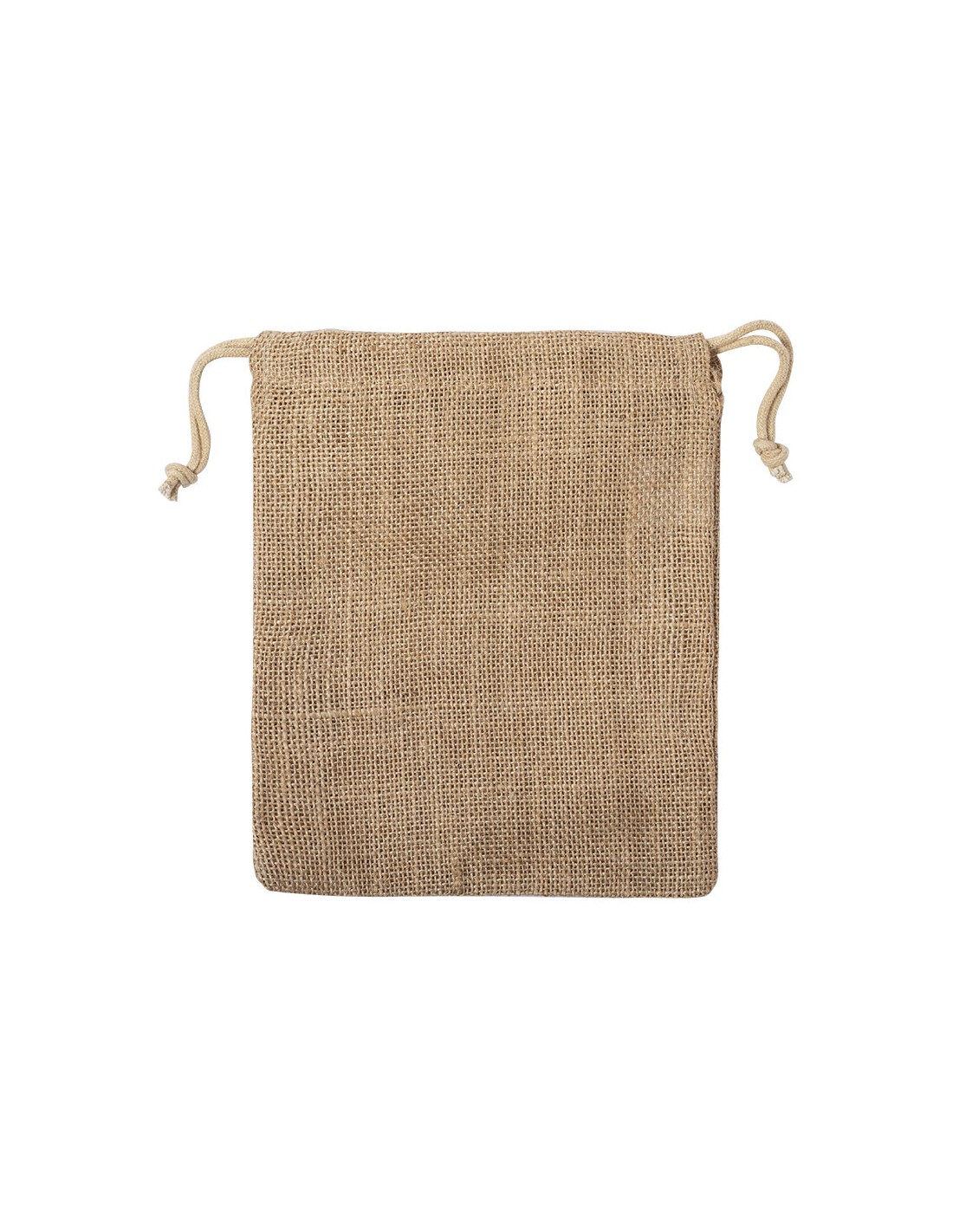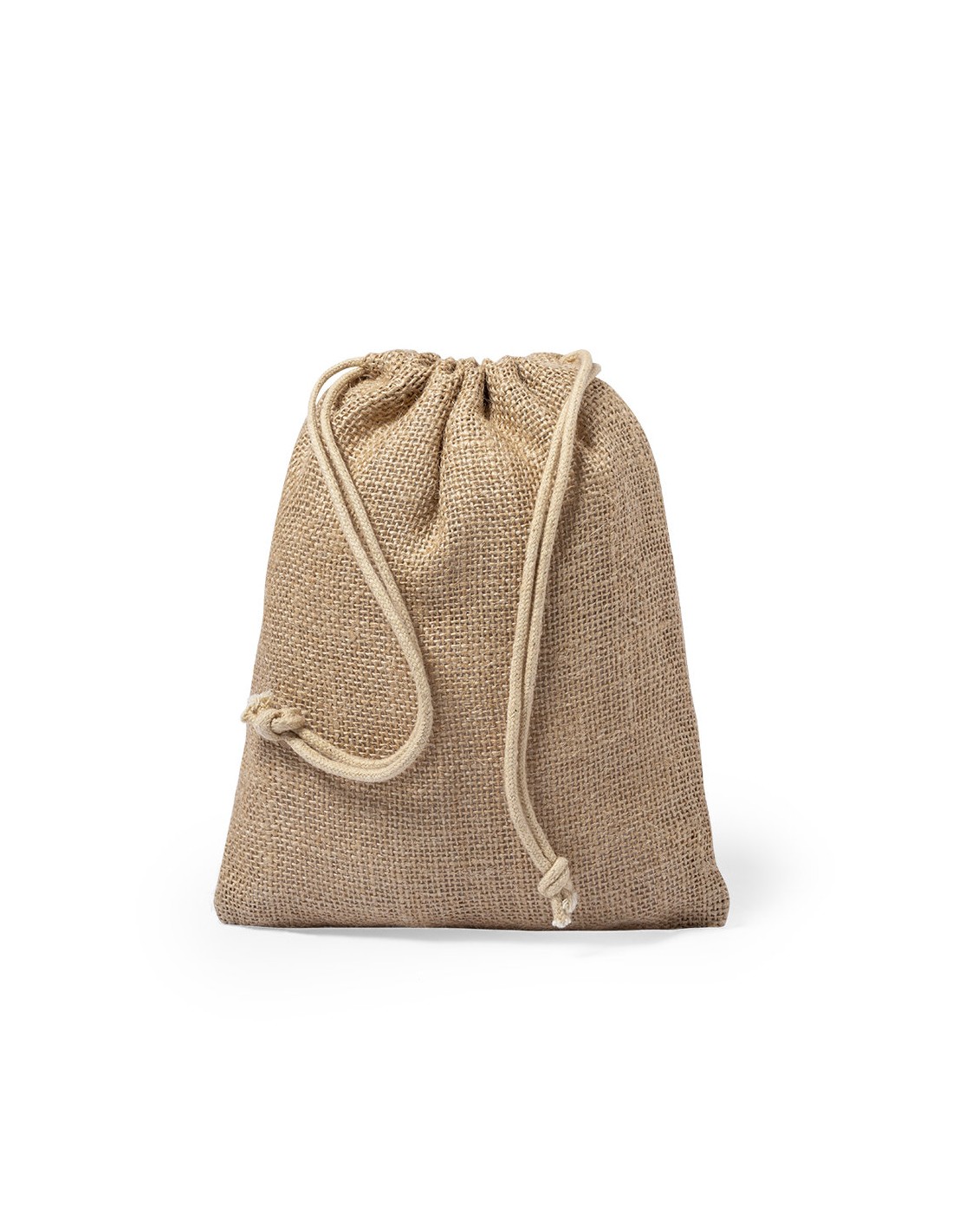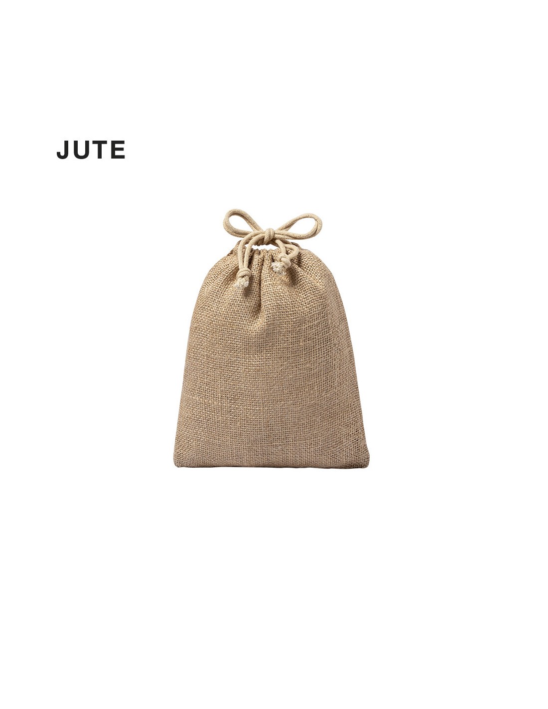 Bolsa de línea nature en resistente yute de 260gsm, con elegante cierre de cordón y acabado cosido.