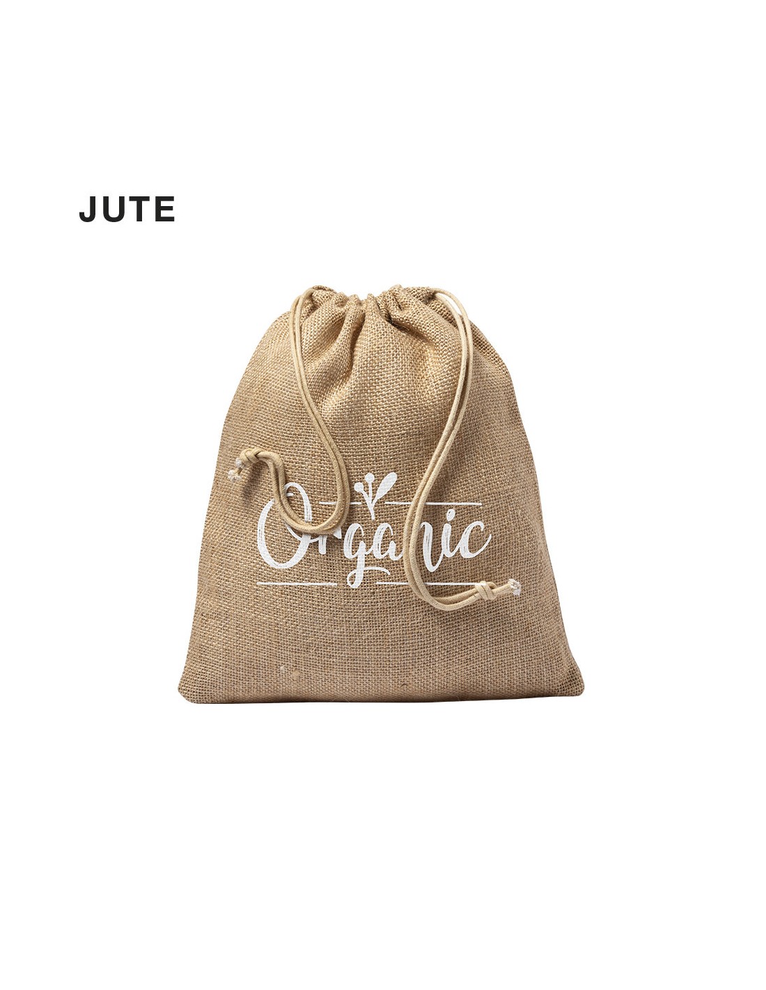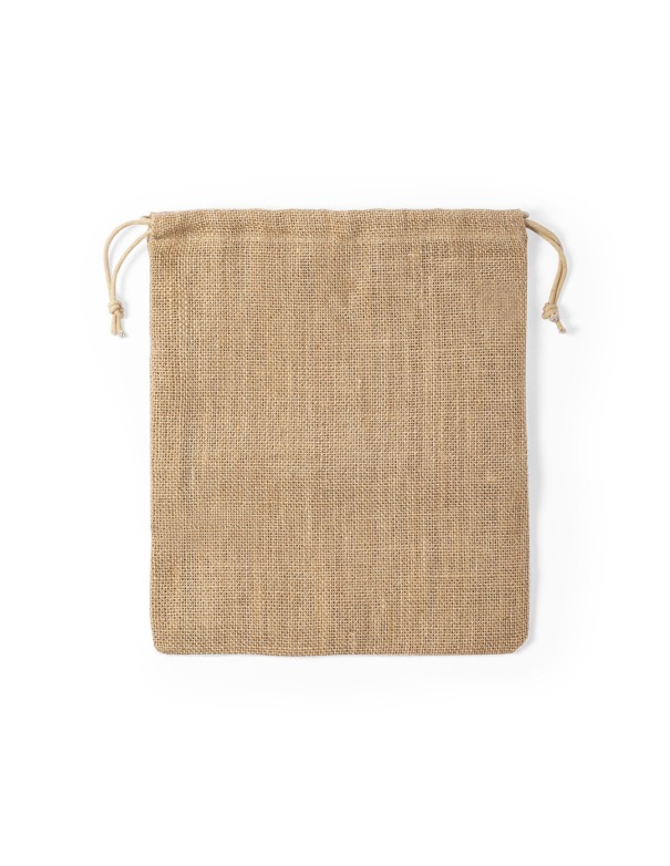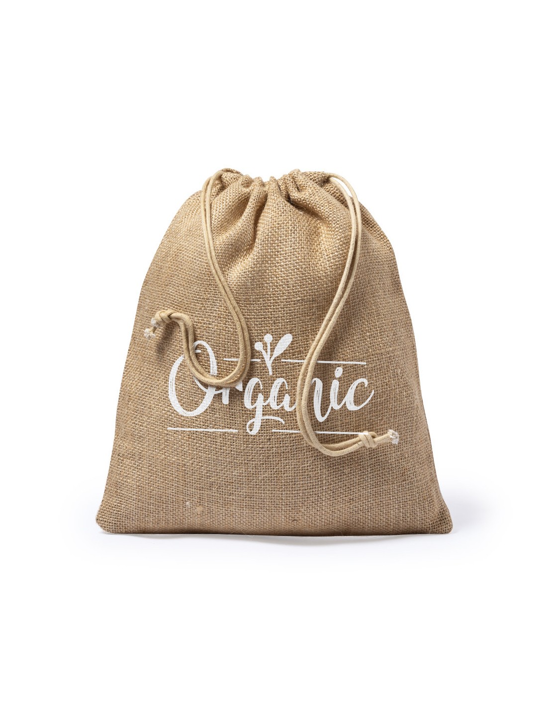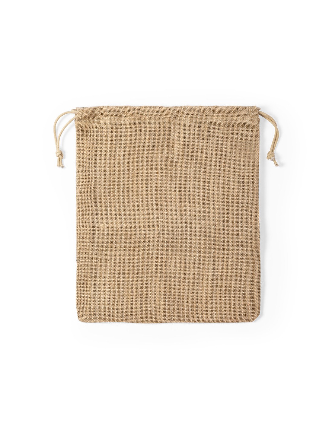 Bolsa de línea nature en resistente yute de 260gsm, con elegante cierre de cordón y acabado cosido.