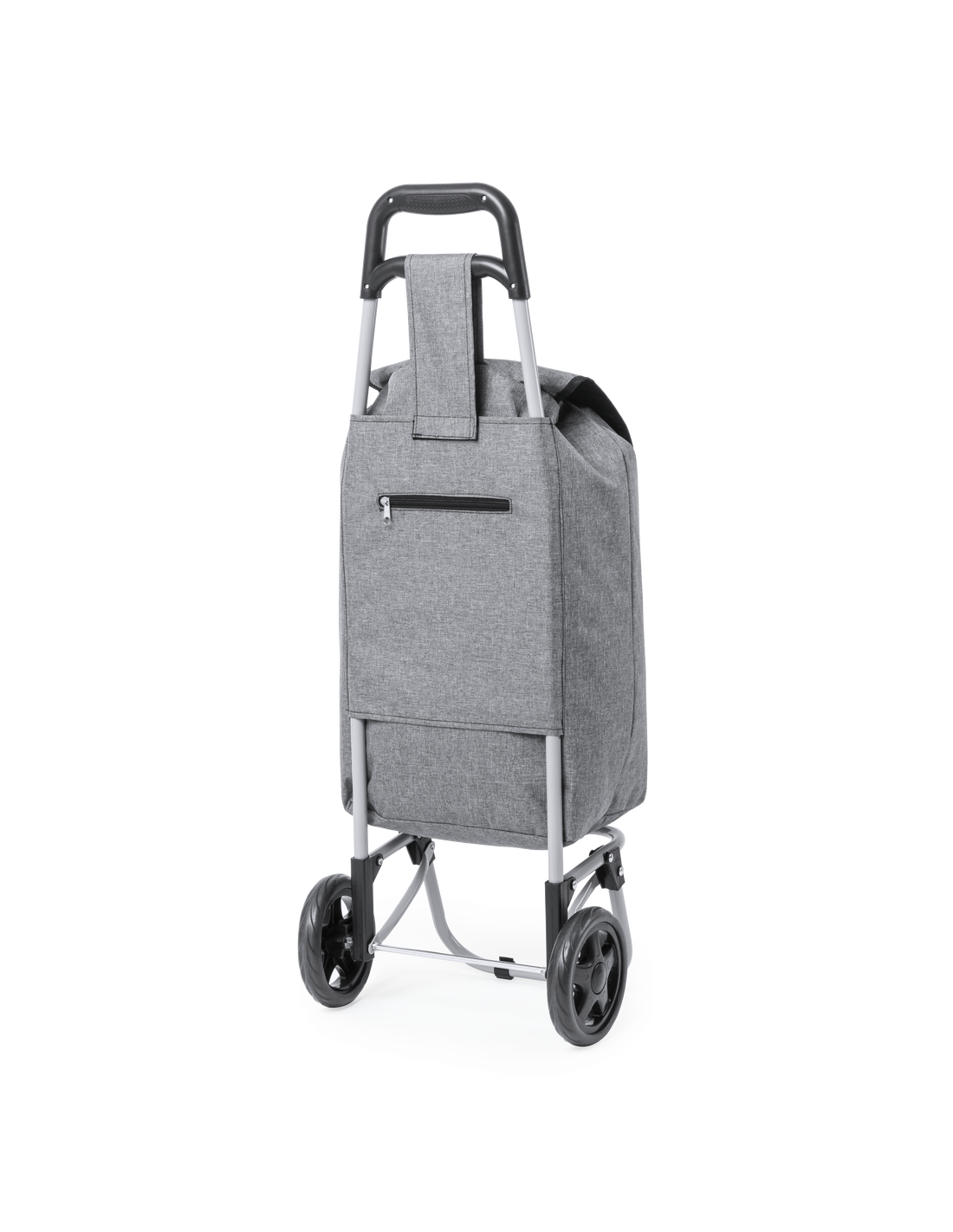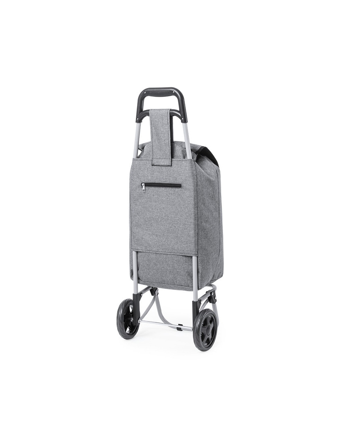 Carro de compra plegable y línea nature. Fabricado en resistente poliéster 600D RPET, elaborado a partir de plástico reciclado, para así fomentar la reutilización de residuos plásticos y ayudar a la sostenibilidad del planeta. Con asa reforzada, cuerpo metálico tubular, bolsillo de cremallera posterior y soportes con gomas de protección. Ruedas reforzadas de alta calidad. Etiqueta distintiva RPET en la solapa.