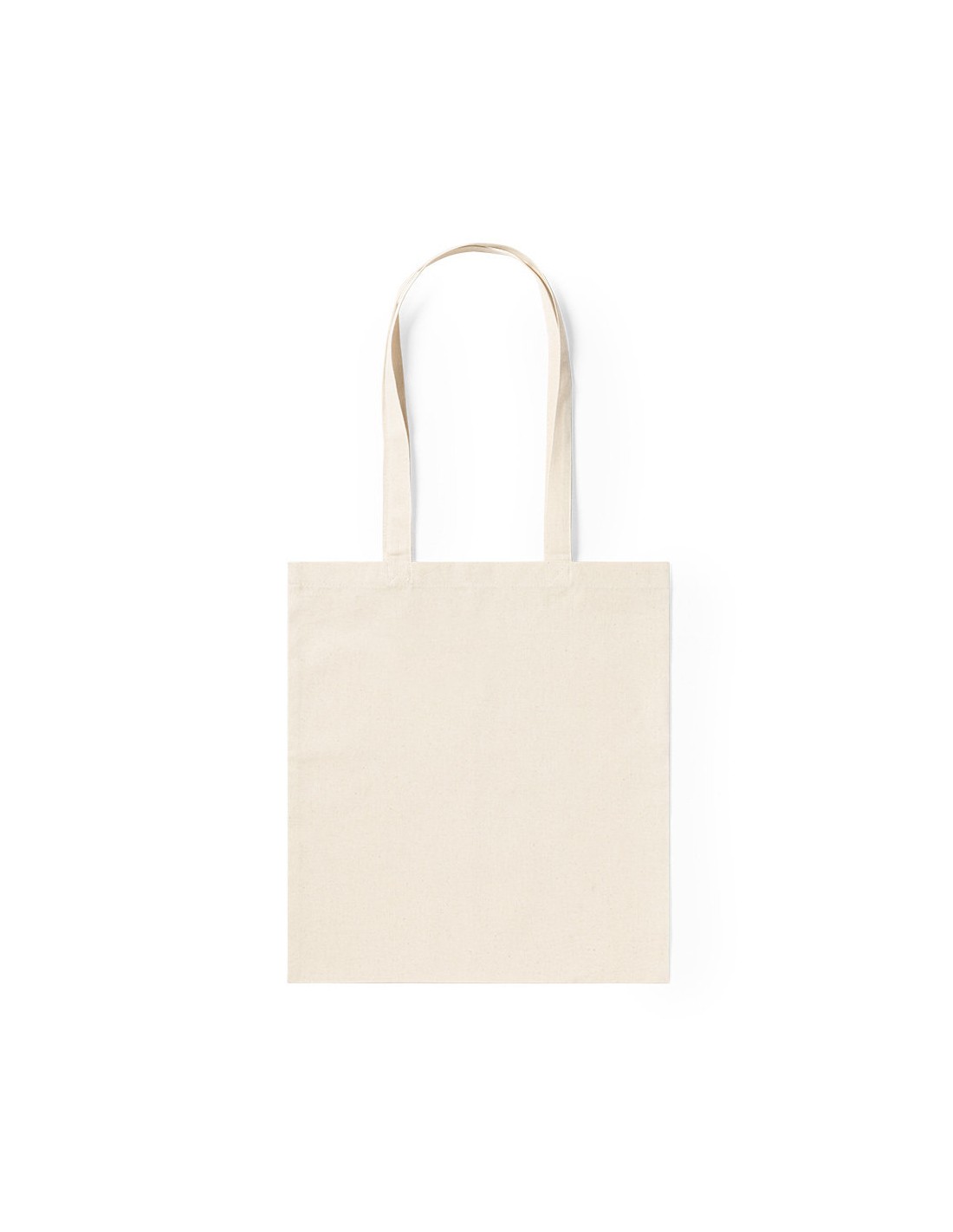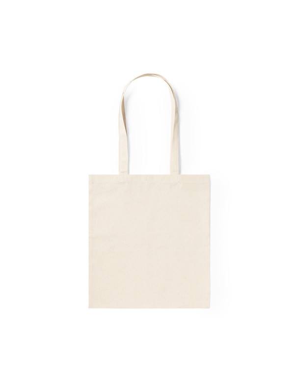 Bolsa en resistente material 100% algodón de 240g/m2 con acabado en color natural. Con asas largas reforzadas de 70cm y acabado cosido. Resistencia hasta 9kg de peso.
