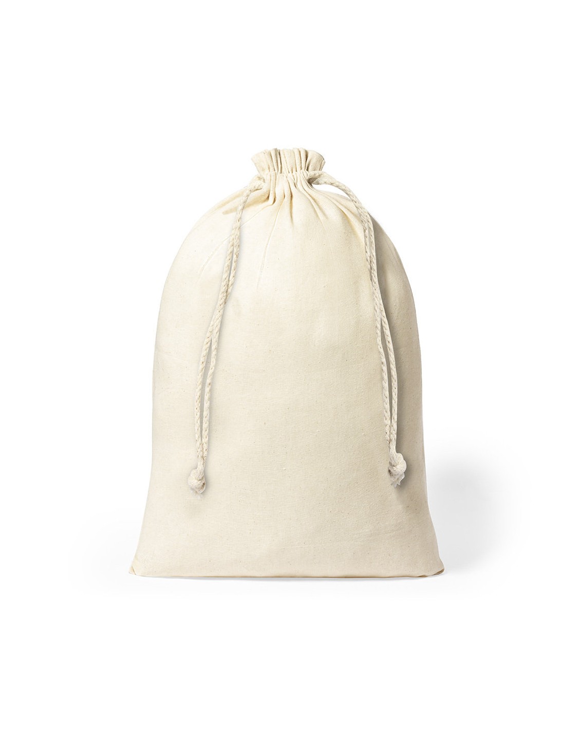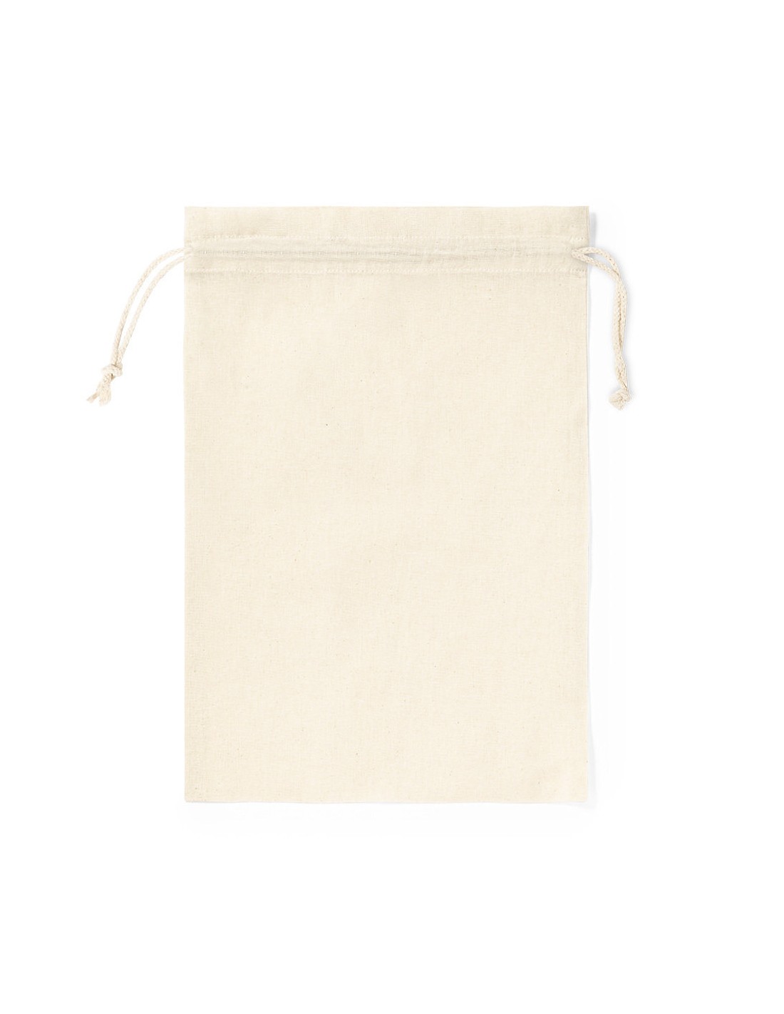 Bolsa de línea nature en resistente material 100% algodón de 105g/m2, con acabado en color natural. Cierre de cordón de algodón y acabado cosido.