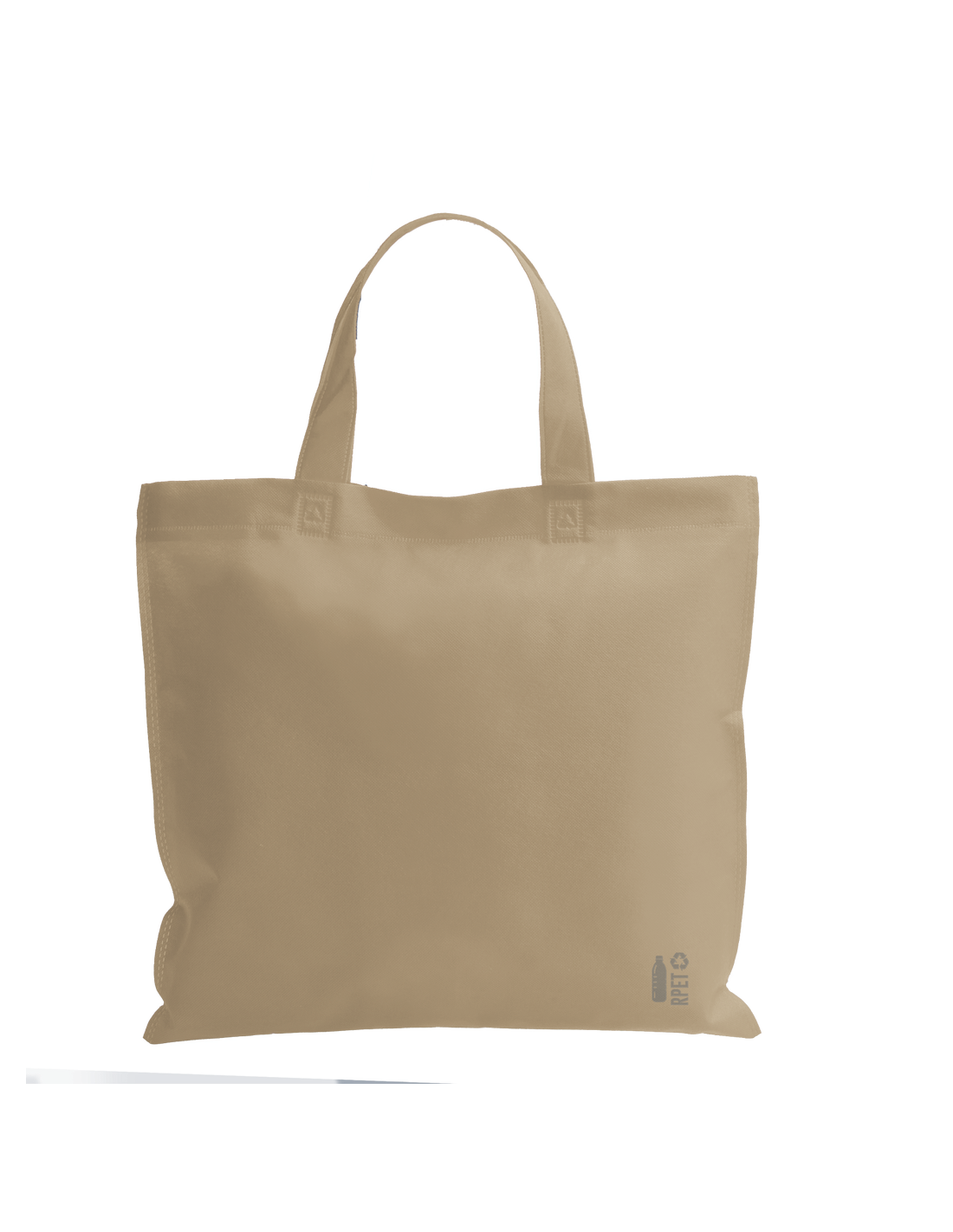 Bolsa de línea nature fabricada non-woven RPET de 70g/m2. De acabado termosellado y con asas cortas reforzadas (36 x 3 cm). Disponible en variada gama de colores, con distintivo RPET en esquina inferior derecha. Resistencia hasta 6 kg de peso.El material RPET se elabora a partir de plástico reciclado, para así fomentar la reutilización de residuos plásticos y ayudar a la sostenibilidad del planeta.