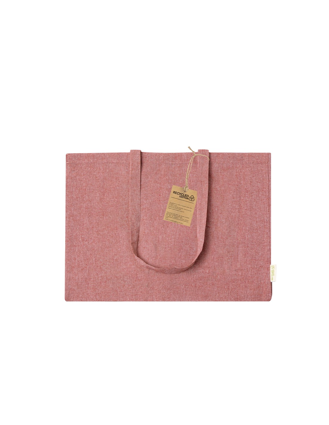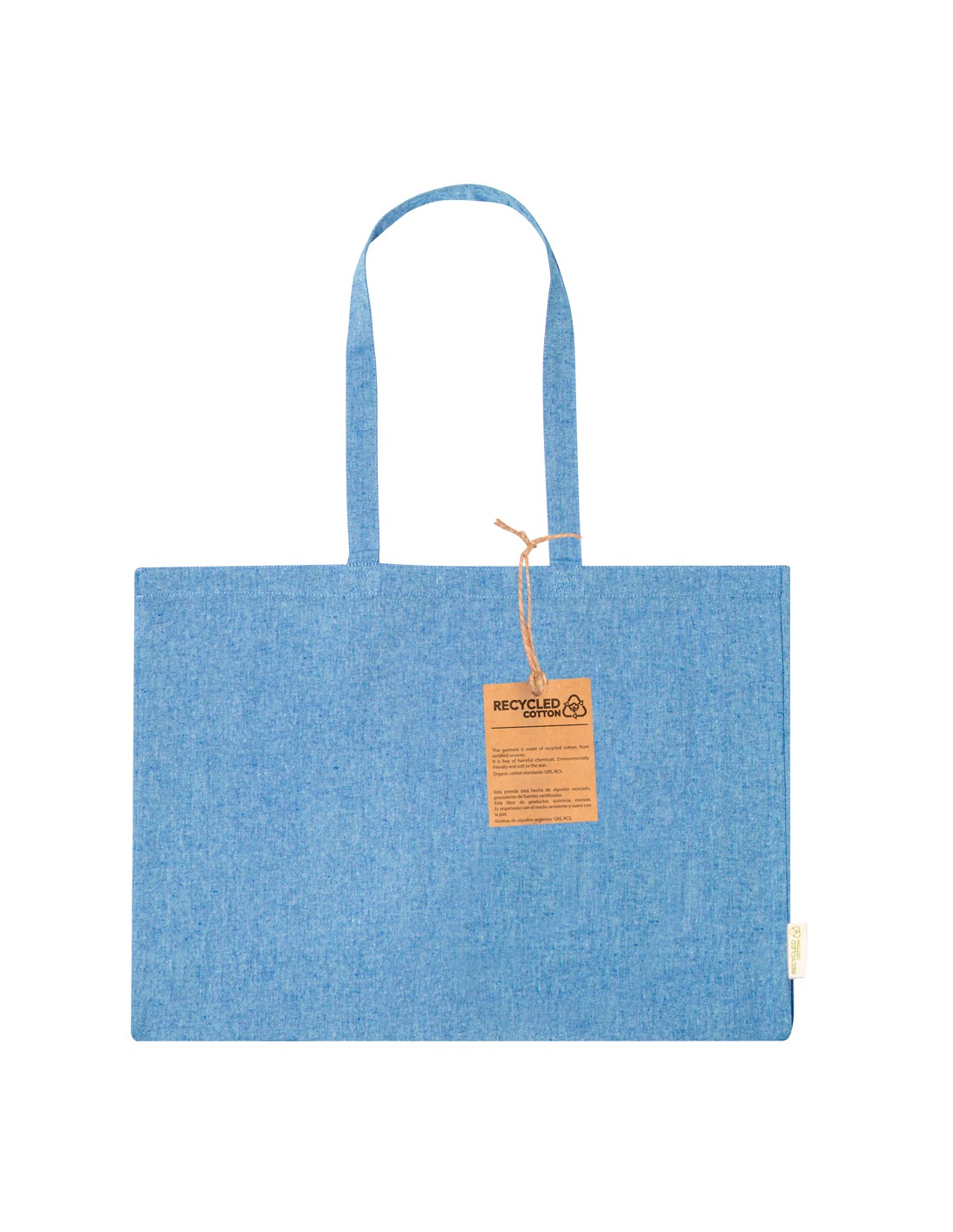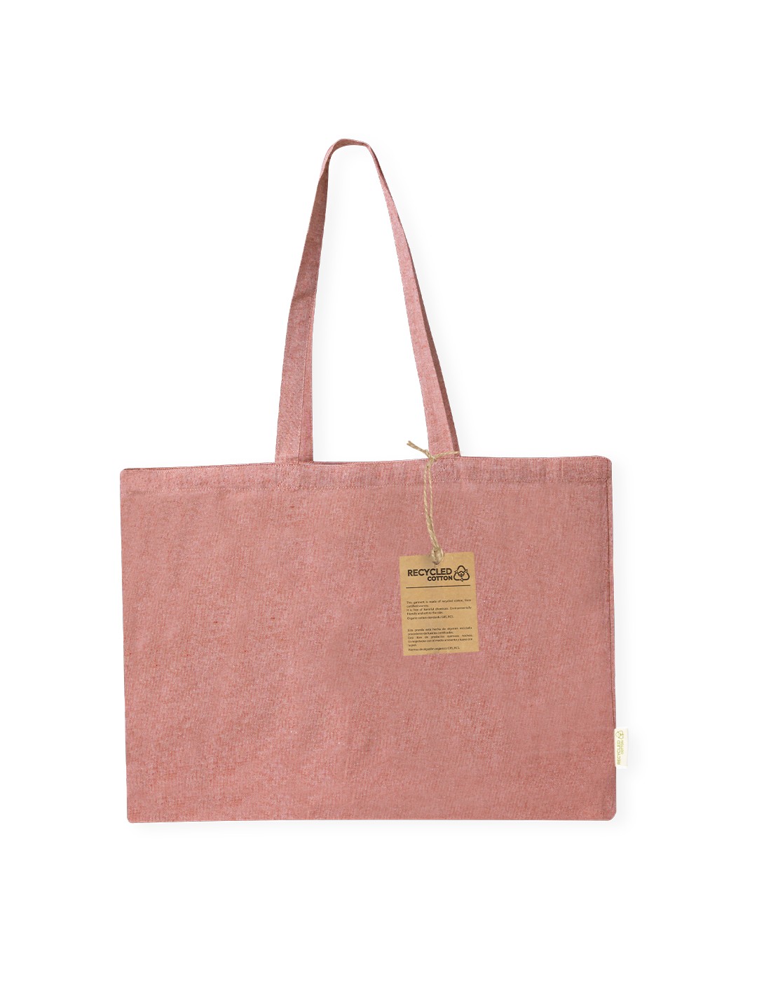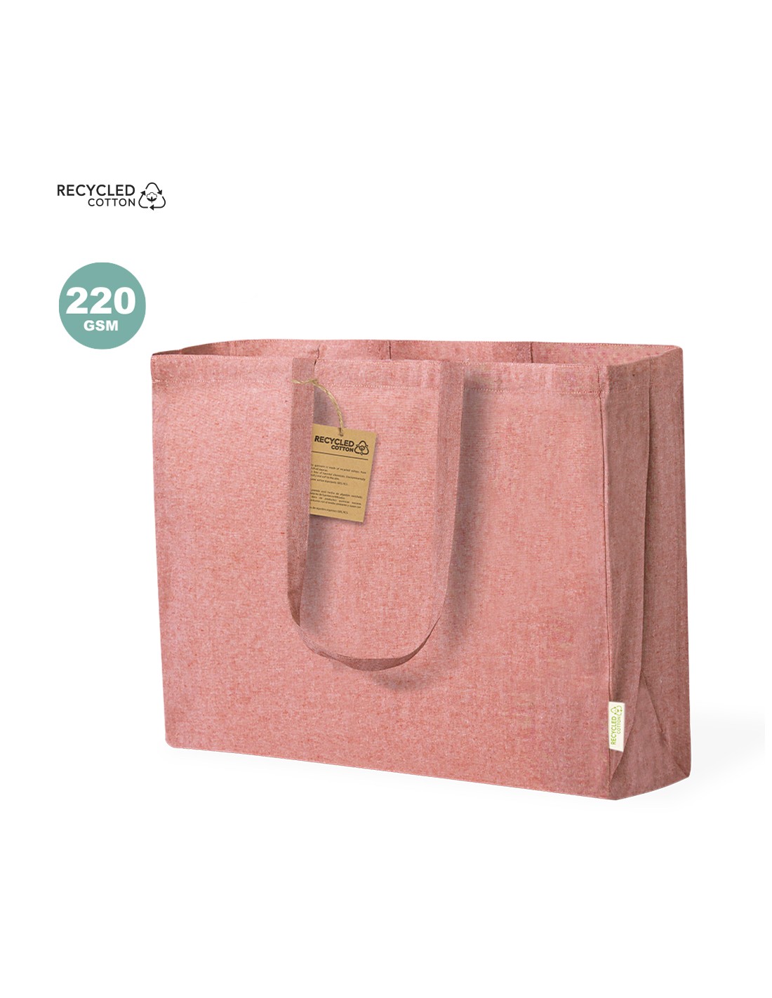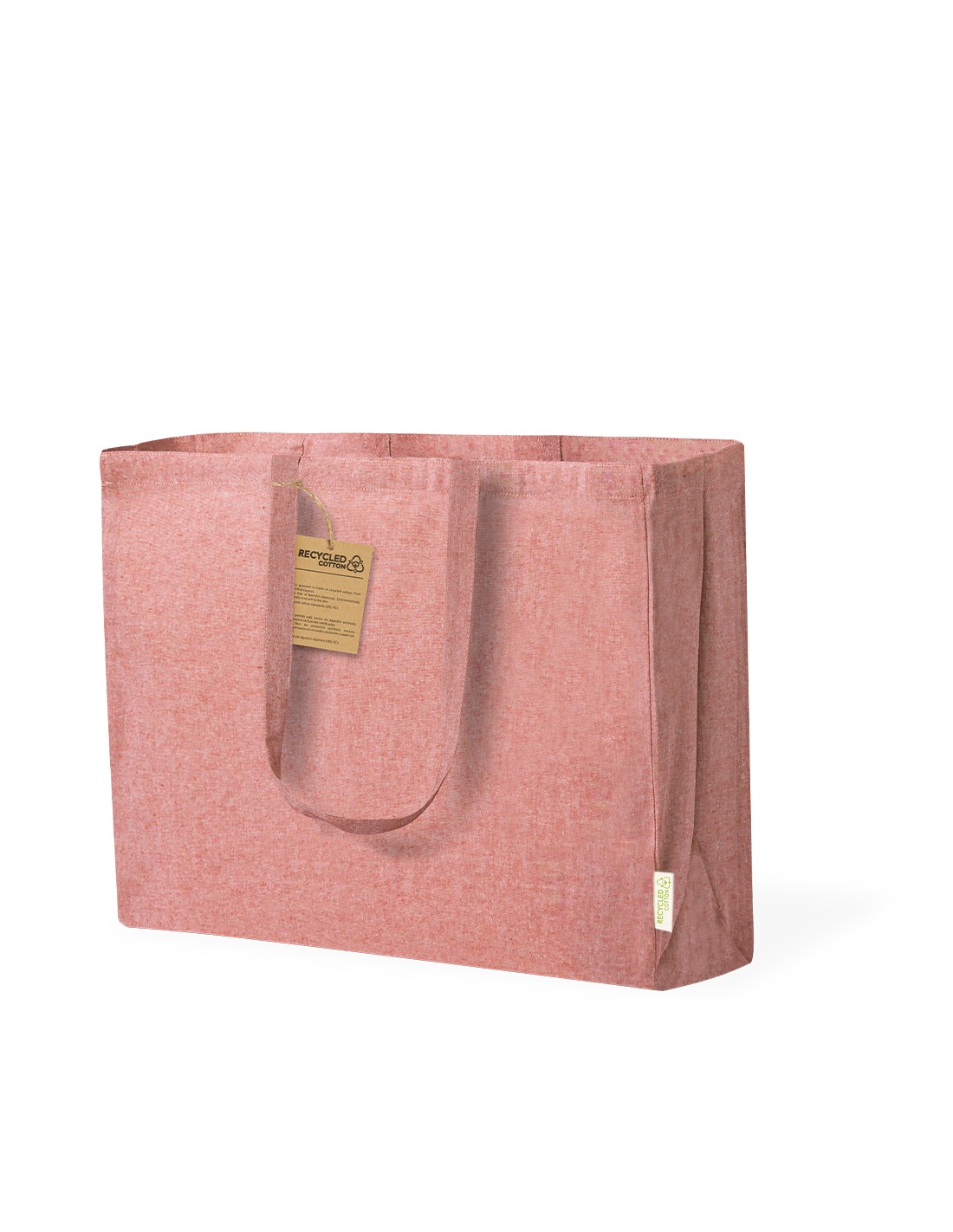 Bolsa fabricada en algodón reciclado de alto gramaje 220g/m2. De acabado cosido y con asas largas reforzadas. Con fuelle y disponible variados colores. Logotipo algodón reciclado en etiqueta exterior. Resistencia hasta 9 kg de peso.
