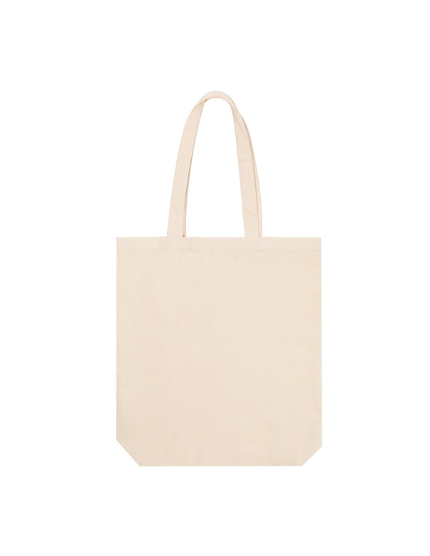 Bolsa de canvas de 270g/m2. En color natural, con resistente acabado cosido y asas reforzadas de 70cm de largas. Resistencia hasta 10 kg de peso con fuelle.
