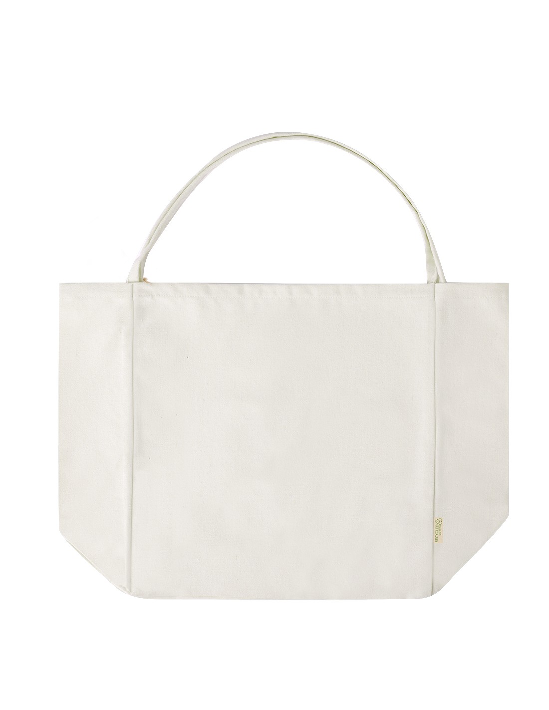 Bolsa en material 100% algodón reciclado de 300 g/m2. Asas largas de 60cm con refuerzo, de acabado cosido y fuelle. Logotipo en etiqueta lateral y resistencia hasta 12 kg de peso. Disponible en color natural.