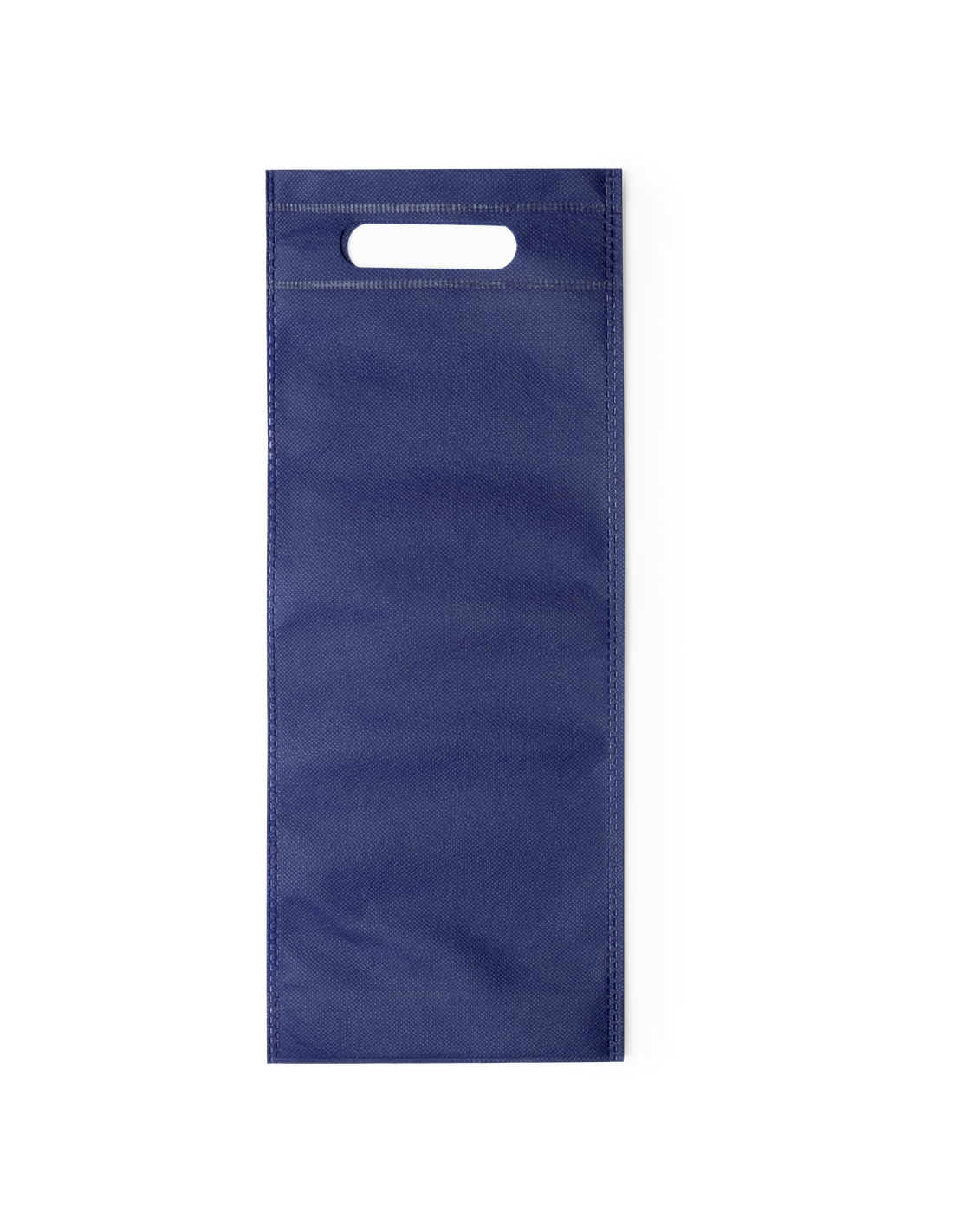 Bolsa en resistente non-woven para botellas de vino de 75 cl. En variada gama de sobrios colores, de acabado termosellado y resistente asa troquelada con refuerzo.