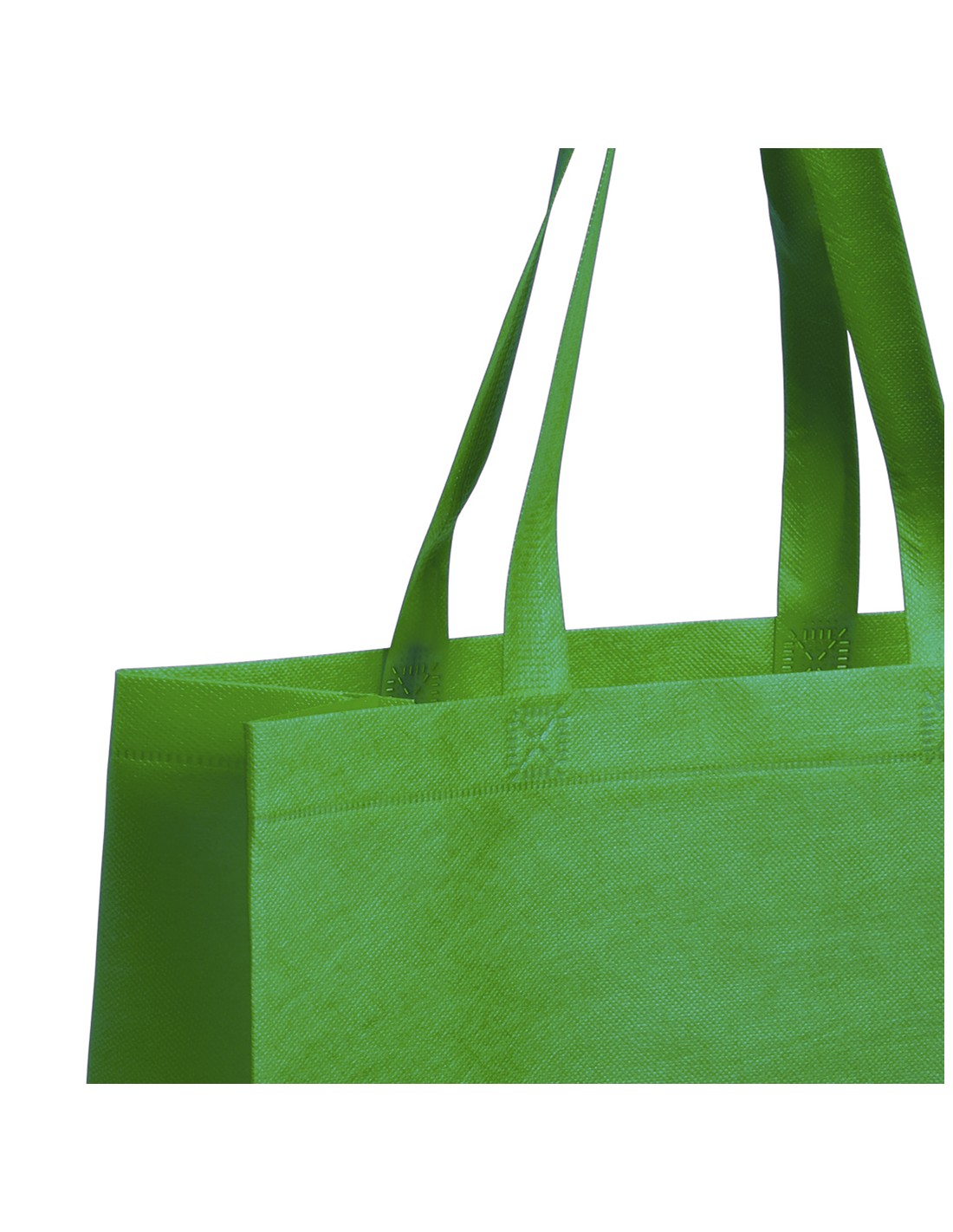 Bolsa en non-woven de 80g/m2, en variada gama de vivos colores. Con asas medianas de 50cm reforzadas, fuelle y acabado termosellado. Resistencia hasta 9kg de peso.