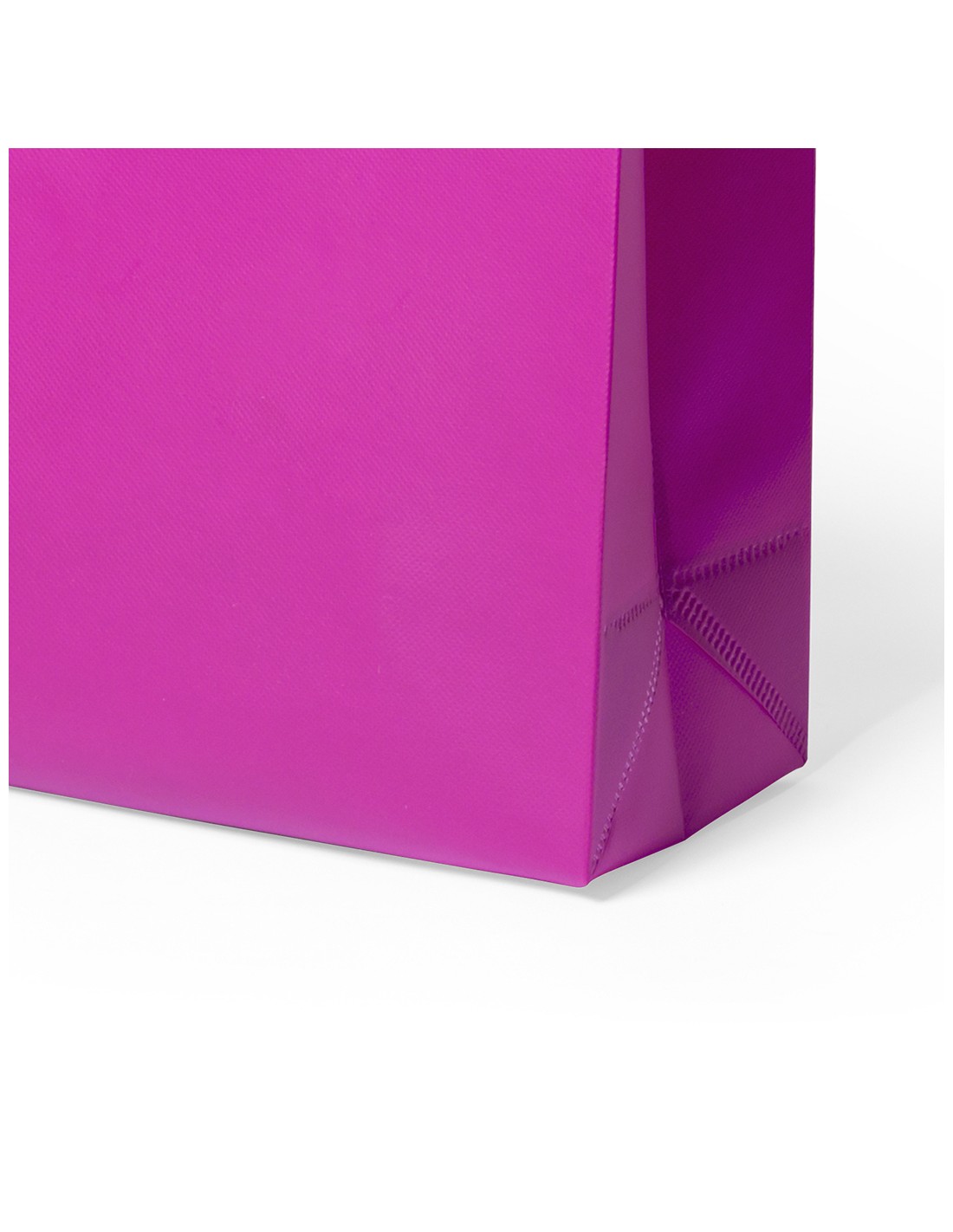 Bolsa de alta calidad en non-woven laminado de 110g/m2, en variada gama de vivos colores mates. Con asas reforzadas cortas de 35cm, fuelle y acabado termosellado. Resistencia hasta 10kg de peso.