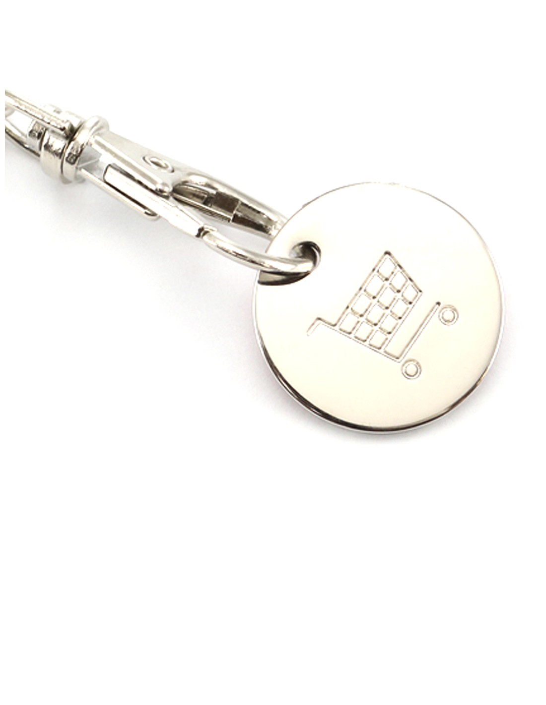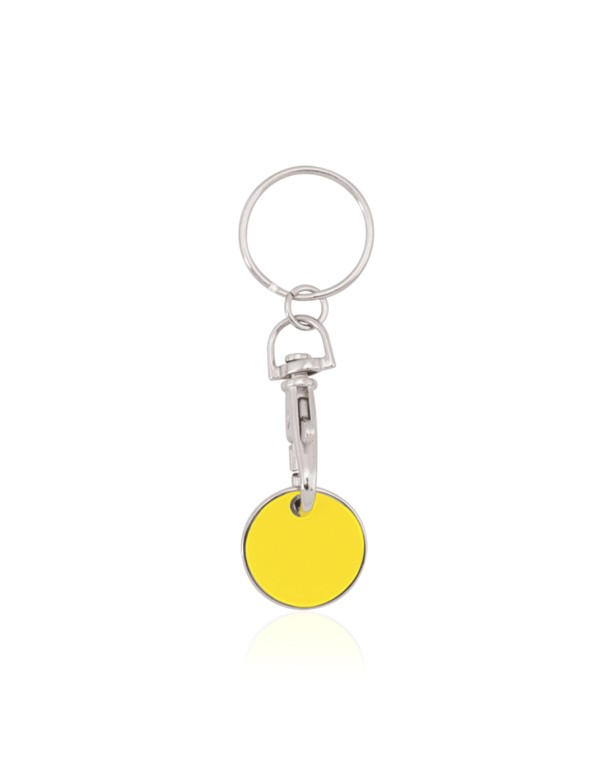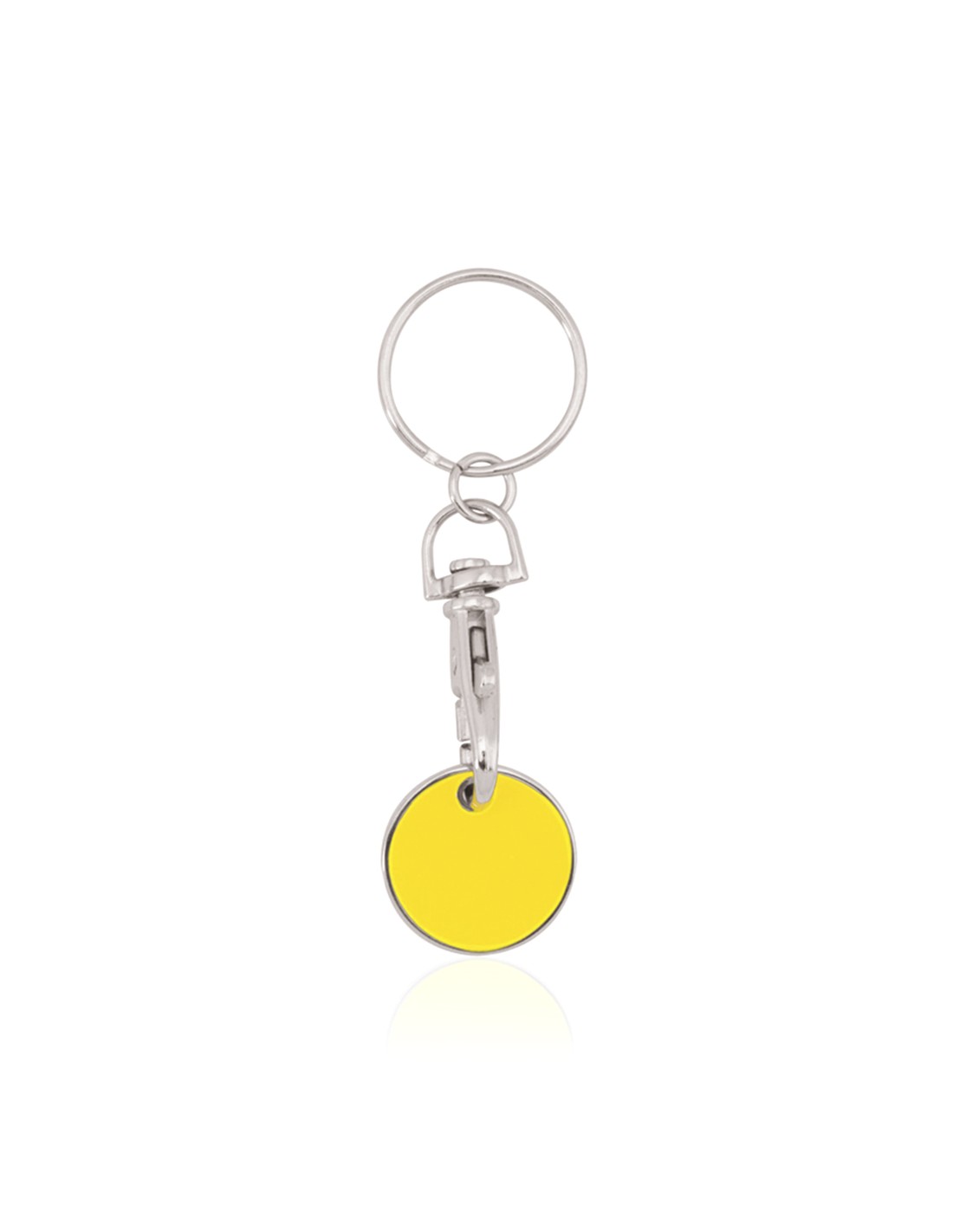Llavero moneda metálico en divertido diseño de variados colores con moneda extraíble y cierre de mosquetón.