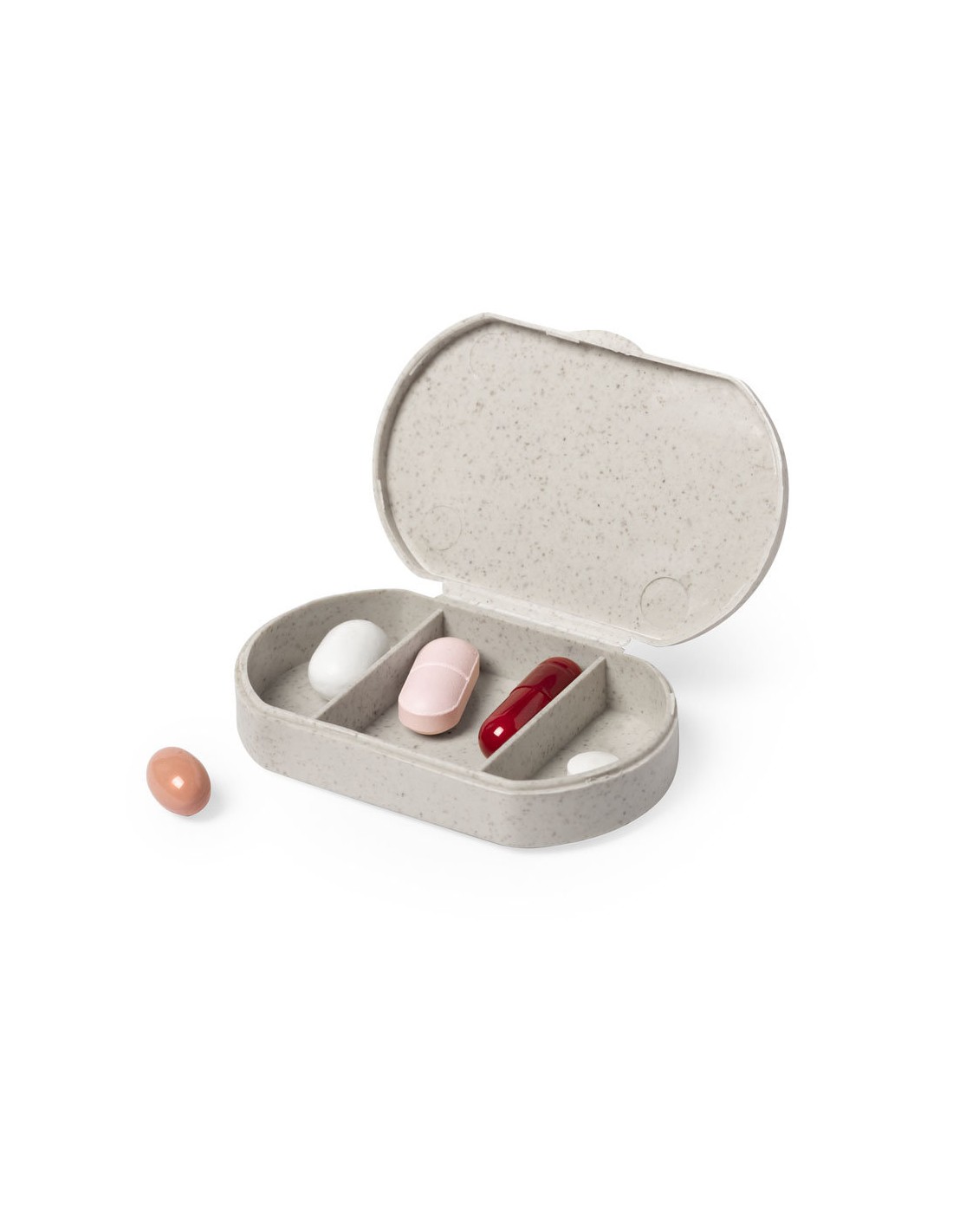 Pastillero en línea nature, fabricado en fibra de bambú. Con 3 compartimentos y cierre de seguridad.