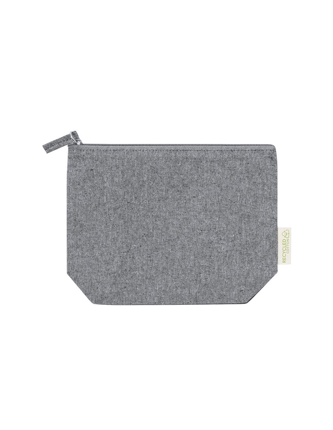 Neceser en resistente material 100% algodón reciclado GRS de 180g/m2. Certificación GRS (Global Recycled Standard / Estándar de Reciclaje Global), que garantiza el origen reciclado del material usado para fabricar el producto. Cierre de cremallera con tirador a juego y distintivo eco en etiqueta exterior.