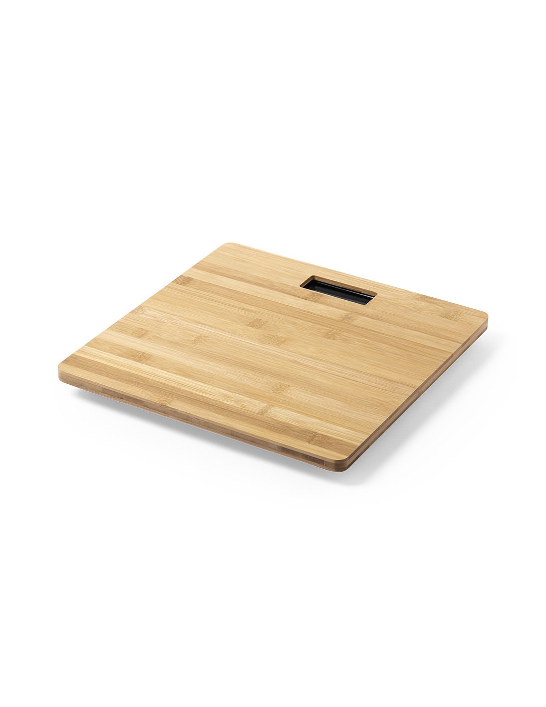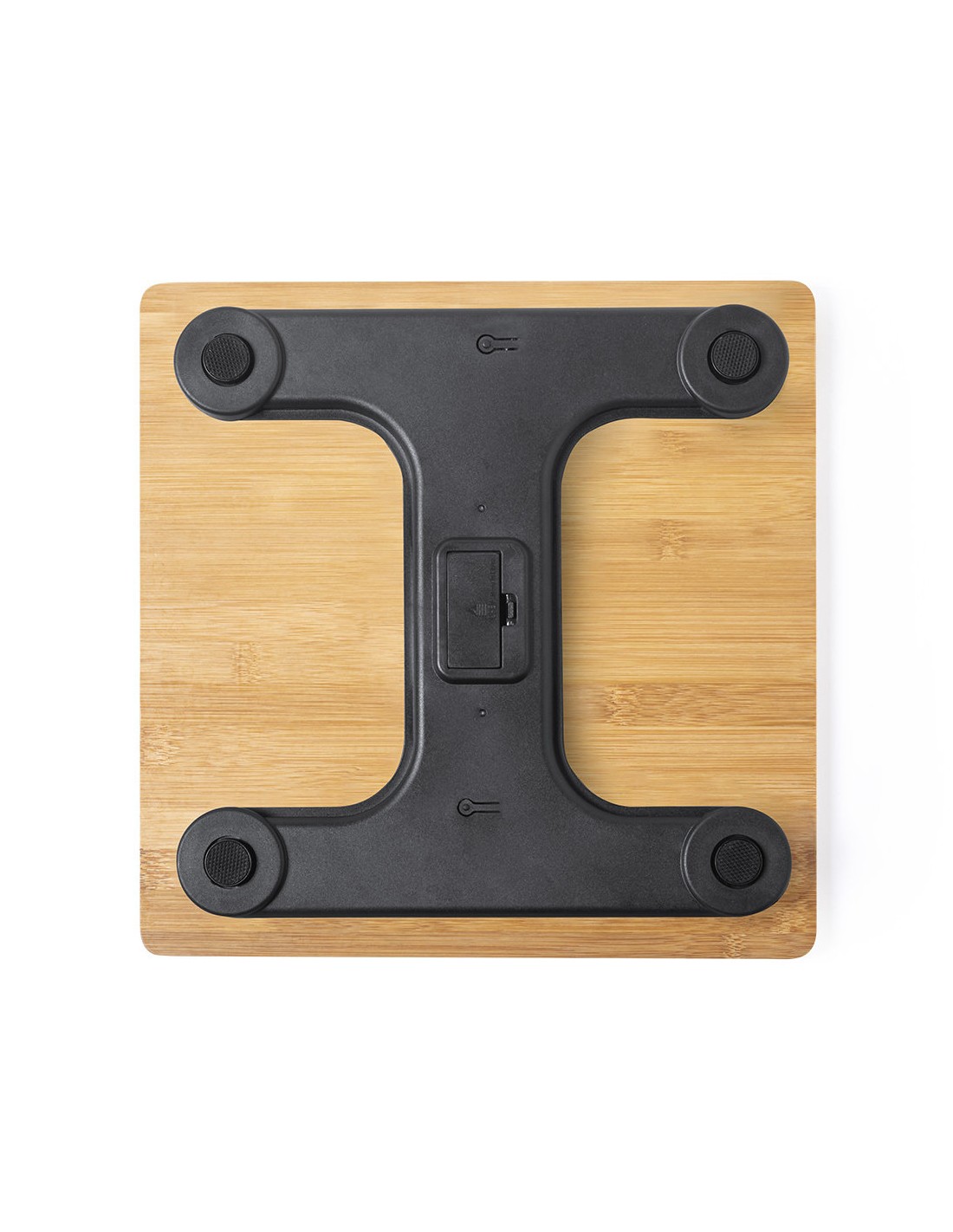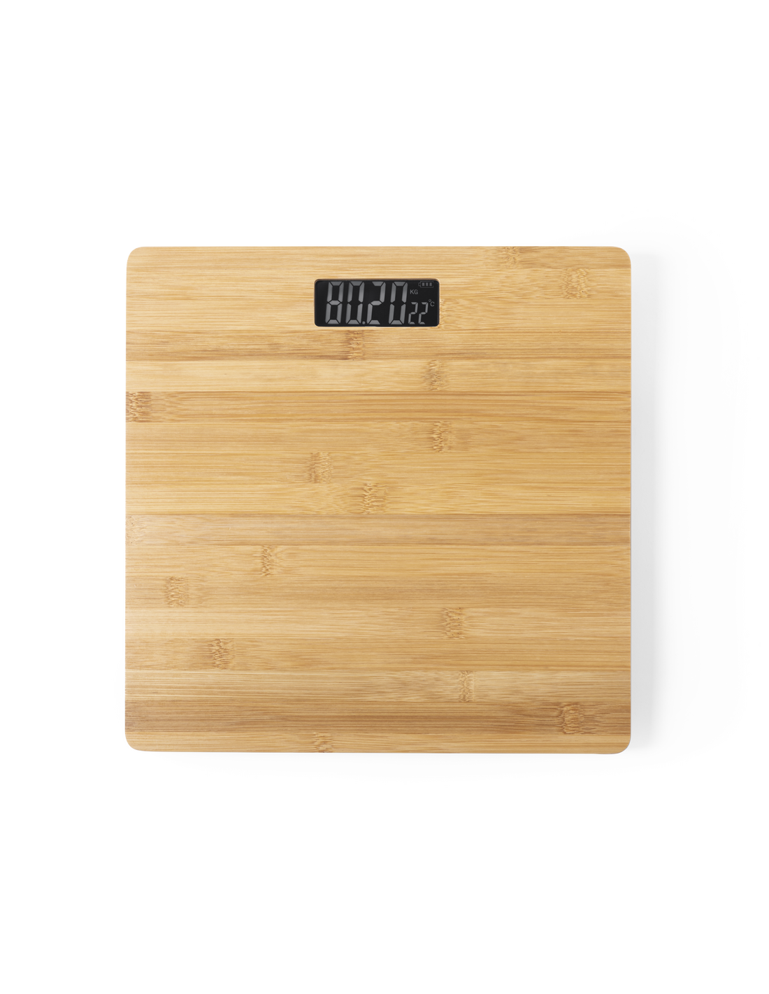 Báscula de línea nature en bambú, con base antideslizante. Display digital, con funciones de apagado automático, temperatura, tara y selección de unidad de pesaje. Alimentación a pilas (2xAAA no incluidas). Presentada en atractiva caja de diseño eco.