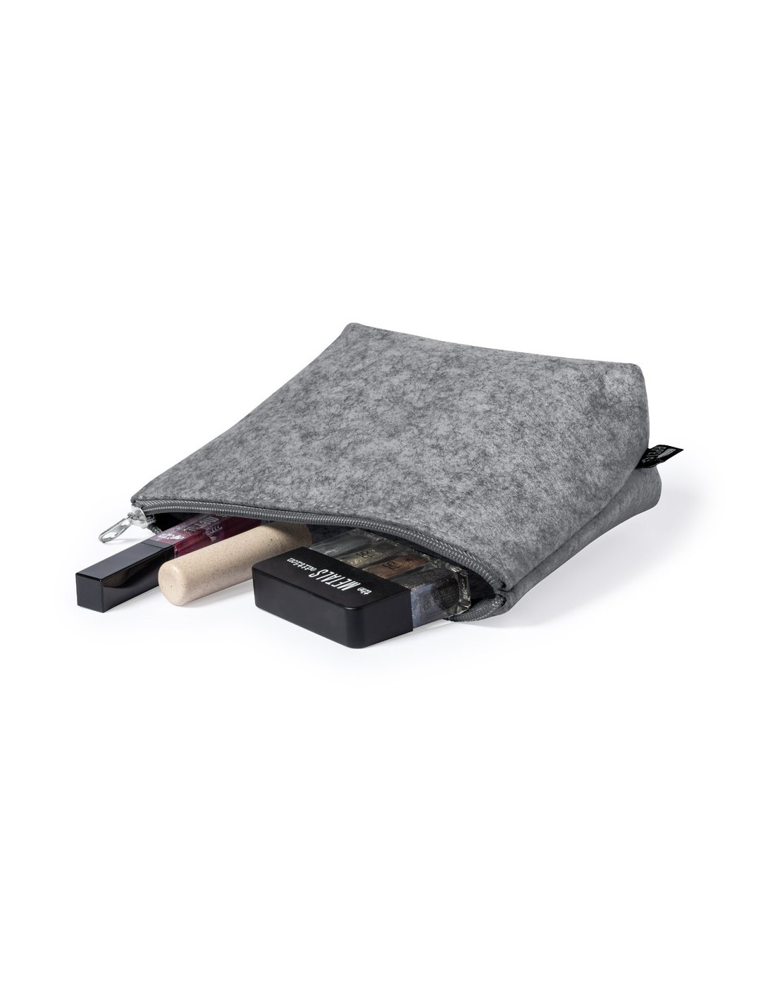 Neceser de línea nature y en resistente fieltro RPET, fruto de la combinación del proceso de reciclaje de materiales plásticos junto con la técnica milenaria de fabricación del fieltro, dando como resultado un material de eco-tendencia que, además de ser de origen reciclado, también se convierte en reciclable. Con cierre de cremallera, tirador a juego y etiqueta exterior con distintivo RPET.