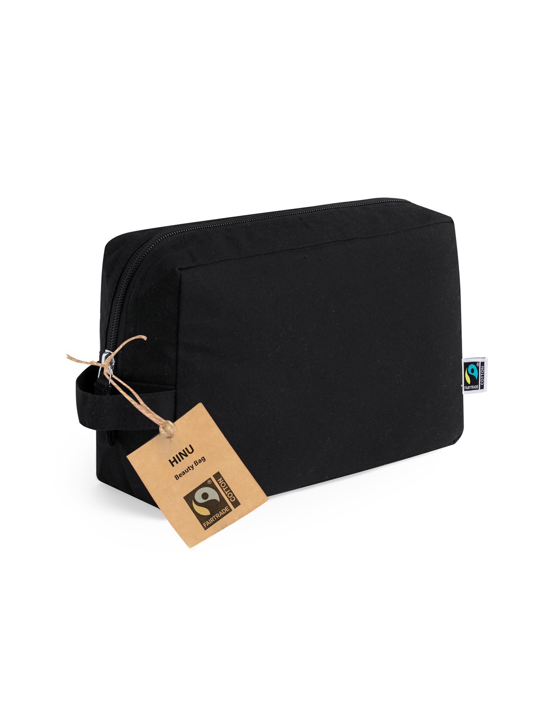 Neceser de línea nature, fabricado en algodón 100%. Compartimento principal con cierre de cremallera y tirador a juego, en elegante tono negro. Incluida etiqueta Fairtrade y etiqueta con logotipo en cartón reciclado.Con certificación Fairtrade (Comercio Justo), un sistema comercial solidario y alternativo al convencional que persigue el desarrollo de los pueblos y la lucha contra la pobreza.