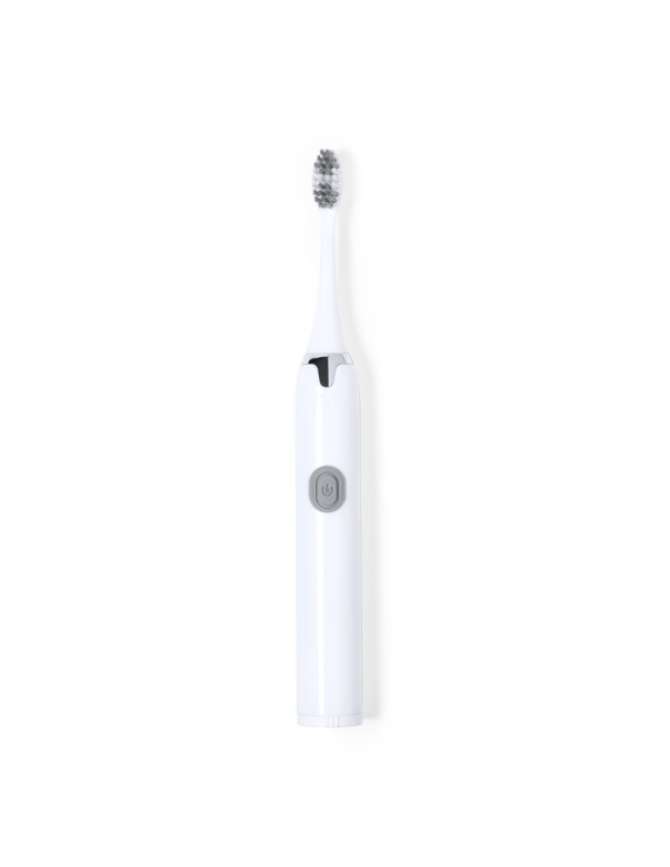 Práctico cepillo de dientes portátil eléctrico. Eficiente limpieza gracias a su función de vibración y a sus agradables cerdas. Funciona con 1 pilas AA (no incluida) introducidas por la base. En color blanco y plateado, presentado en una caja de diseño kraft.