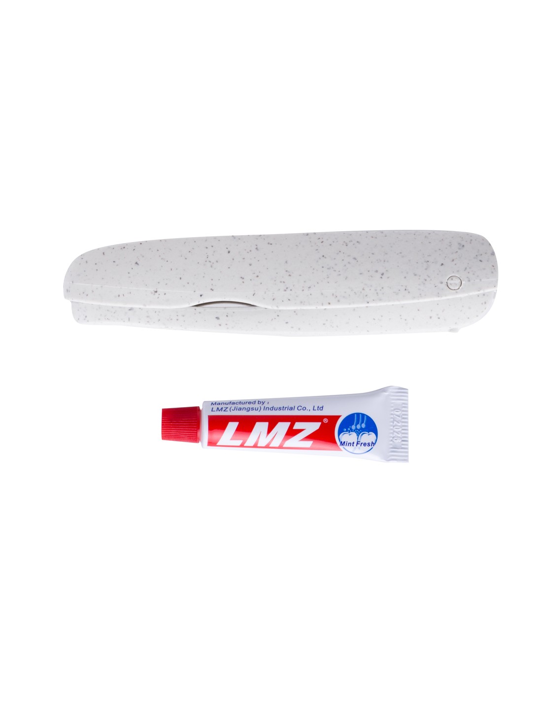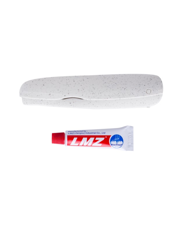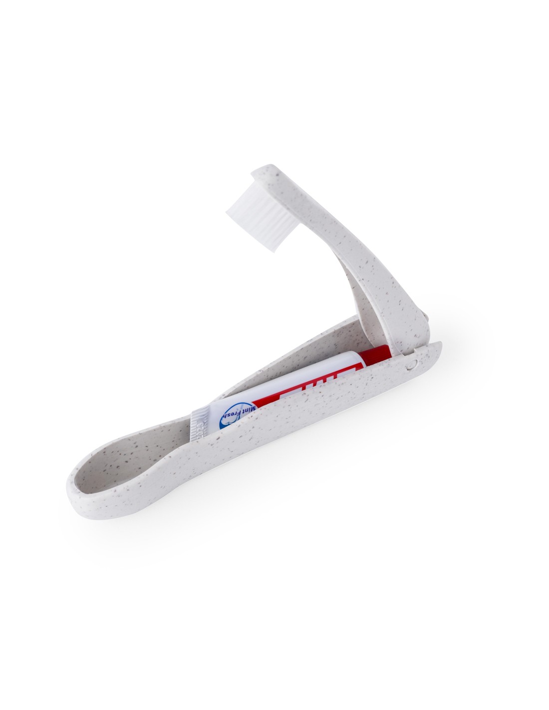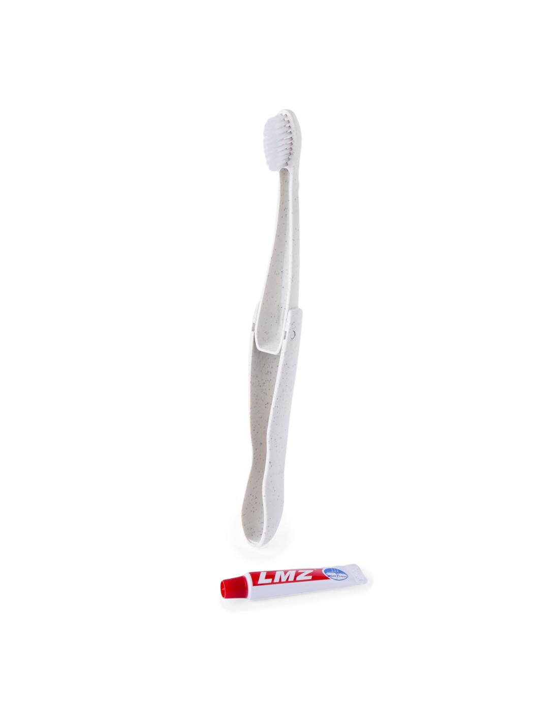 Práctico cepillo de dientes plegable fabricado en resistente caña de trigo. Incluye compartimento para guardar un tubo de pasta de dientes de 6g (incluido).La caña de trigo fomenta la utilización de materias primas naturales, reduciendo así las emisiones contaminantes.