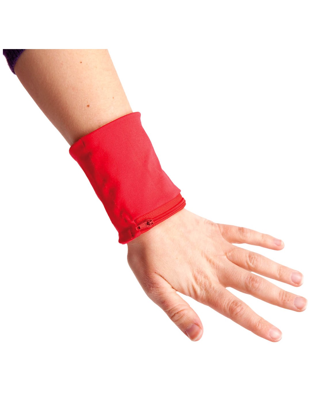 Muñequera en resistente y suave microfibra en vivos colores, con bolsillo de cierre de cremallera a juego y de firme ajuste. Diseñada para actividades deportivas y de ocio.