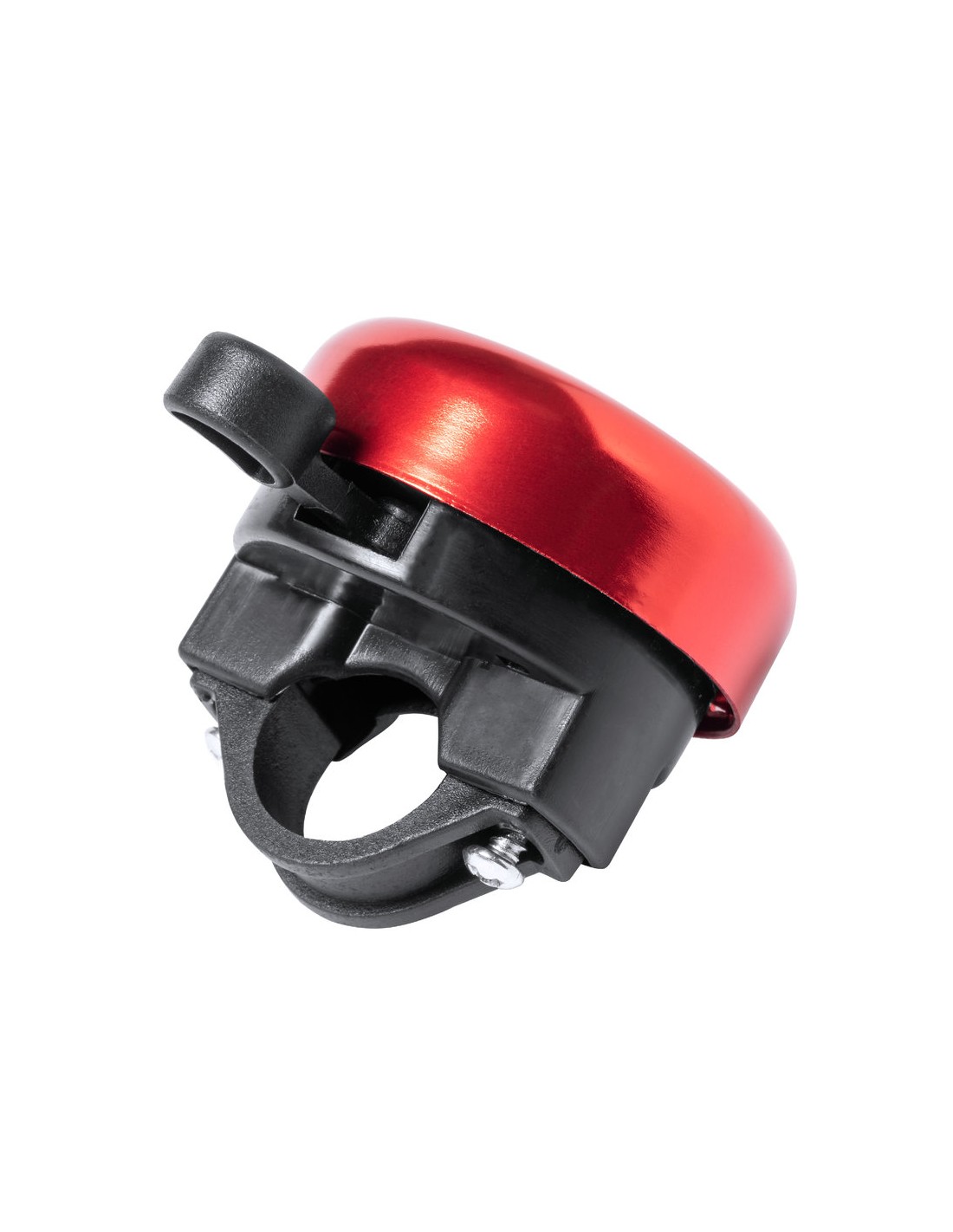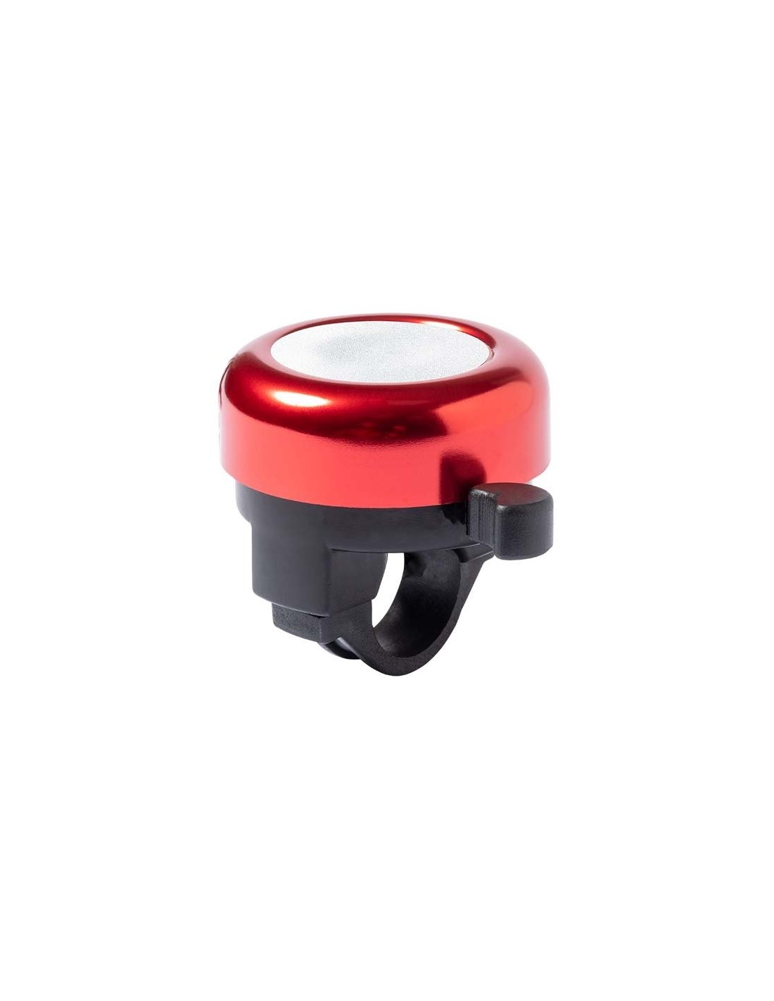 Timbre para bicicleta fabricado en resistente aluminio de acabado brillo. Con ajuste de seguridad para manillar y disponible en variada gama de colores.