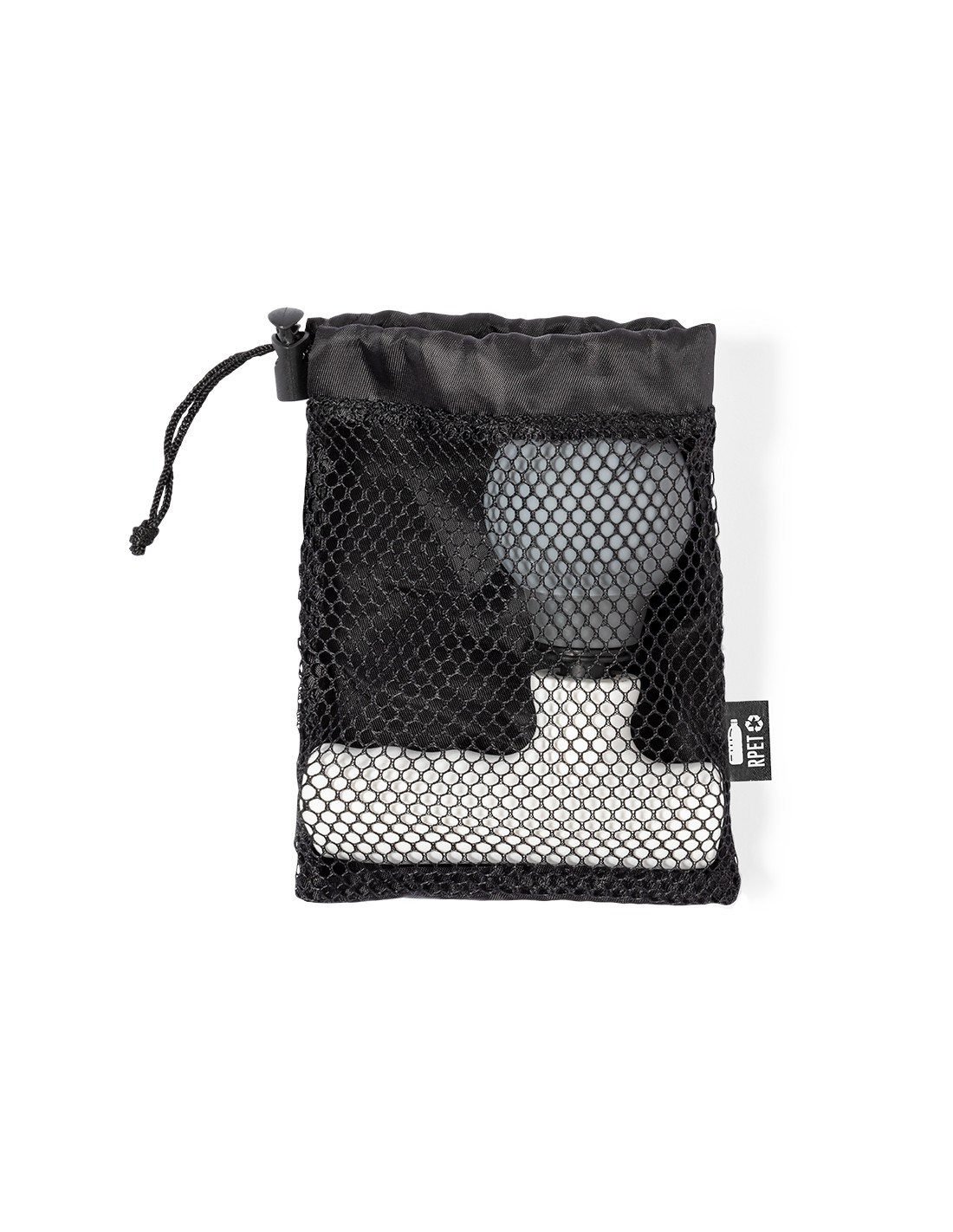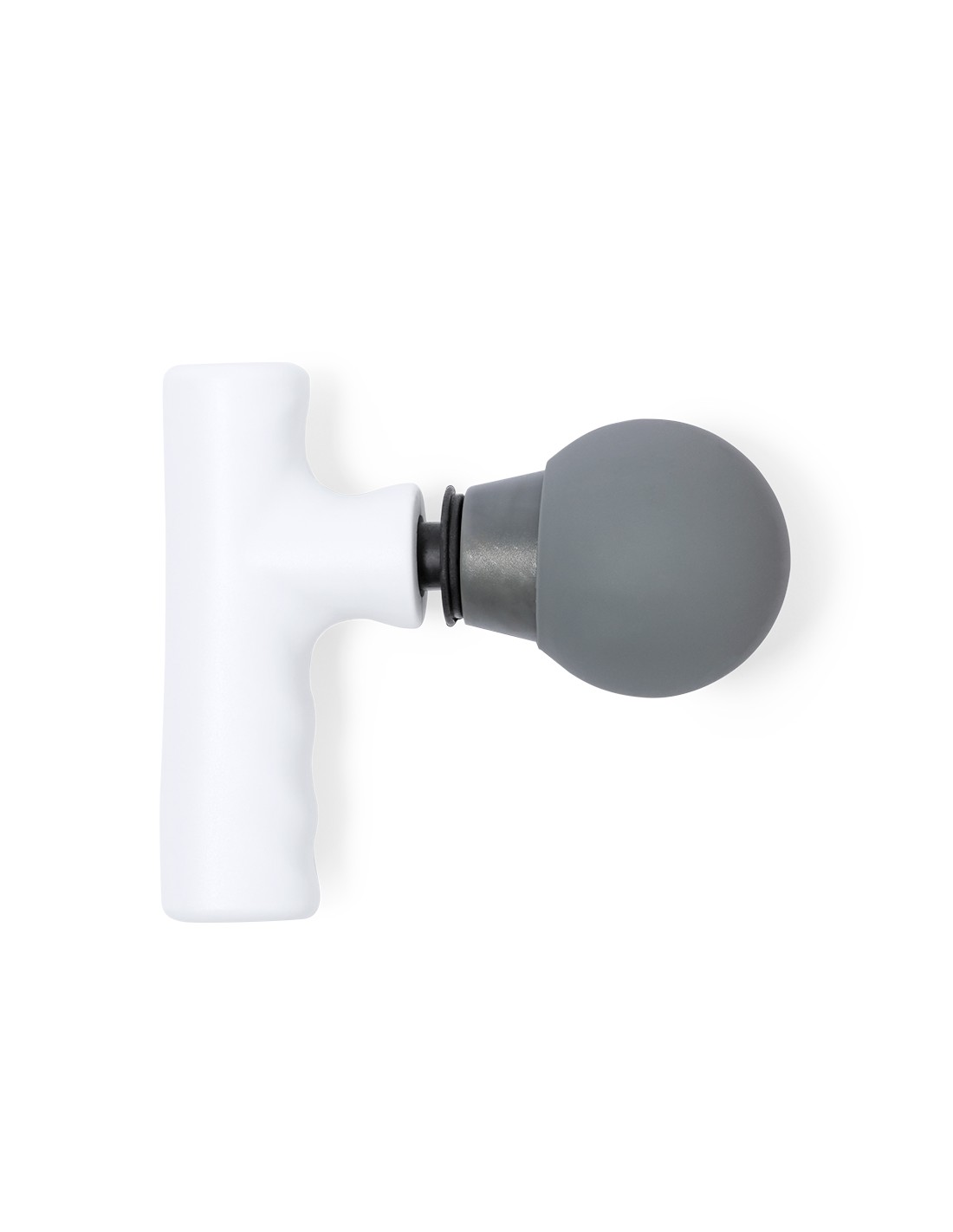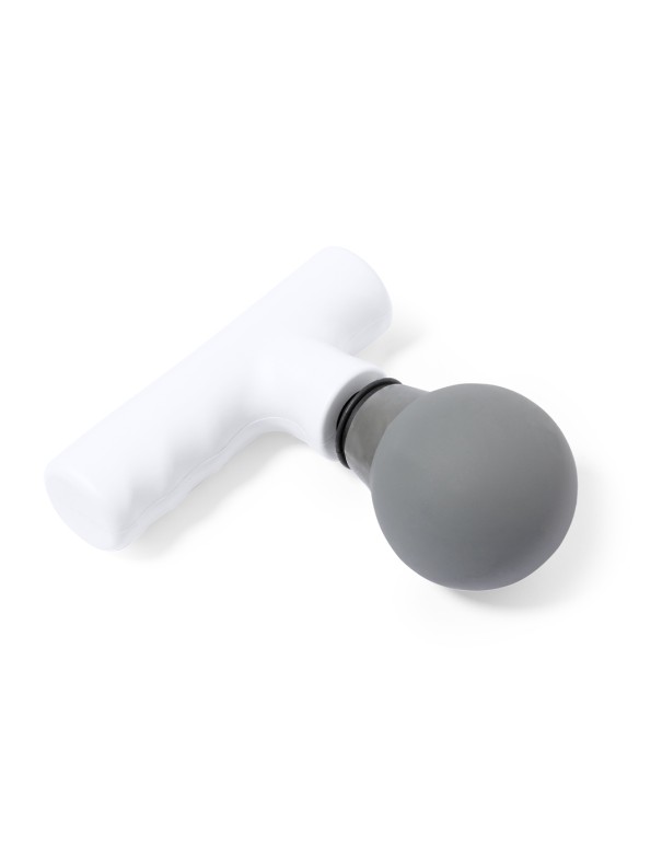 Masajeador eléctrico. Ayuda a relajar los músculos, aliviar los efectos del entrenamiento, liberar tensión y revitalizar el cuerpo. Con dos posiciones de intensidad. Batería recargable de larga duración de 800 mAh - cable USB incluido-. Con manual de uso en español e inglés. Presentado en funda de poliéster RPET con cierre de cordón, elaborada a partir de plástico reciclado para así fomentar la reutilización de residuos plásticos y contribuir a la sostenibilidad del planeta. Etiqueta distintiva RPET en la funda.