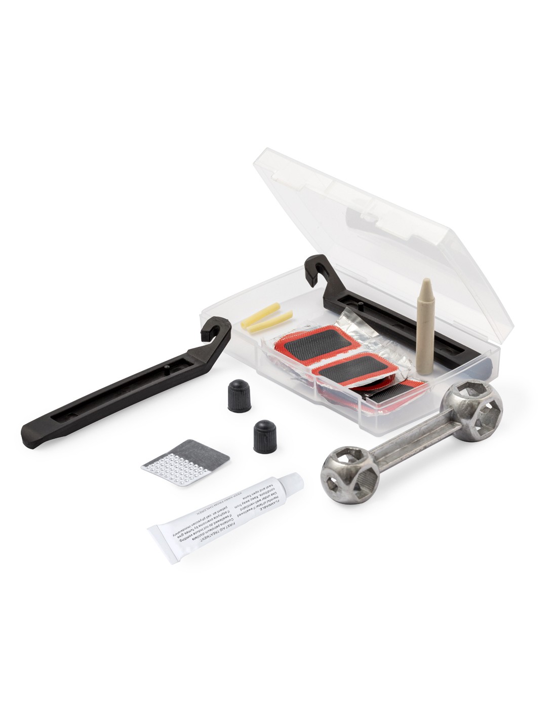 Kit de reparación para bicicleta con 15 accesorios. Fácil de llevar gracias a su reducido tamaño, permitiéndote realizar reparaciones de pinchazos en cualquier lugar. Incluye:2 llaves de desmontaje Una llave para tuercas Tubo de pegamento Cera para marcar Dos tubos de goma Lija de metal Dos tapones 5 parches