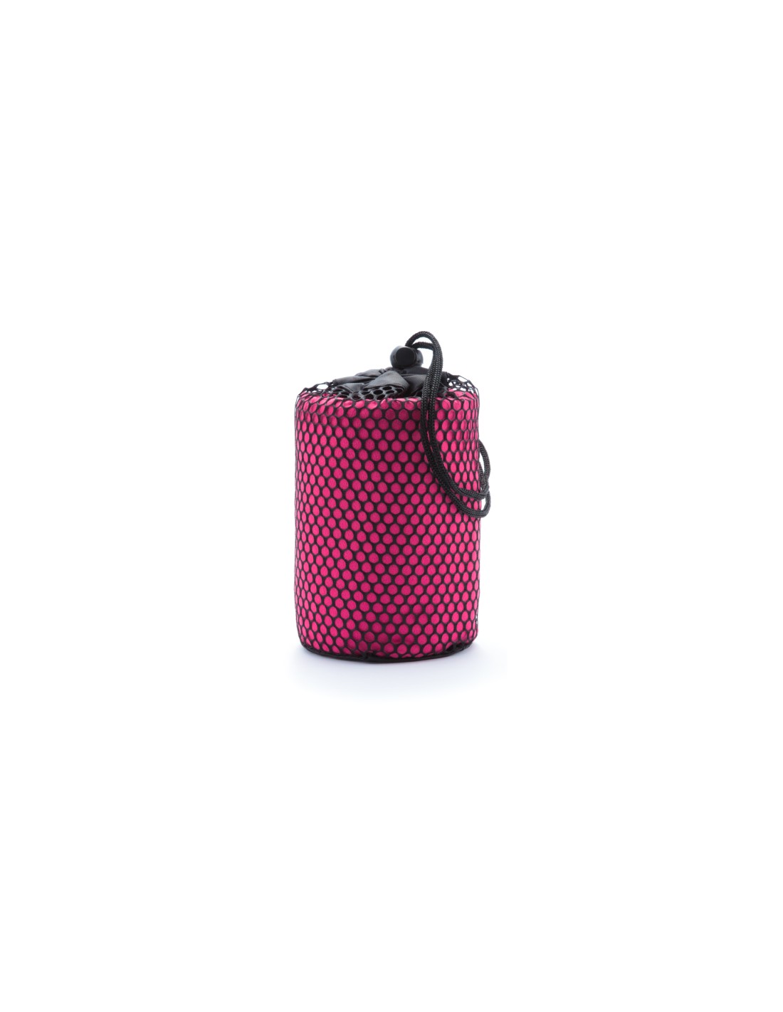 Toalla de 138x72cmcm en absorbente y suave microfibra de 200g/m2 en variados colores. Presentada en práctica bolsa de transporte de redecilla con accesorio de ajuste.