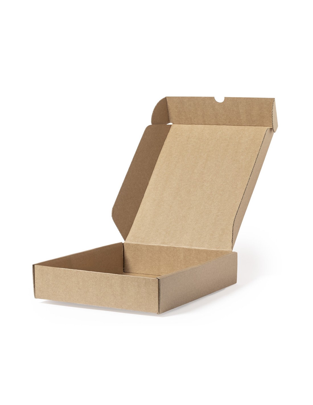 Caja de presentación tamaño mediano fabricado en cartón reciclado corrugado. De acabado kraft. En línea con la tendencia del mercado hacia la sostenibilidad integral del regalo, ofreciendo soluciones de origen reciclado con el fin de ayudar a la mejora y conservación de nuestro planeta.