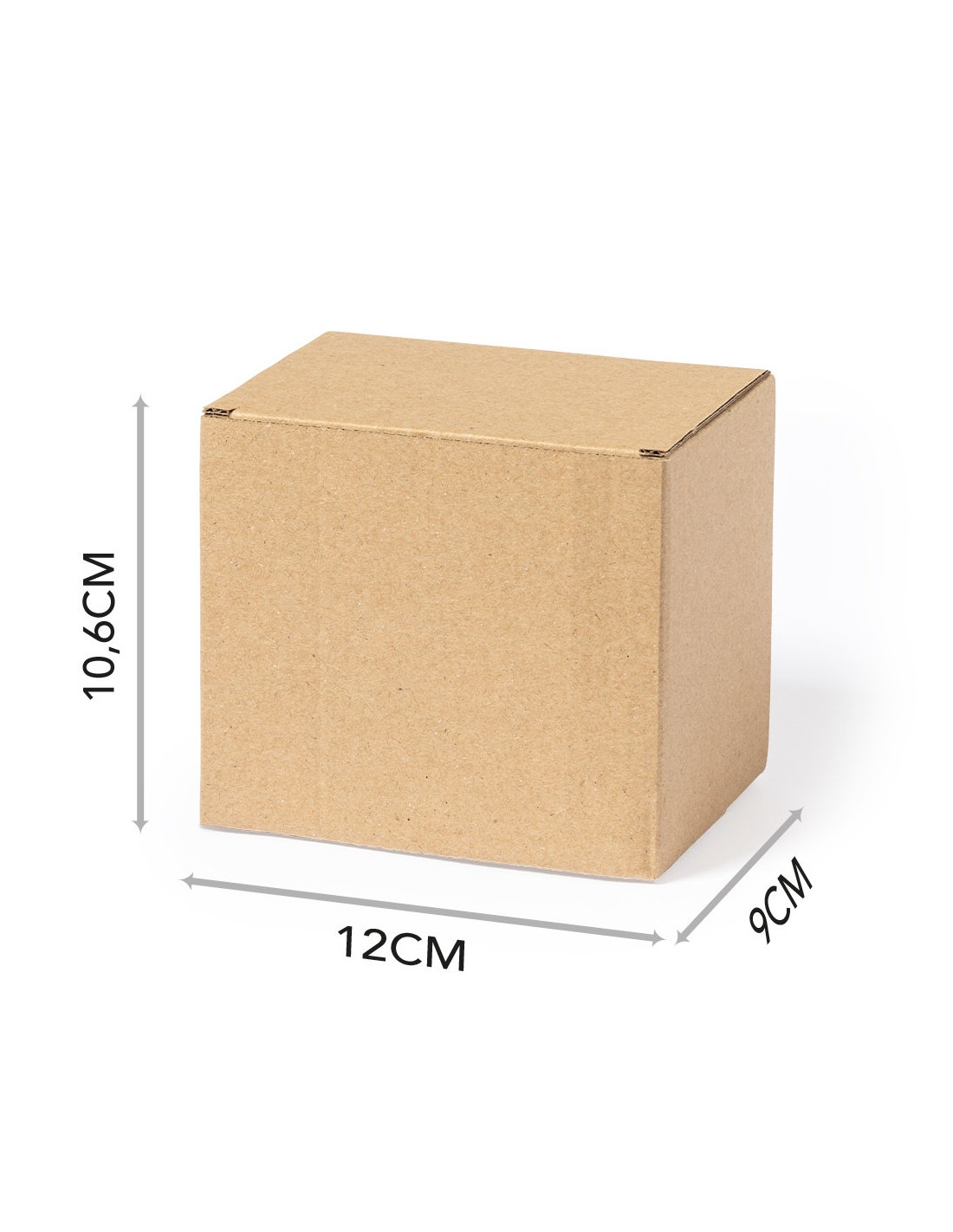 Caja de presentación especialmente diseñada para tazas. Tamaño 12x10,6x9 cm y fabricada en cartón reciclado corrugado de acabado kraft. En línea con la tendencia del mercado hacia la sostenibilidad integral del regalo, ofreciendo soluciones de origen reciclado con el fin de ayudar a la mejora y conservación de nuestro planeta.