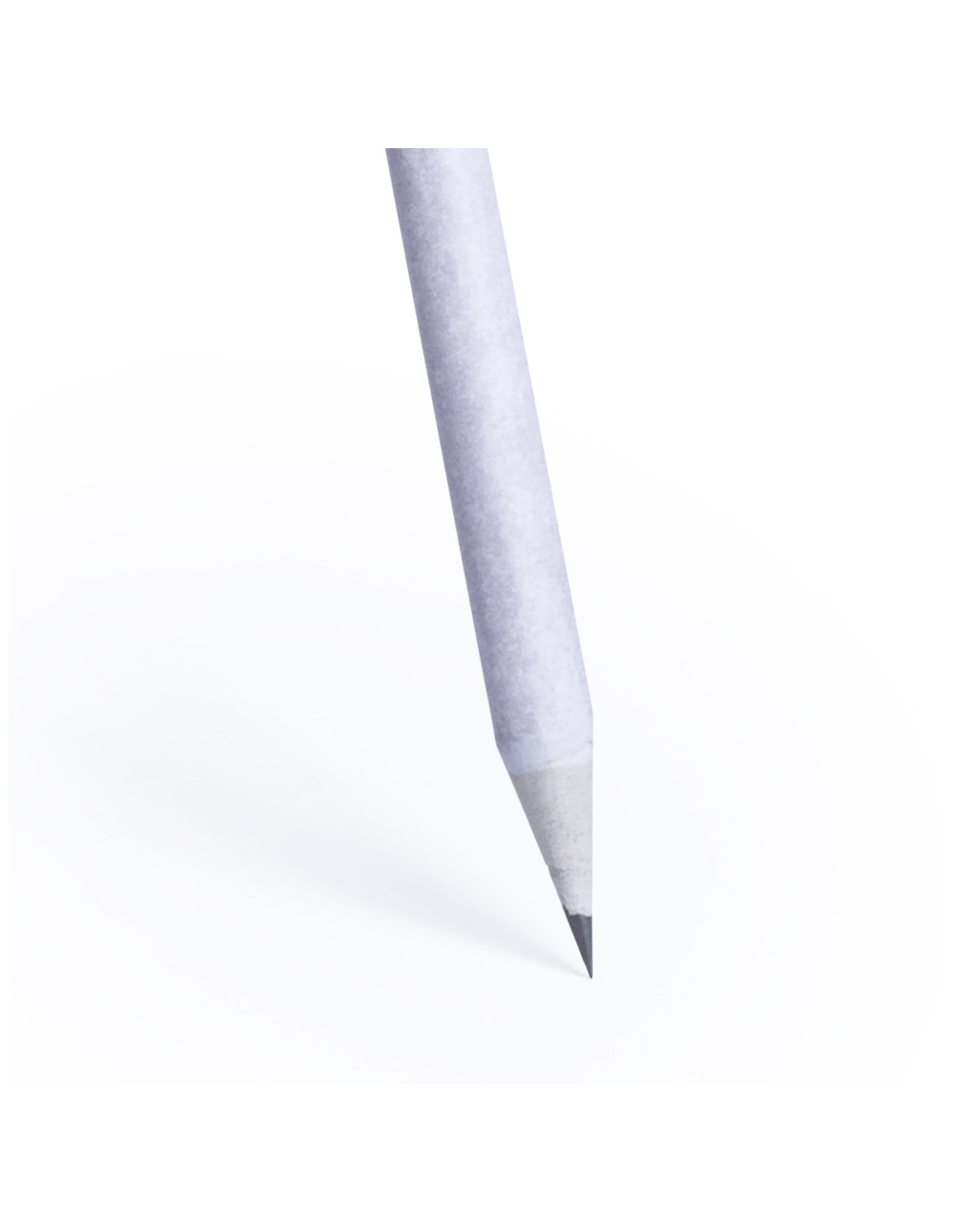 Lápiz de papel de periódico reciclado y resistente cuerpo en color natural. Con mina negra y punta afilada.