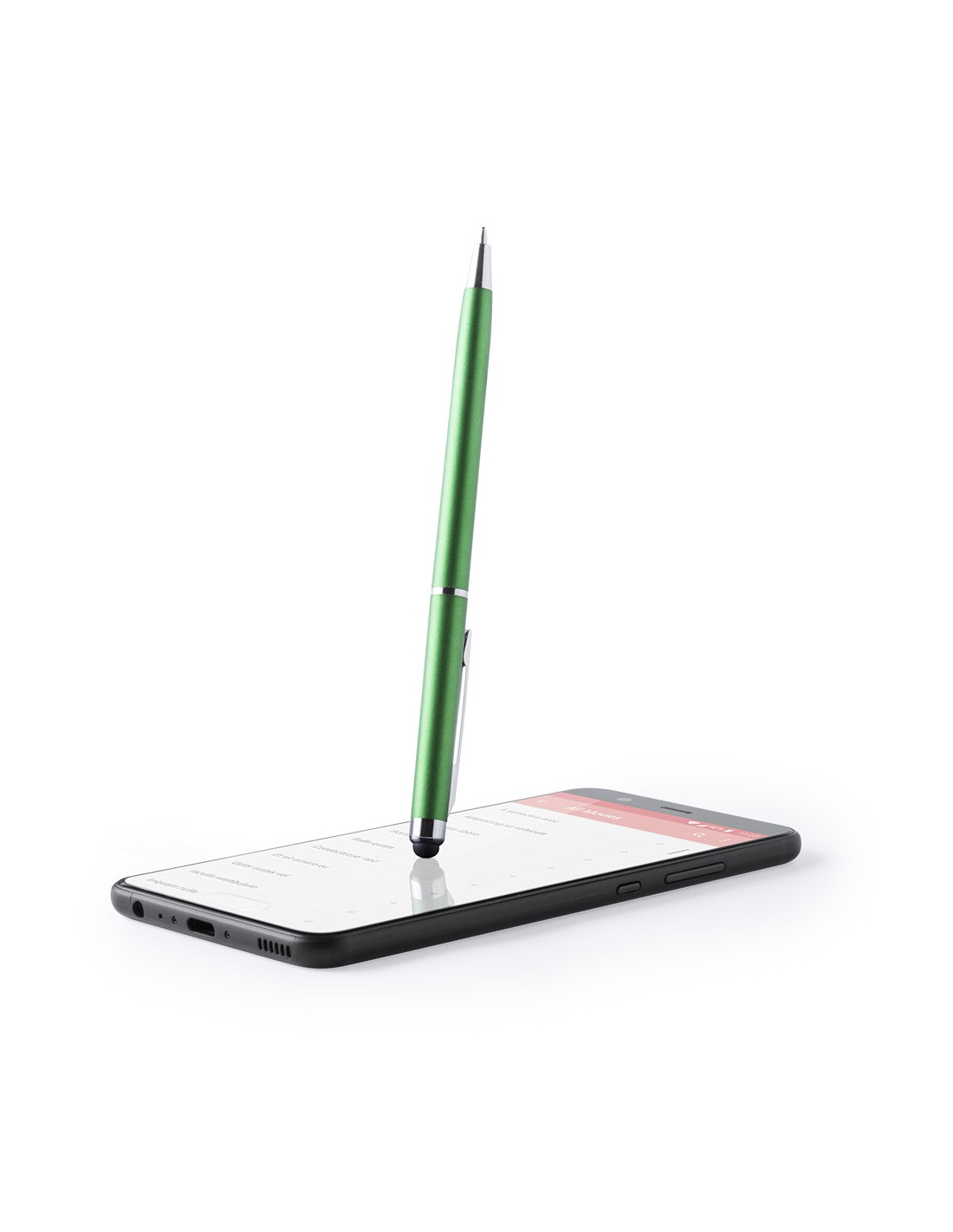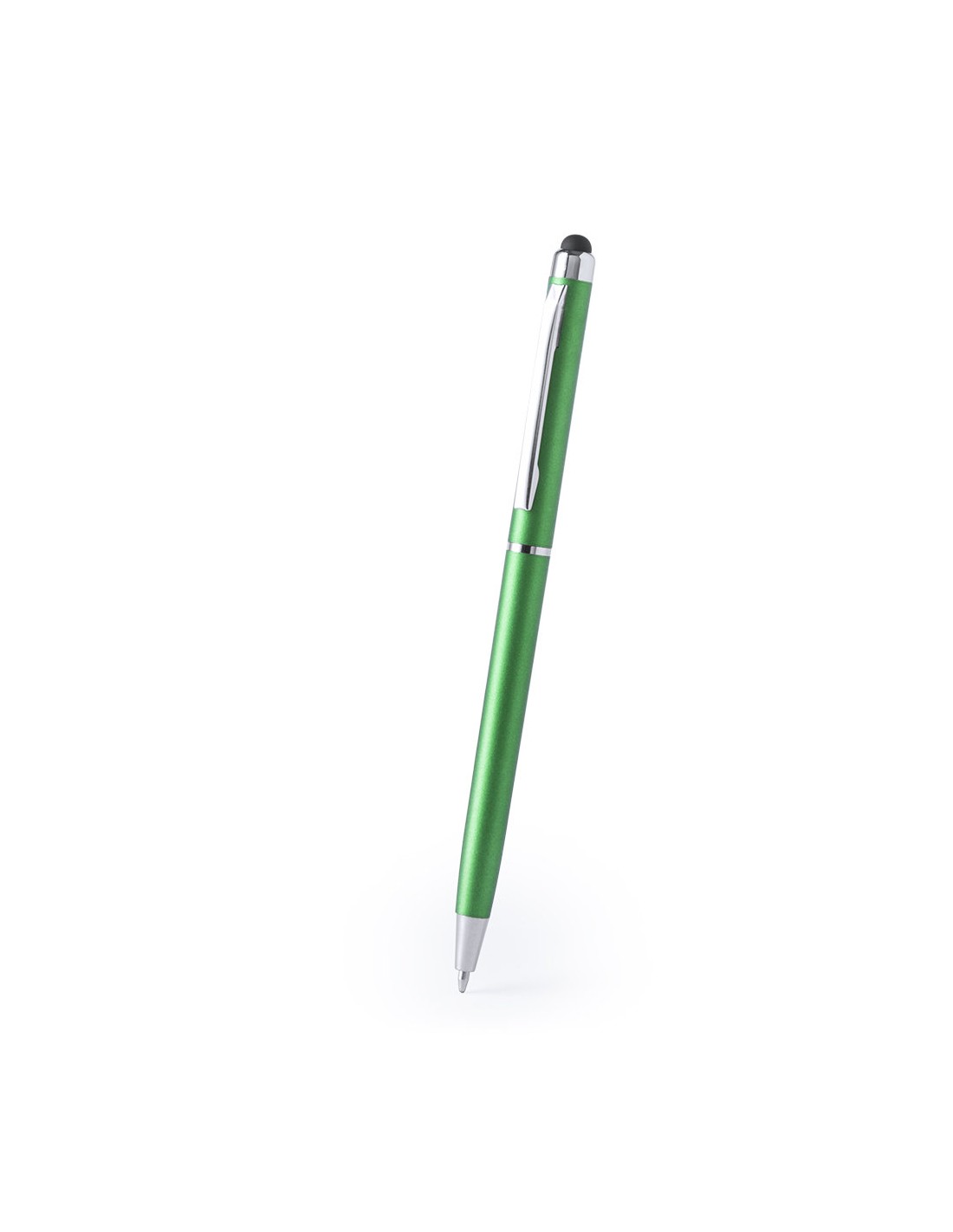 Bolígrafo puntero de mecanismo giratorio con cuerpo en de suave acabado metalizado. Con clip cromado. En variada gama de llamativos colores. Tinta azul.