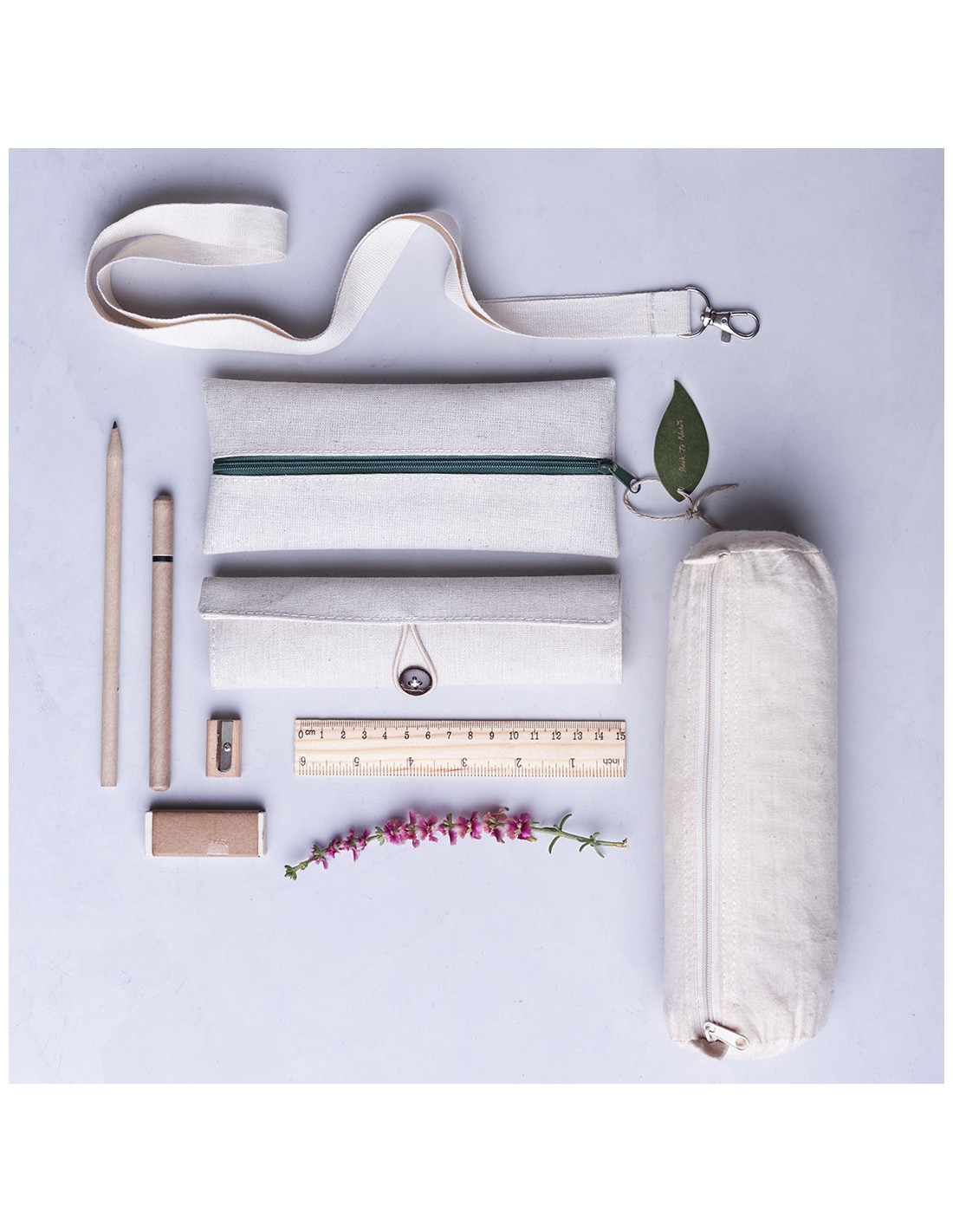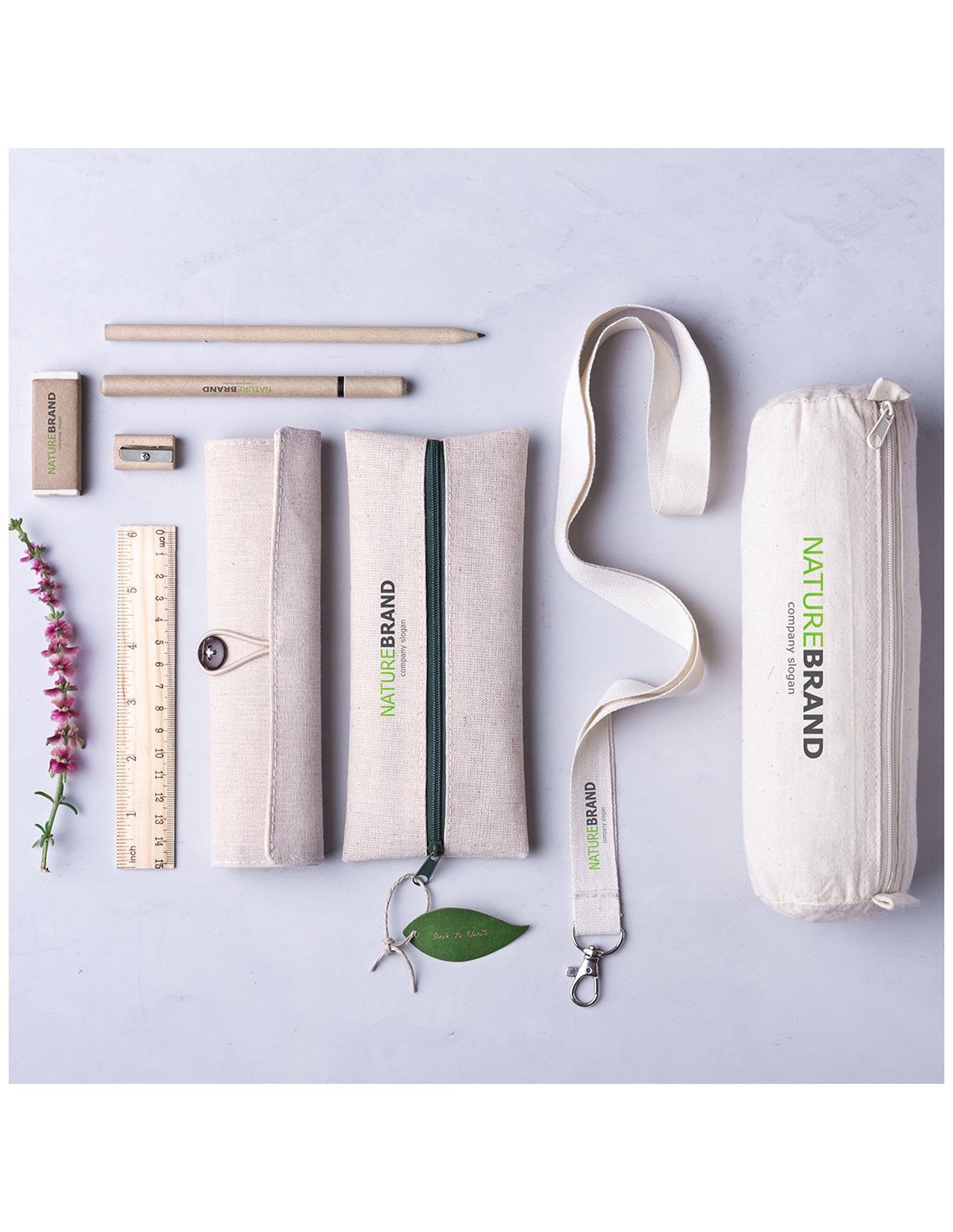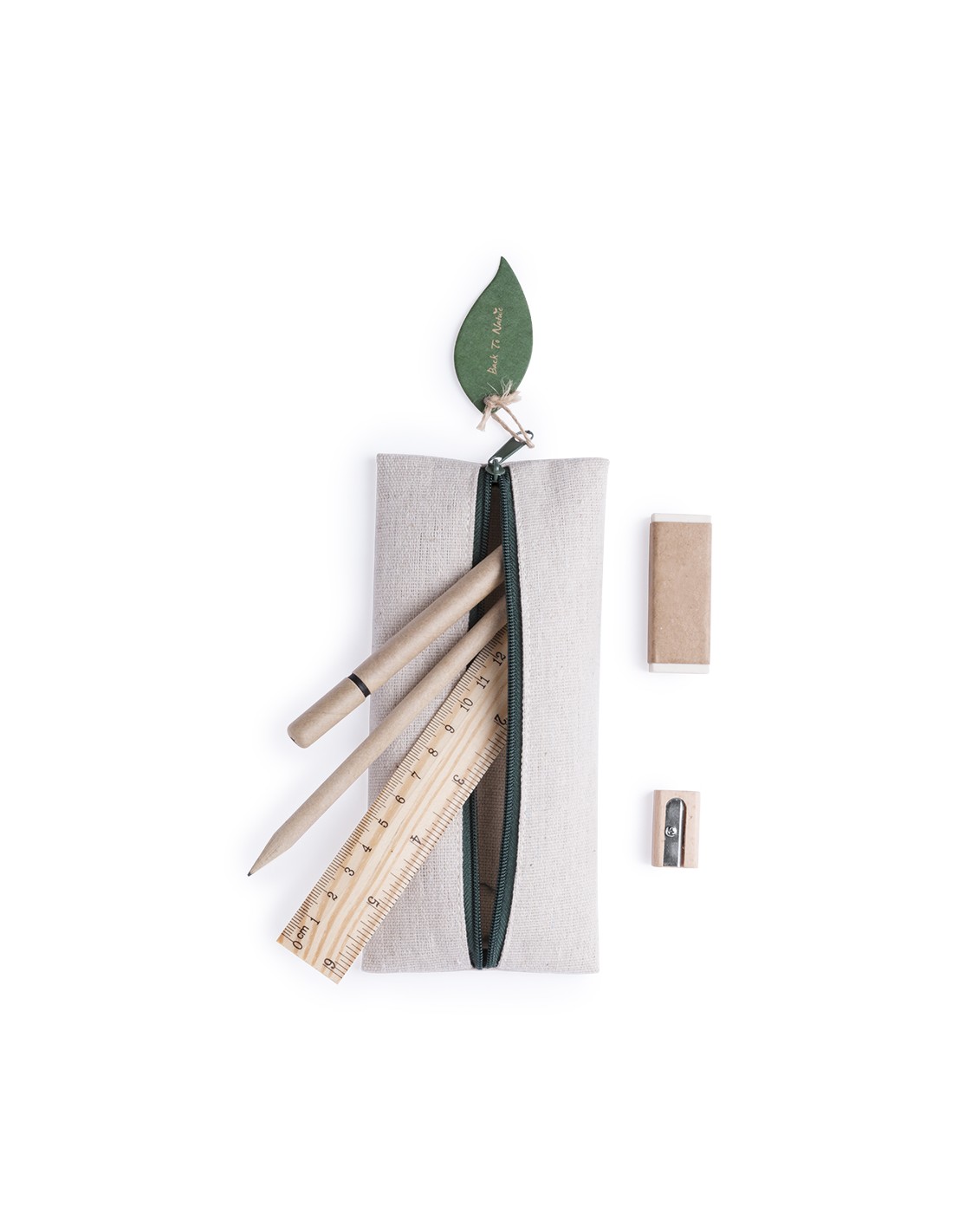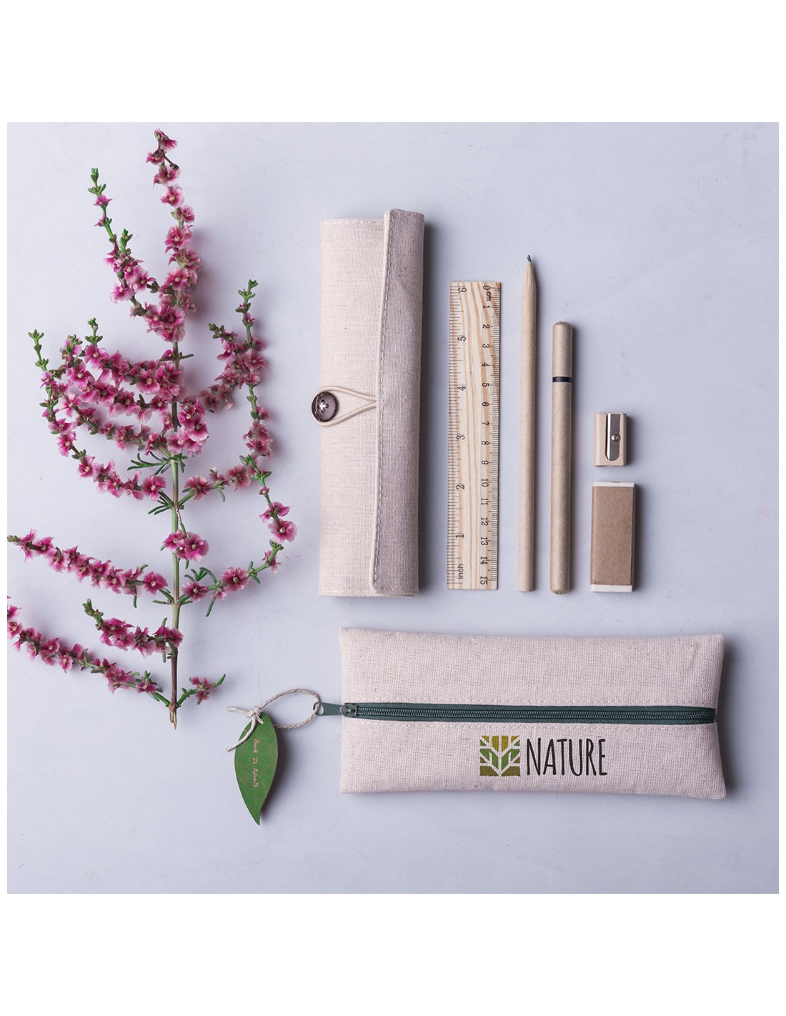 Práctico estuche de línea nature. De tamaño compacto en combinación de materiales yute y algodón. Con cierre de cremallera y hojita para publicidad en tirador.