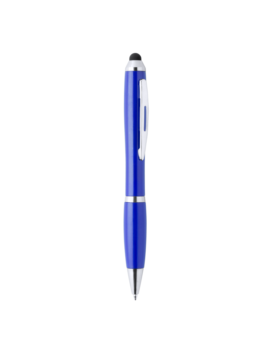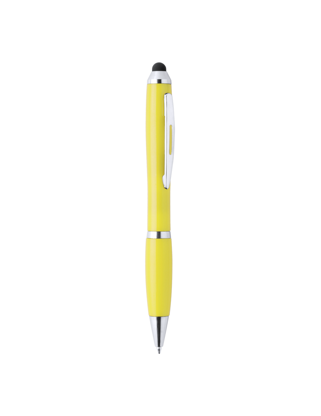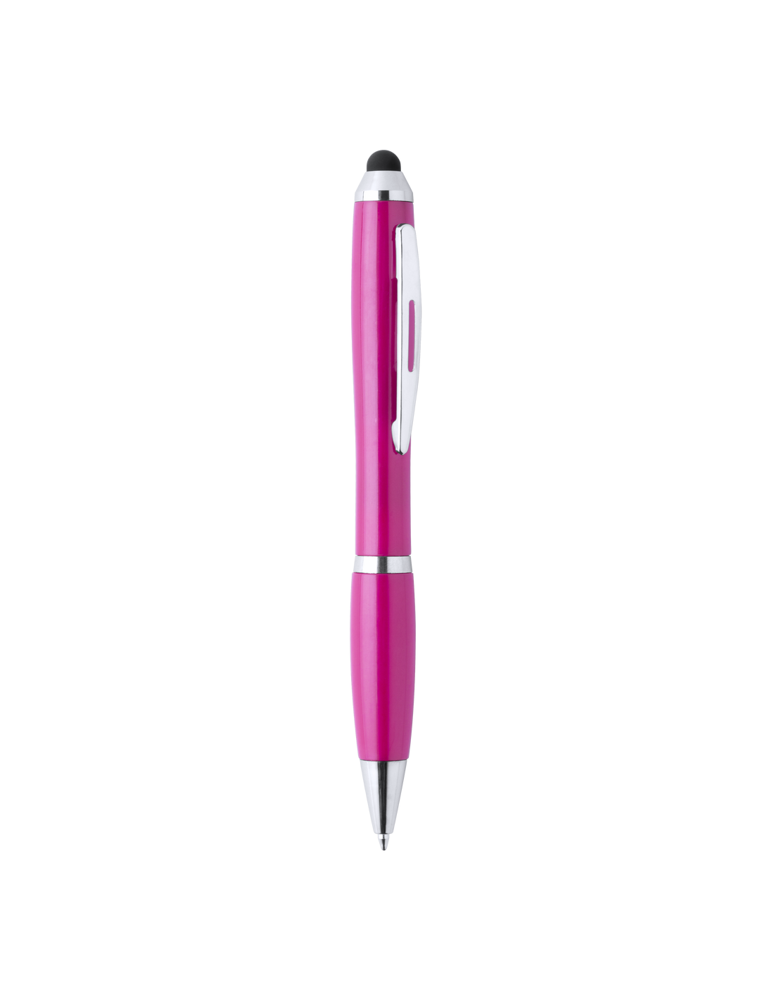 Bolígrafo puntero de colorido diseño, de apertura giratoria y cuerpo en vivos colores brillantes a juego con la empuñadura. Con detalles cromados y clip metálico. Cartucho jumbo y tinta azul.