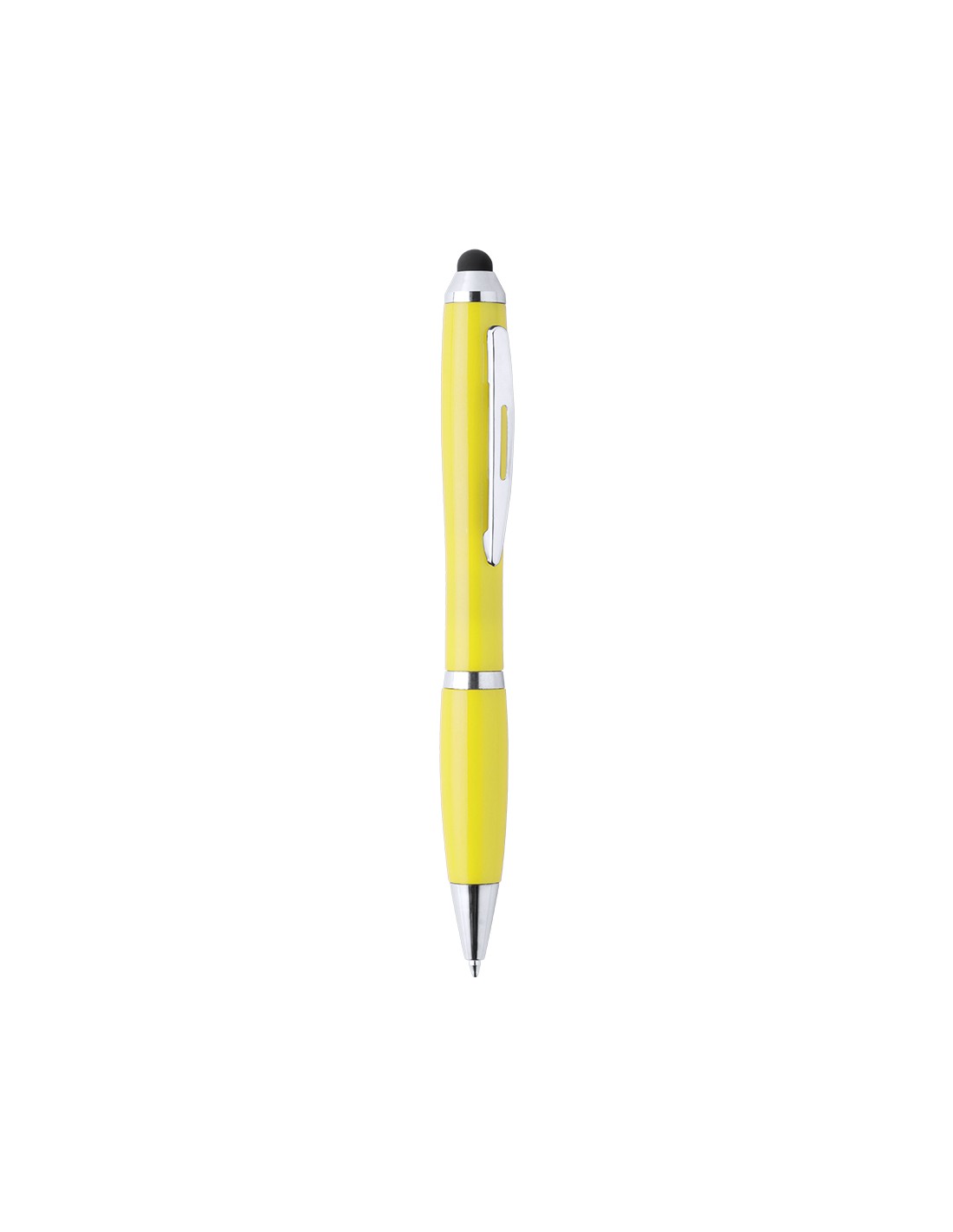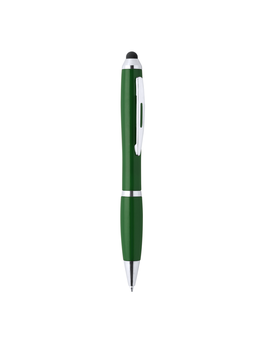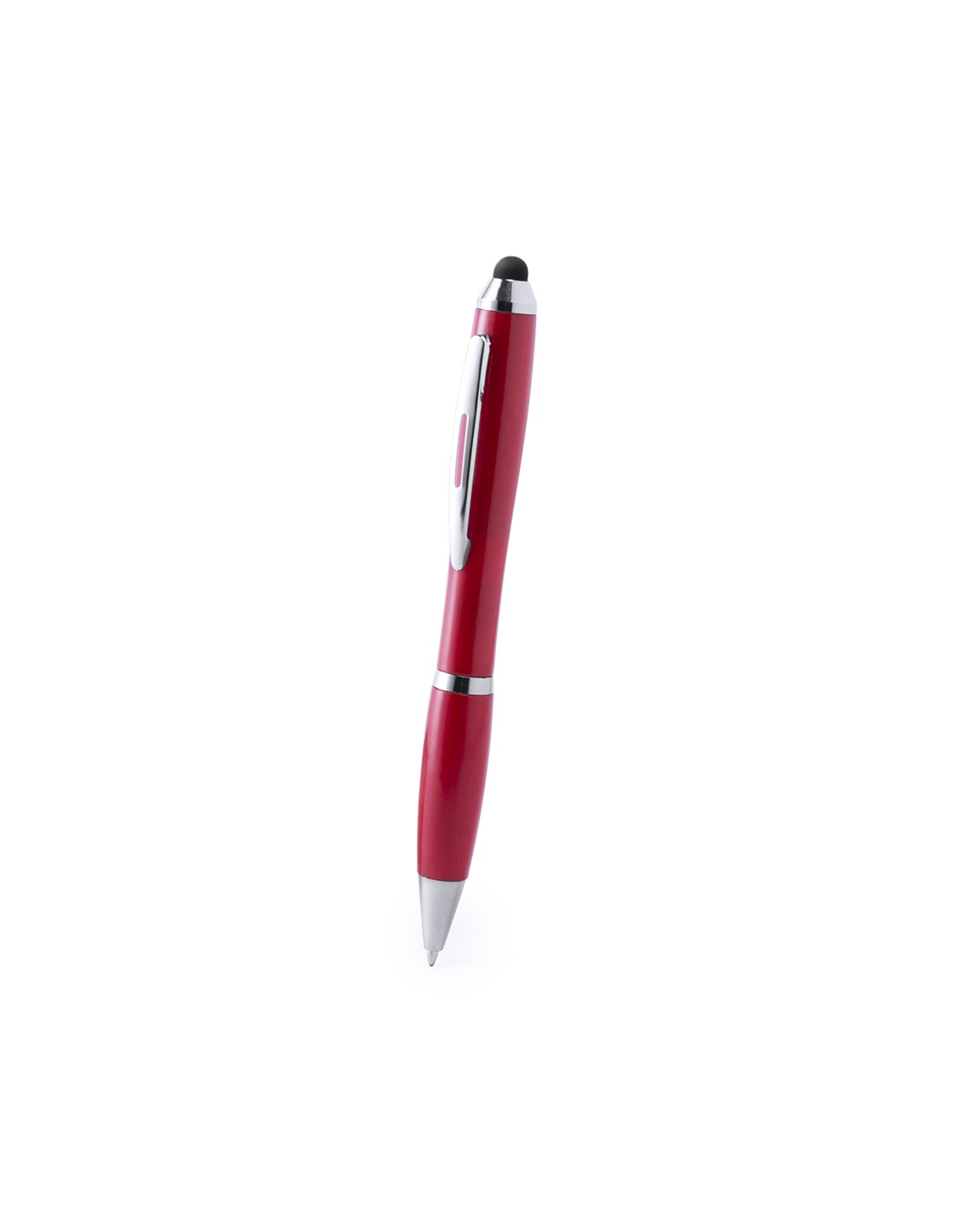 Bolígrafo puntero de colorido diseño, de apertura giratoria y cuerpo en vivos colores brillantes a juego con la empuñadura. Con detalles cromados y clip metálico. Cartucho jumbo y tinta azul.