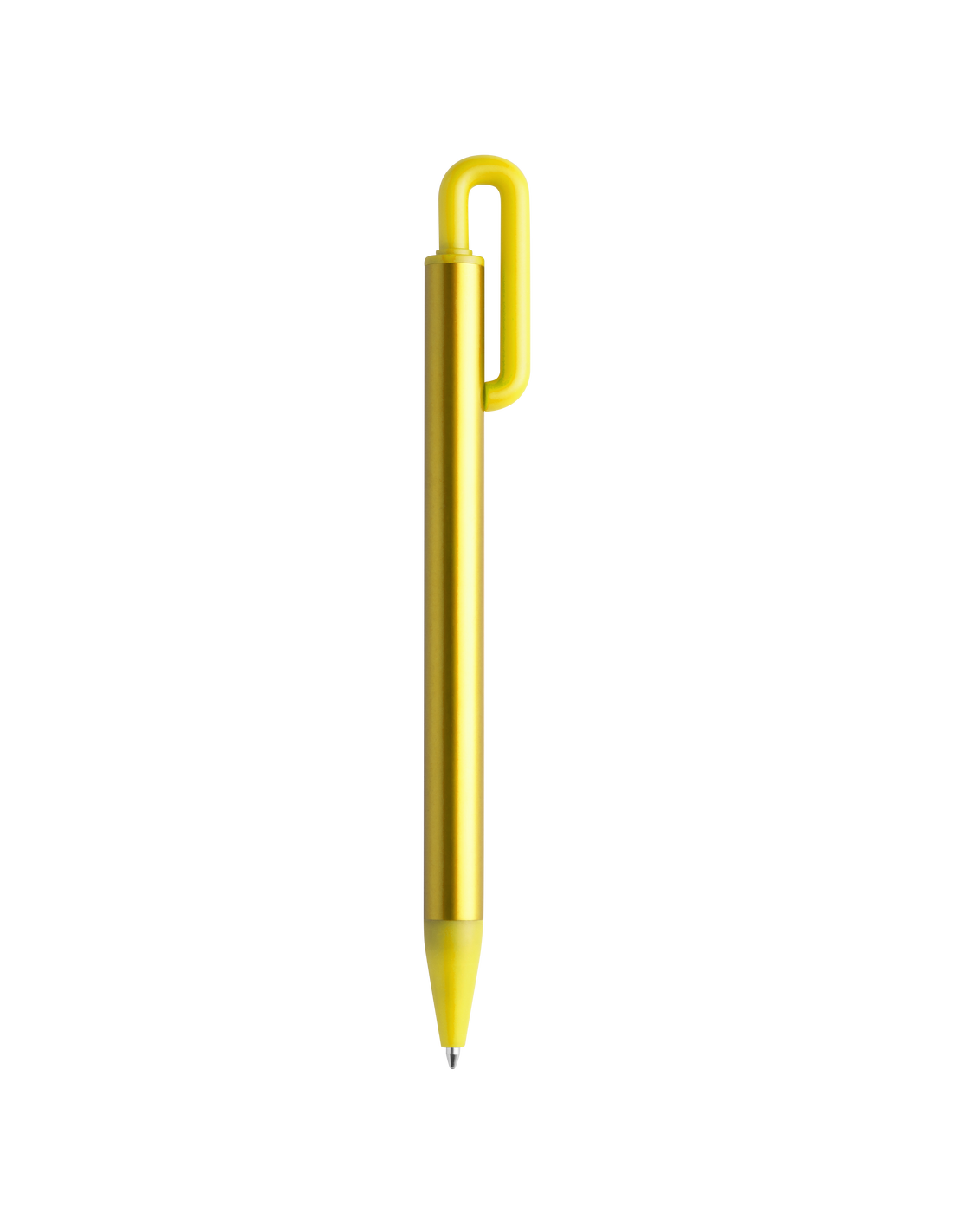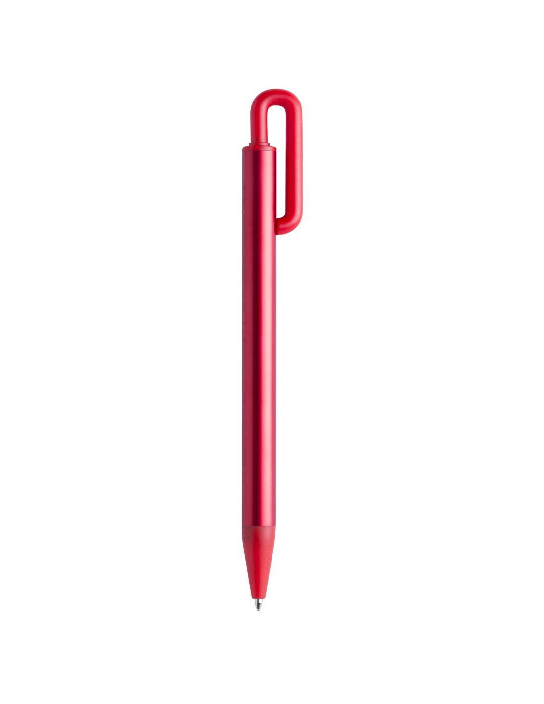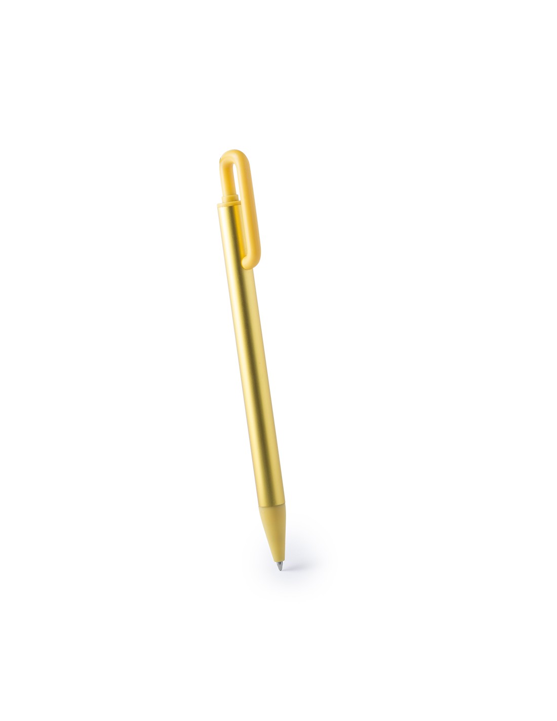 Bolígrafo con cuerpo acabado en aluminio de colores brillantes. Con original clip curvado y punta a juego, de acabado mate. Cartucho jumbo y tinta azul.