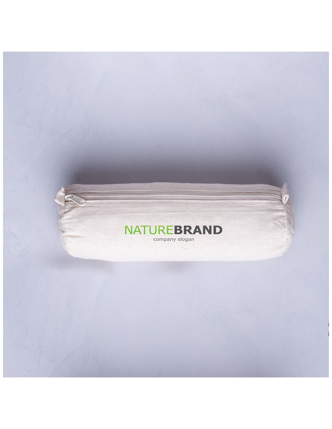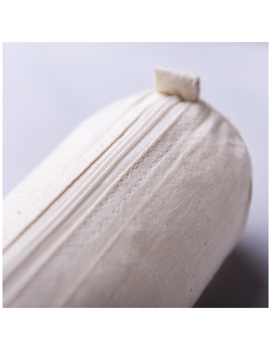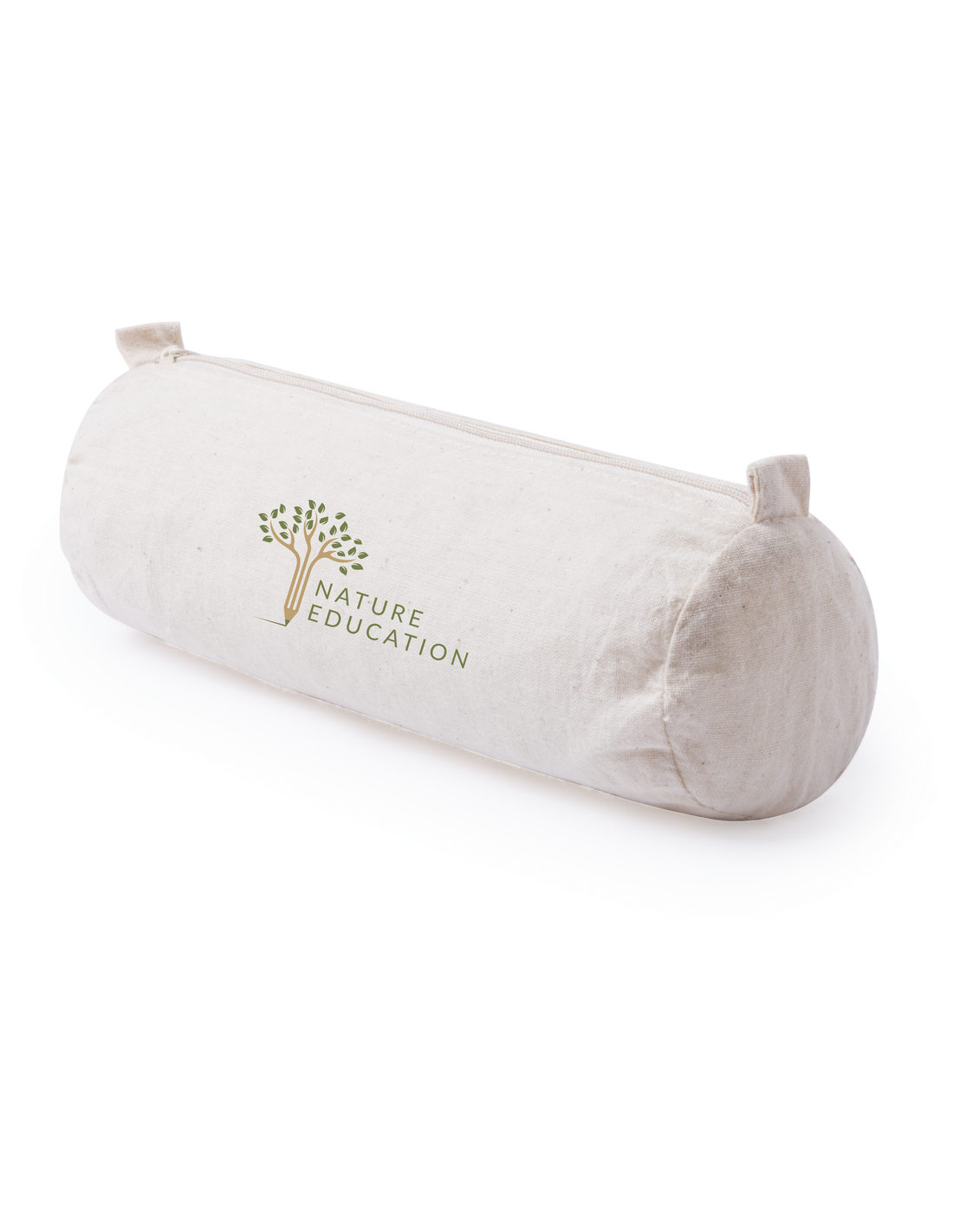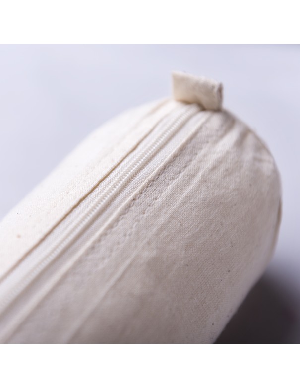 Estuche de línea nature en material 100% algodón crudo. Con clásico diseño cilíndrico, cremallera a juego y prácticas asas para fácil apertura.
