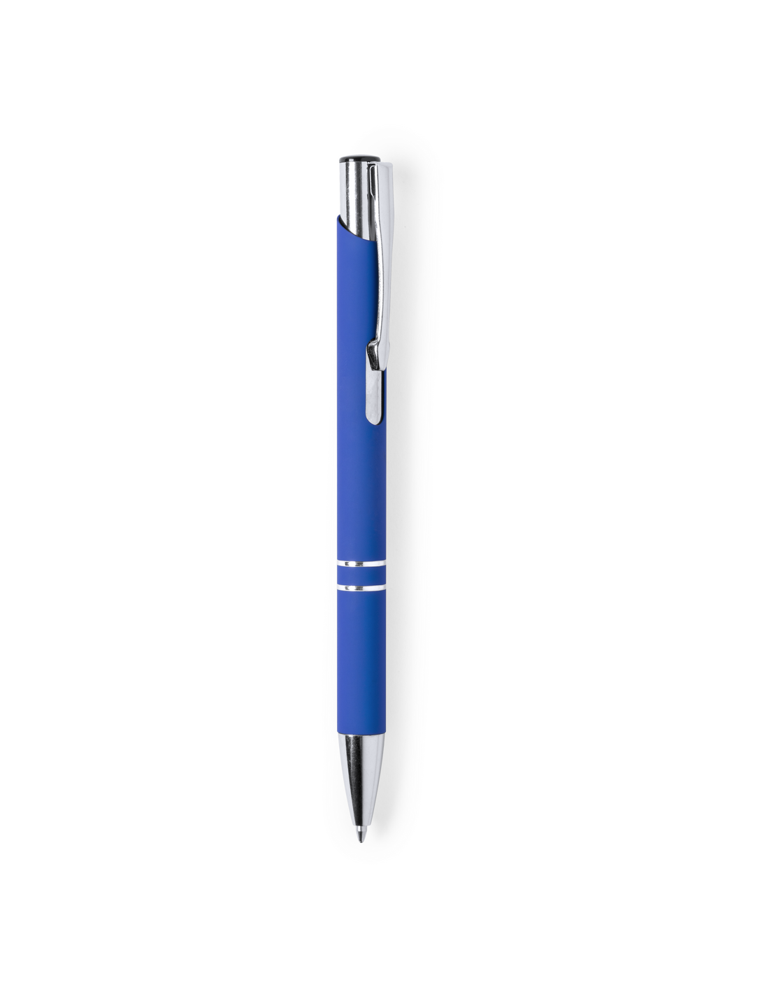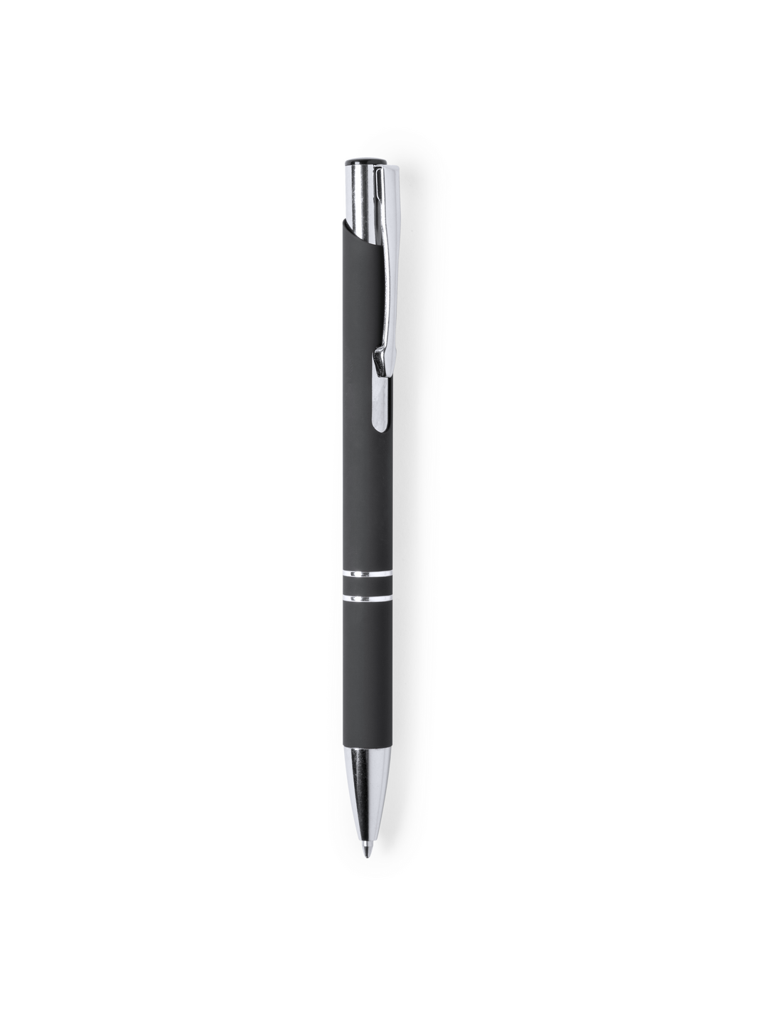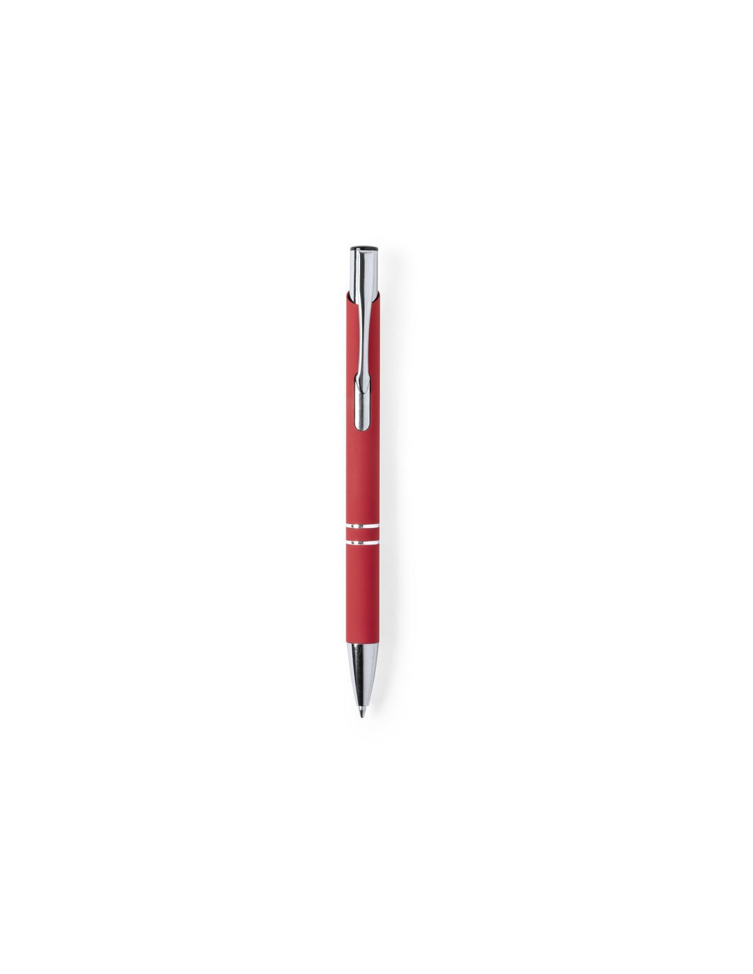 Original bolígrafo de mecanismo pulsador en elegante diseño bicolor. Con cuerpo troquelado de aluminio en tacto goma de acabado mate. Especialmente diseñado para marcaje en láser y mostrar el logotipo en tono plateado. Original clip, anillas y punta en plateado. Disponible en variada gama de colores, con cartucho jumbo y tinta azul.