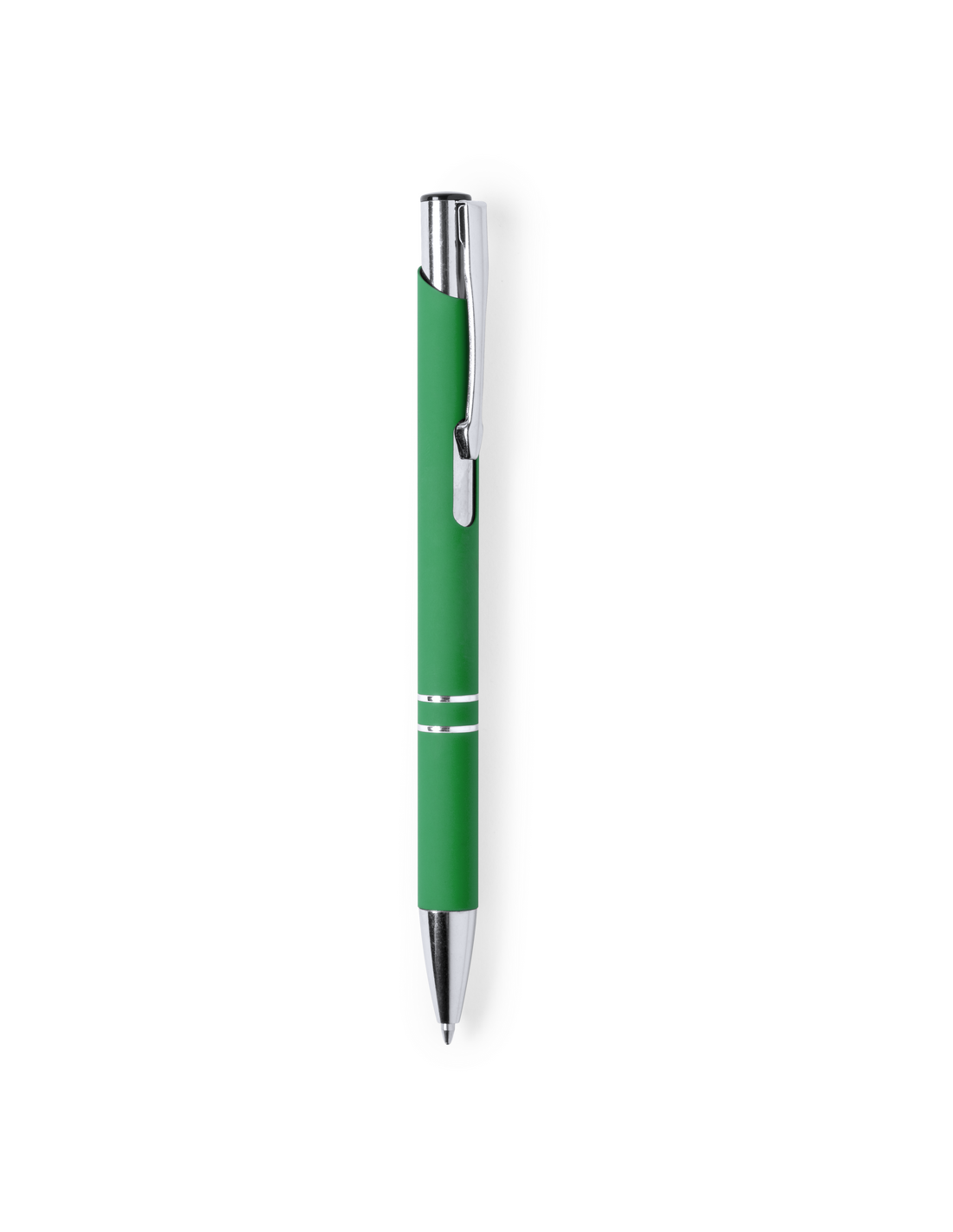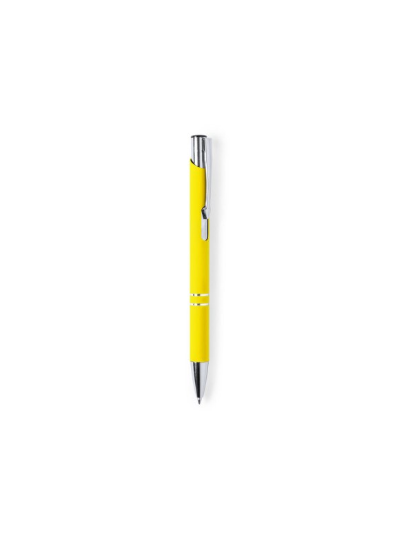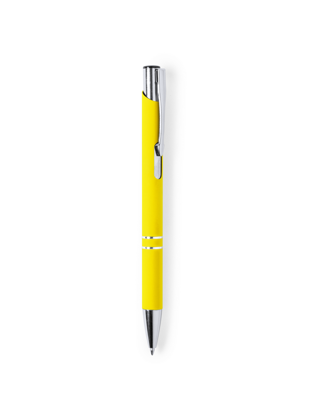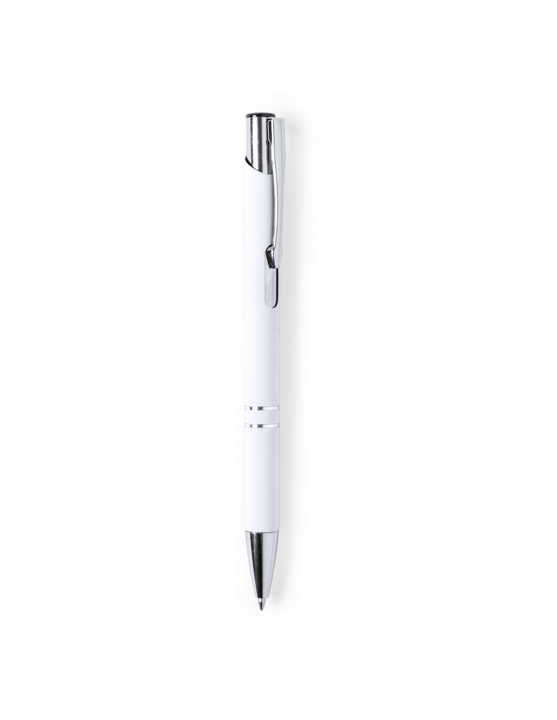 Original bolígrafo de mecanismo pulsador en elegante diseño bicolor. Con cuerpo troquelado de aluminio en tacto goma de acabado mate. Especialmente diseñado para marcaje en láser y mostrar el logotipo en tono plateado. Original clip, anillas y punta en plateado. Disponible en variada gama de colores, con cartucho jumbo y tinta azul.